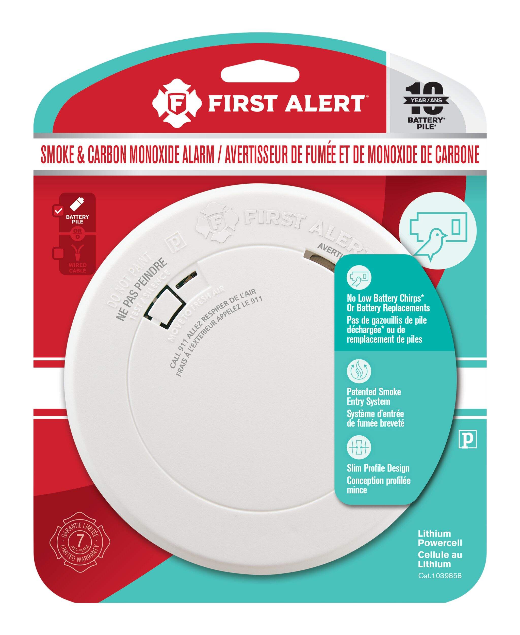Détecteur de fumée First Alert à piles PRC710A qui est un détecteur de fumée et de monoxyde de carbone photoélectrique