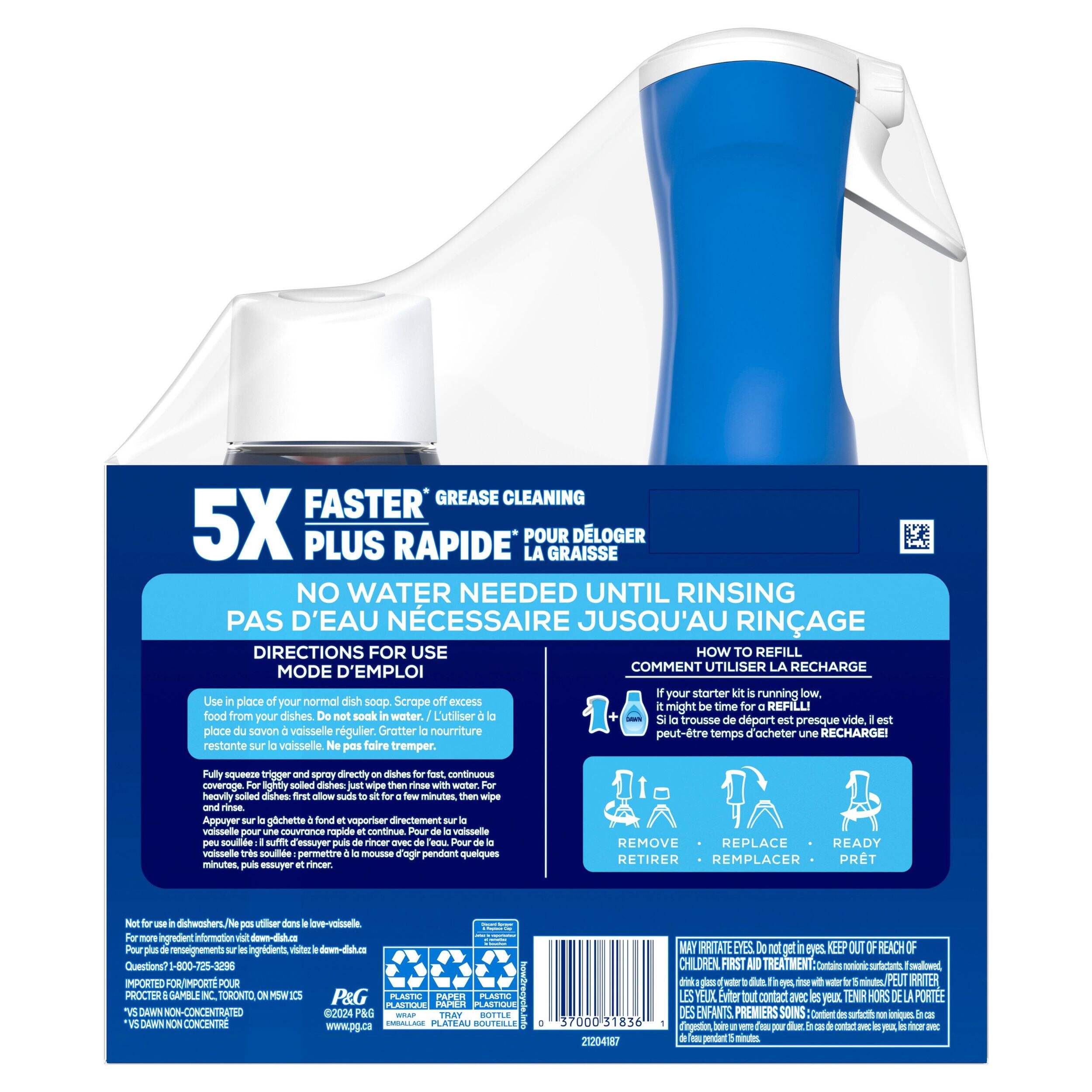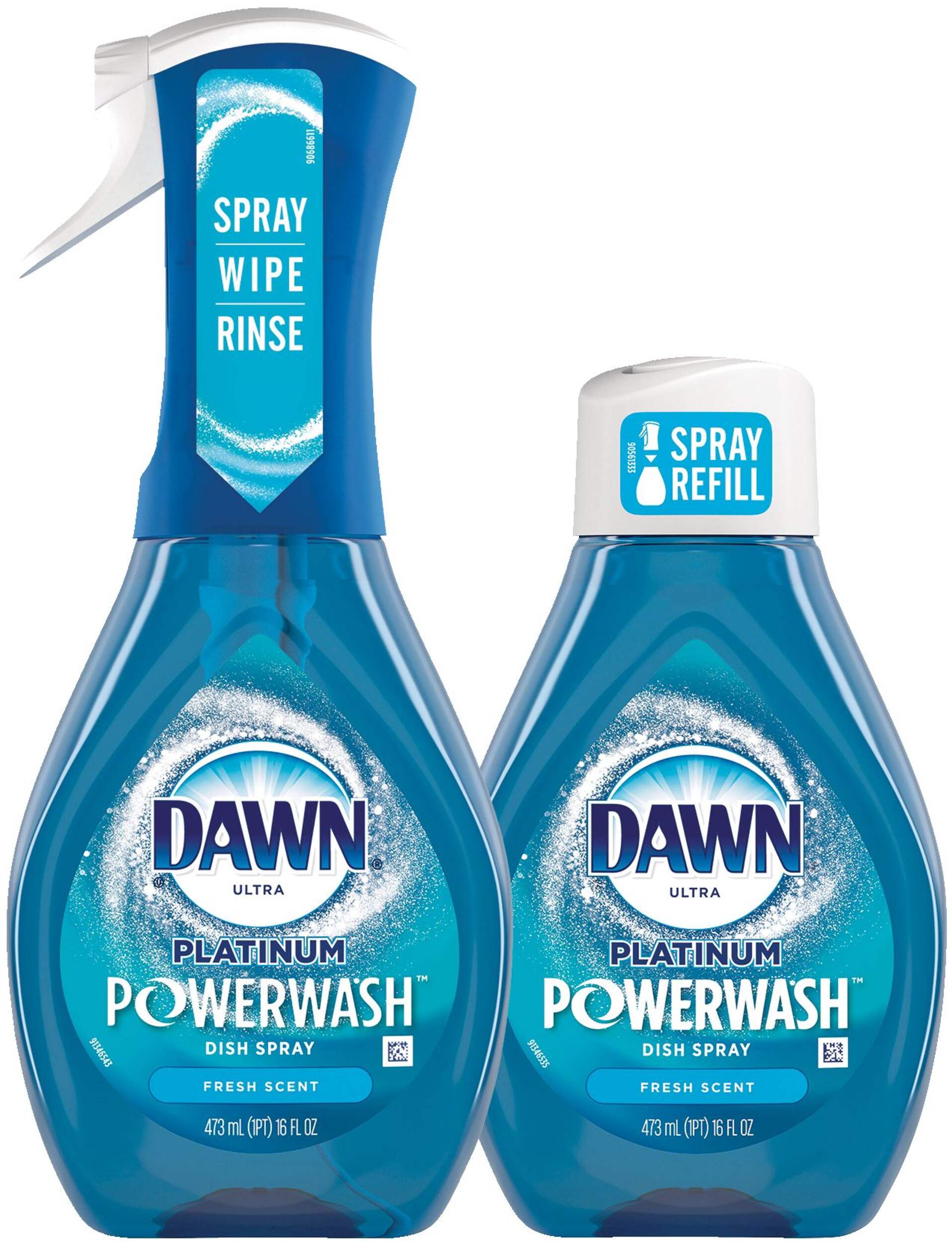 Assortiment comprenant 1 détergent à vaisselle Dawn Platinum Powerwash en vaporisateur de 473 mL et 1 recharge de détergent à vaisselle Dawn Platinum Powerwash en vaporisateur de 473 mL