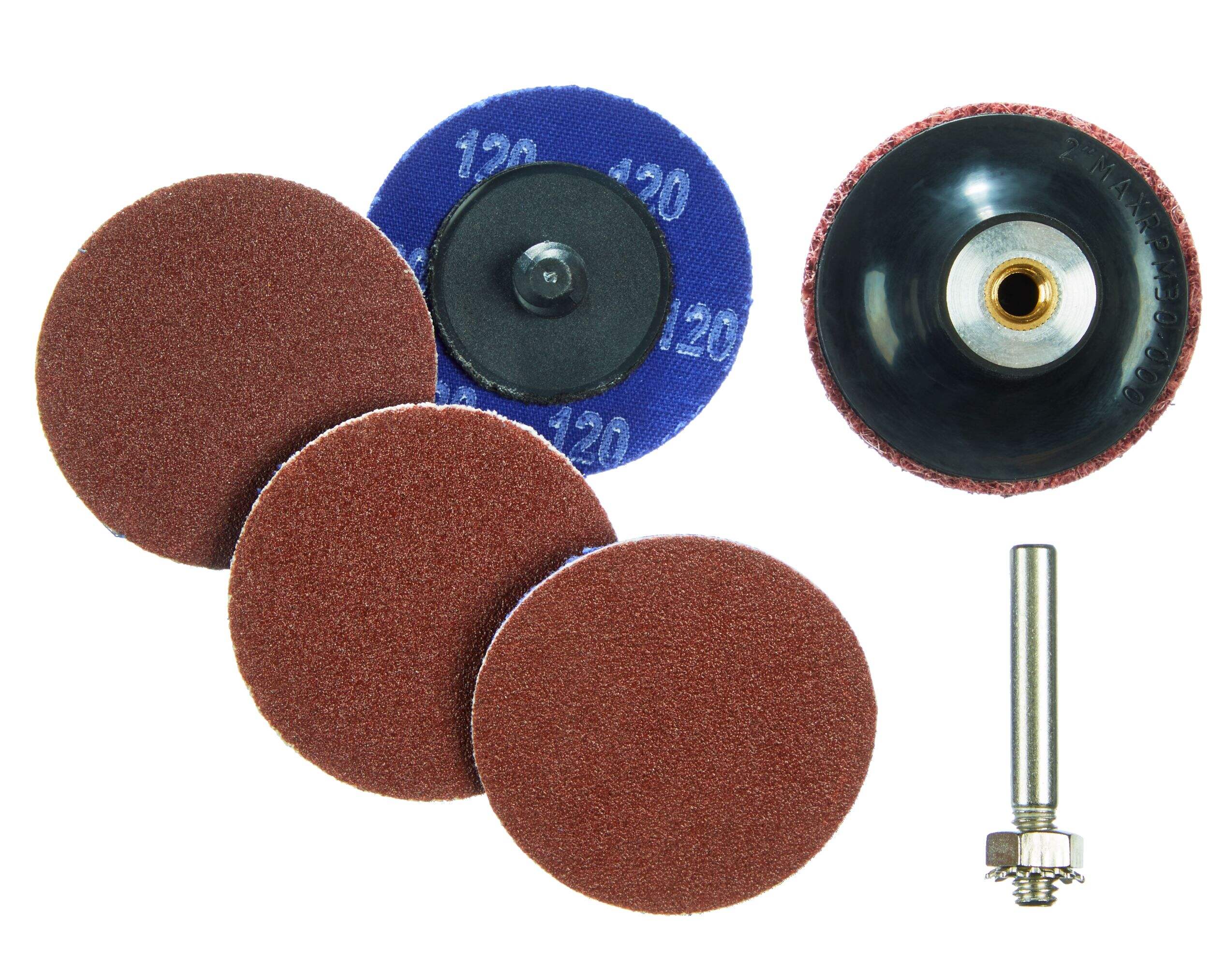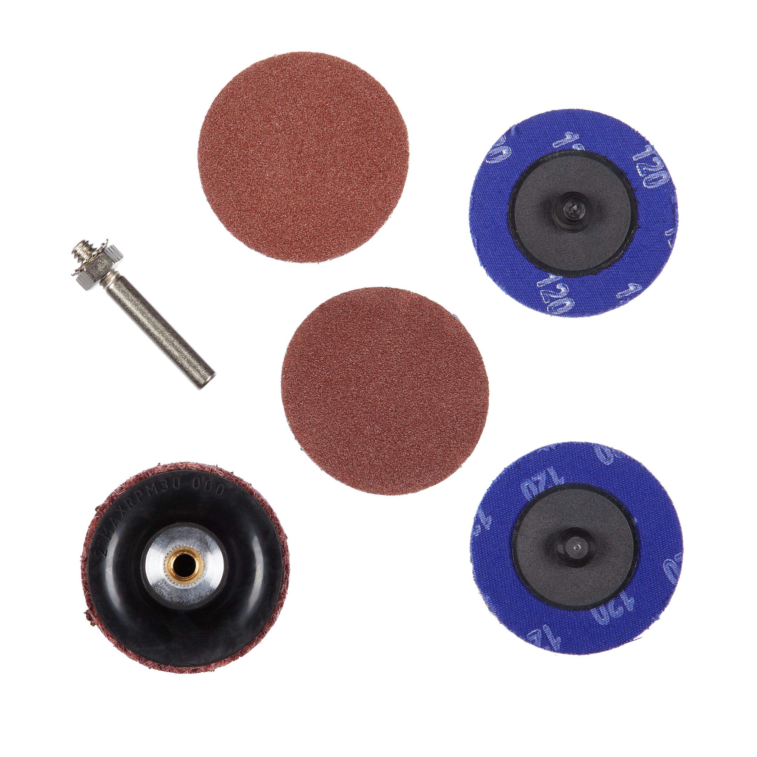 Disques de ponçage à verrou tournant Mastercraft de 2 po en paquet de 7 qui sont tout indiqués pour les usages généraux, particulièrement la préparation et la remise en état des surfaces. Trousse de disques de ponçage comprenant une plaque de support, 5 disques de ponçage de préparation de surface (1 grossier, 3 moyens et 1 fin) et un mandrin de 1/4 po. Disques de ponçage pouvant être utilisés avec la plupart des perceuses. Doté d'un système d'attache autoagrippante pour une facilité d'utilisation.