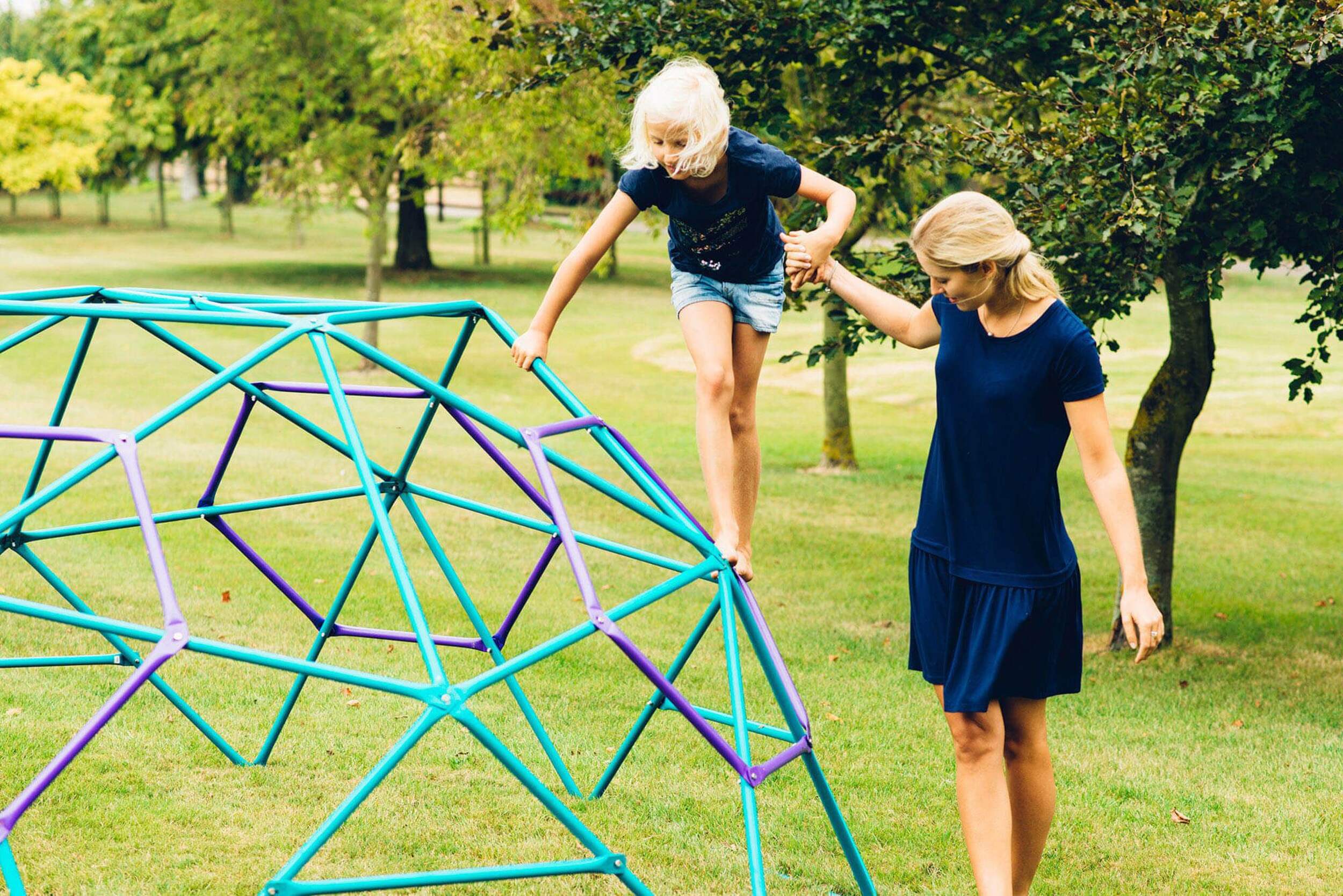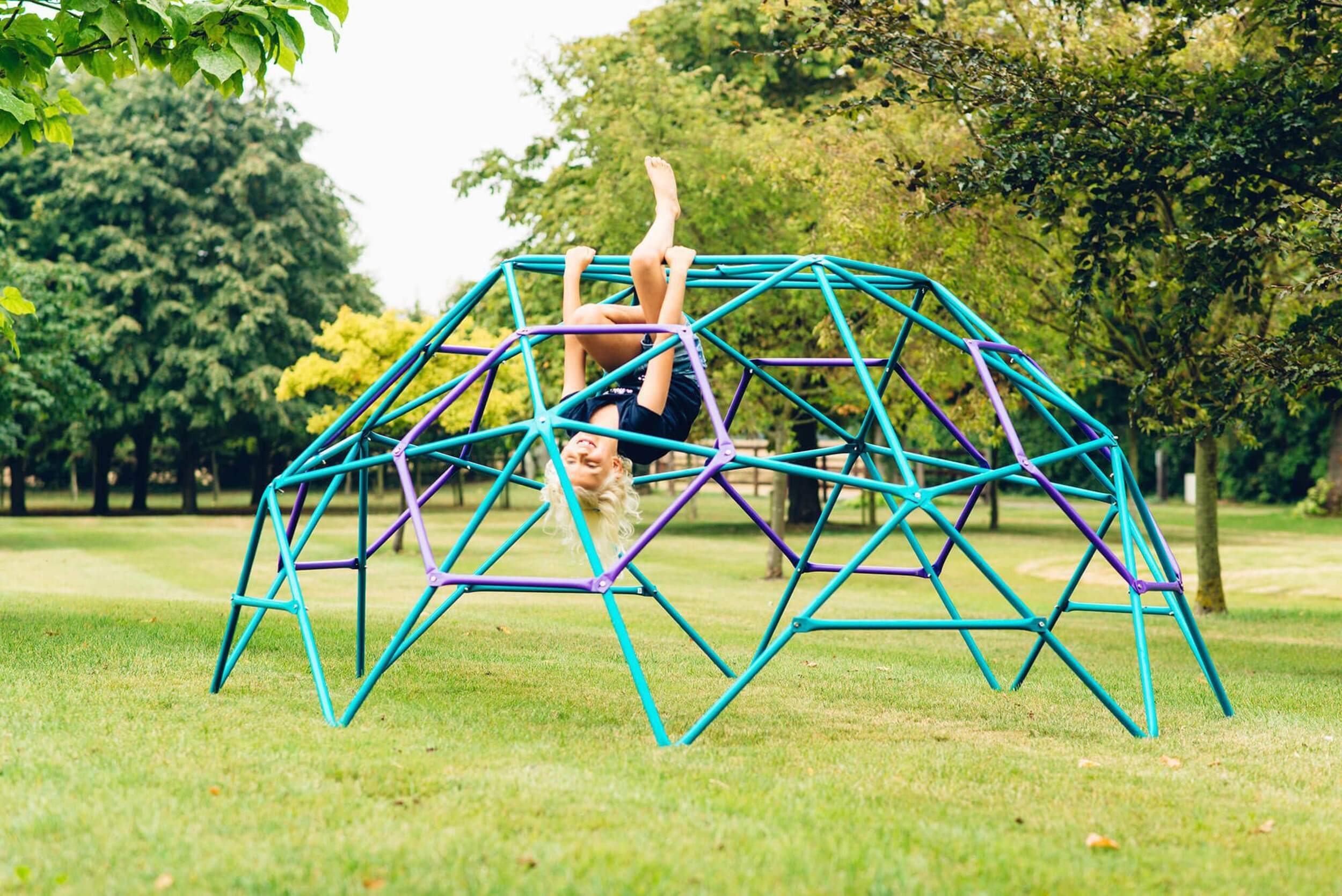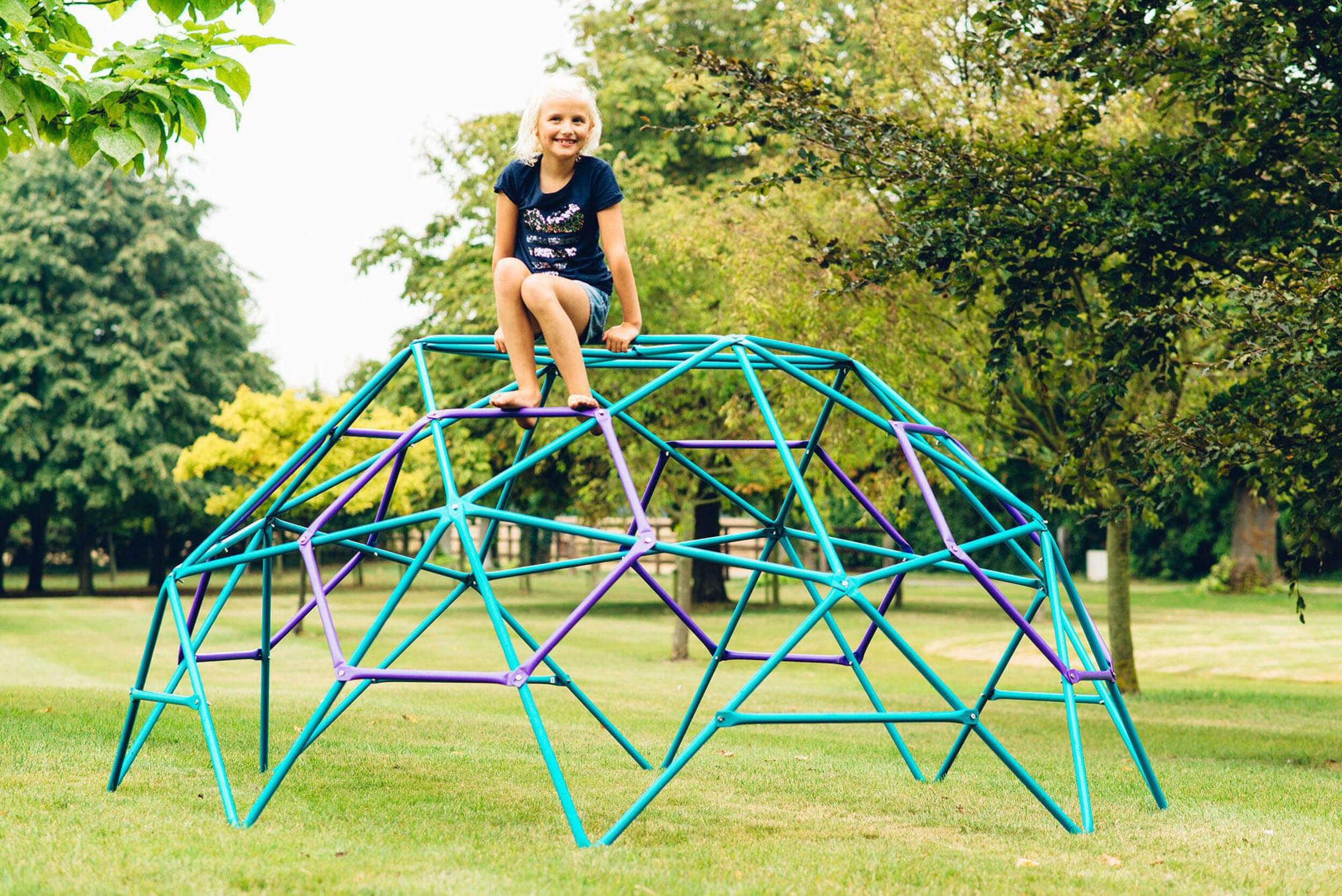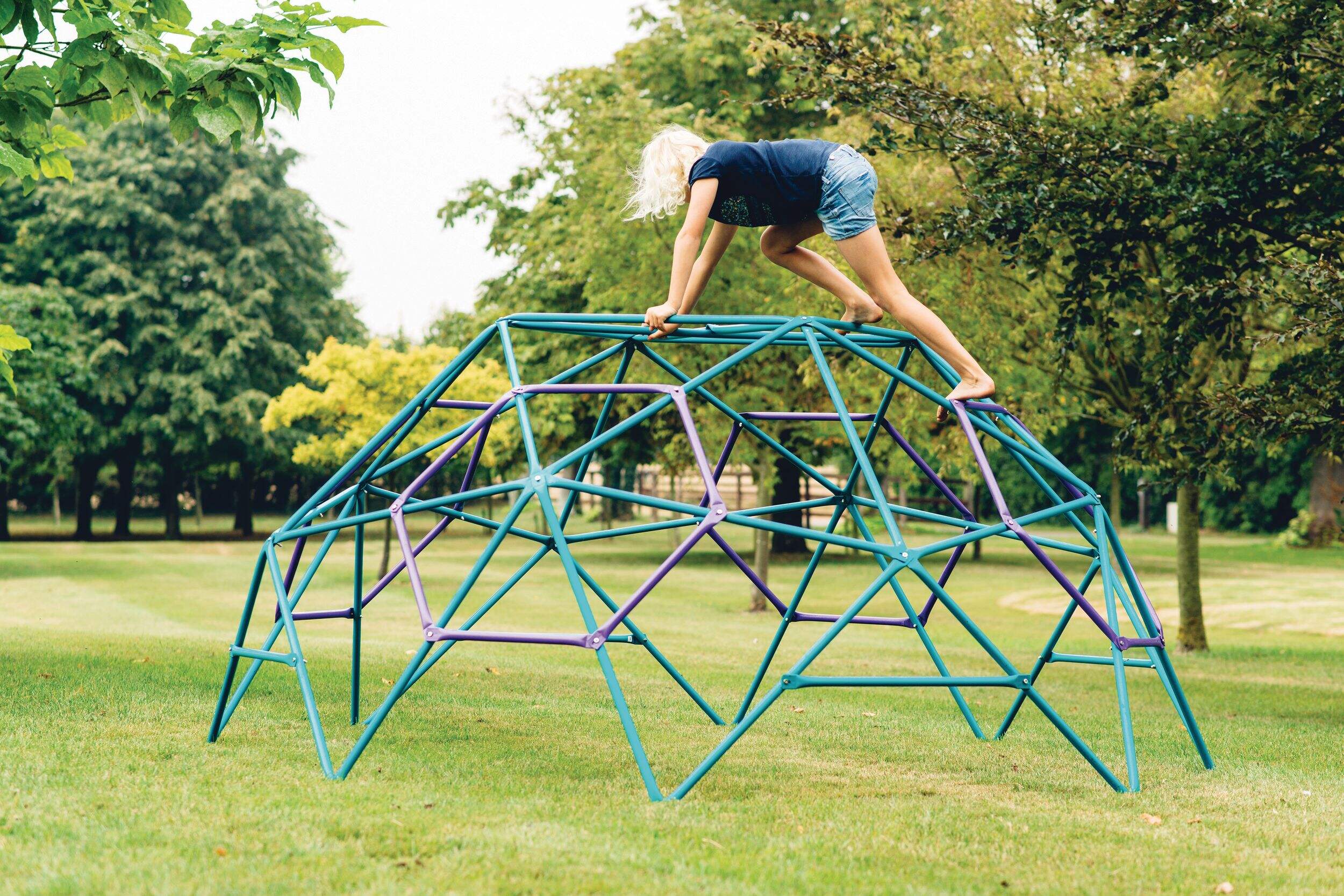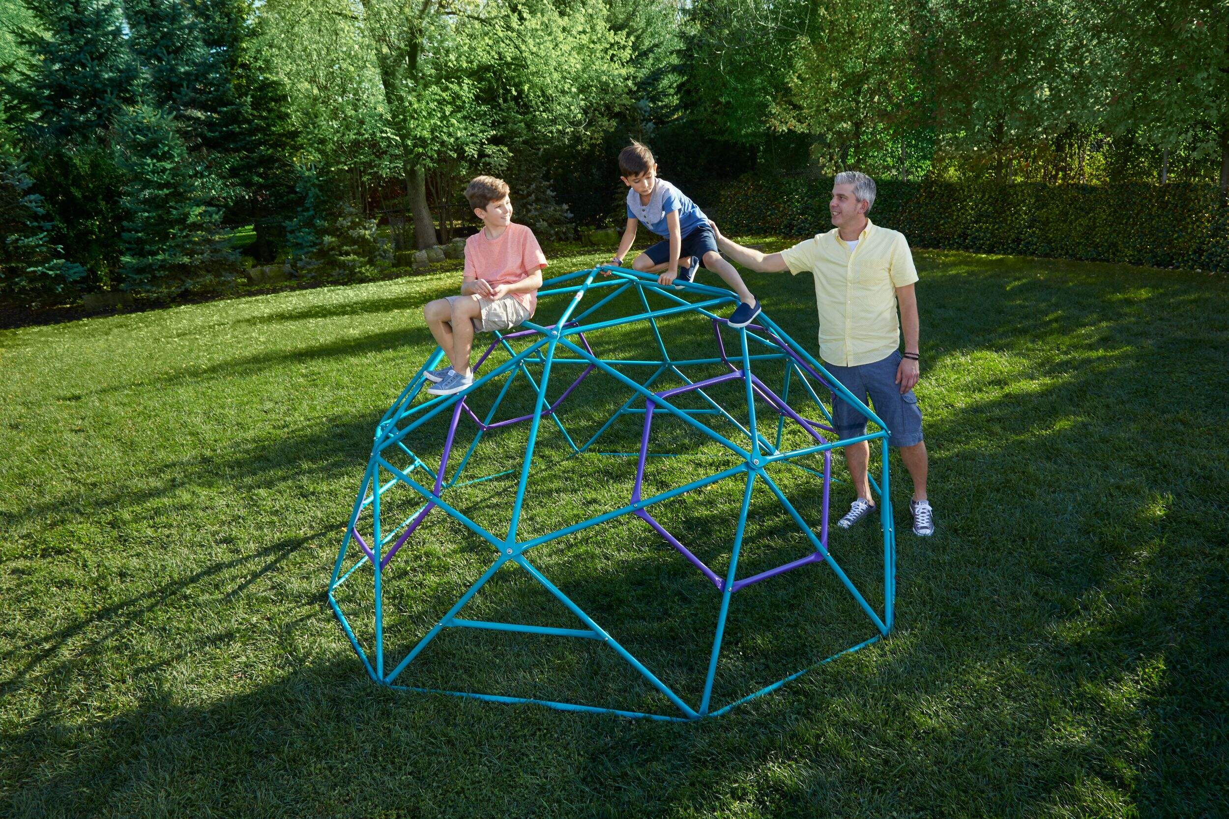 Ajoutez une touche de couleur à votre cour avec le dôme métallique PlumMD PhobosTM, offert en un mélange de sarcelle et mauve! Cadre d'escalade géométrique attrayant que les petits aventuriers adoreront.