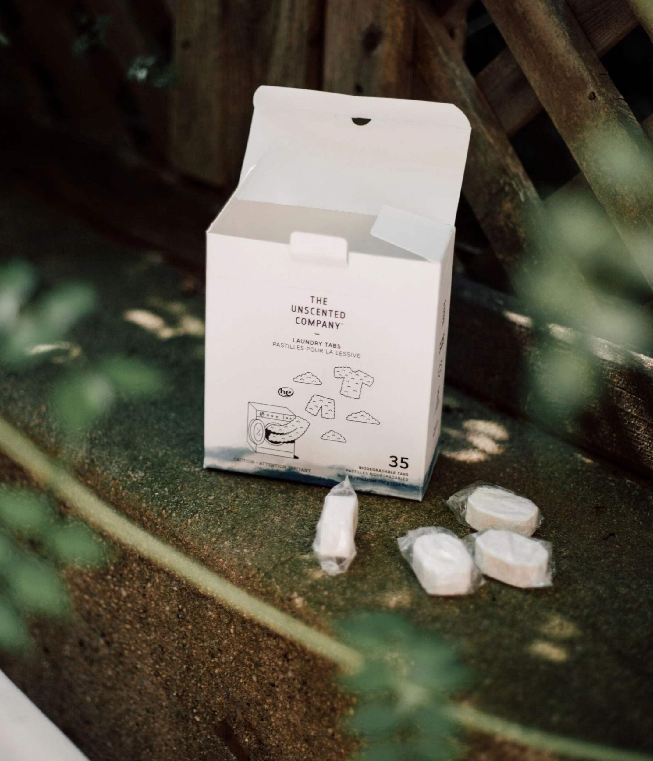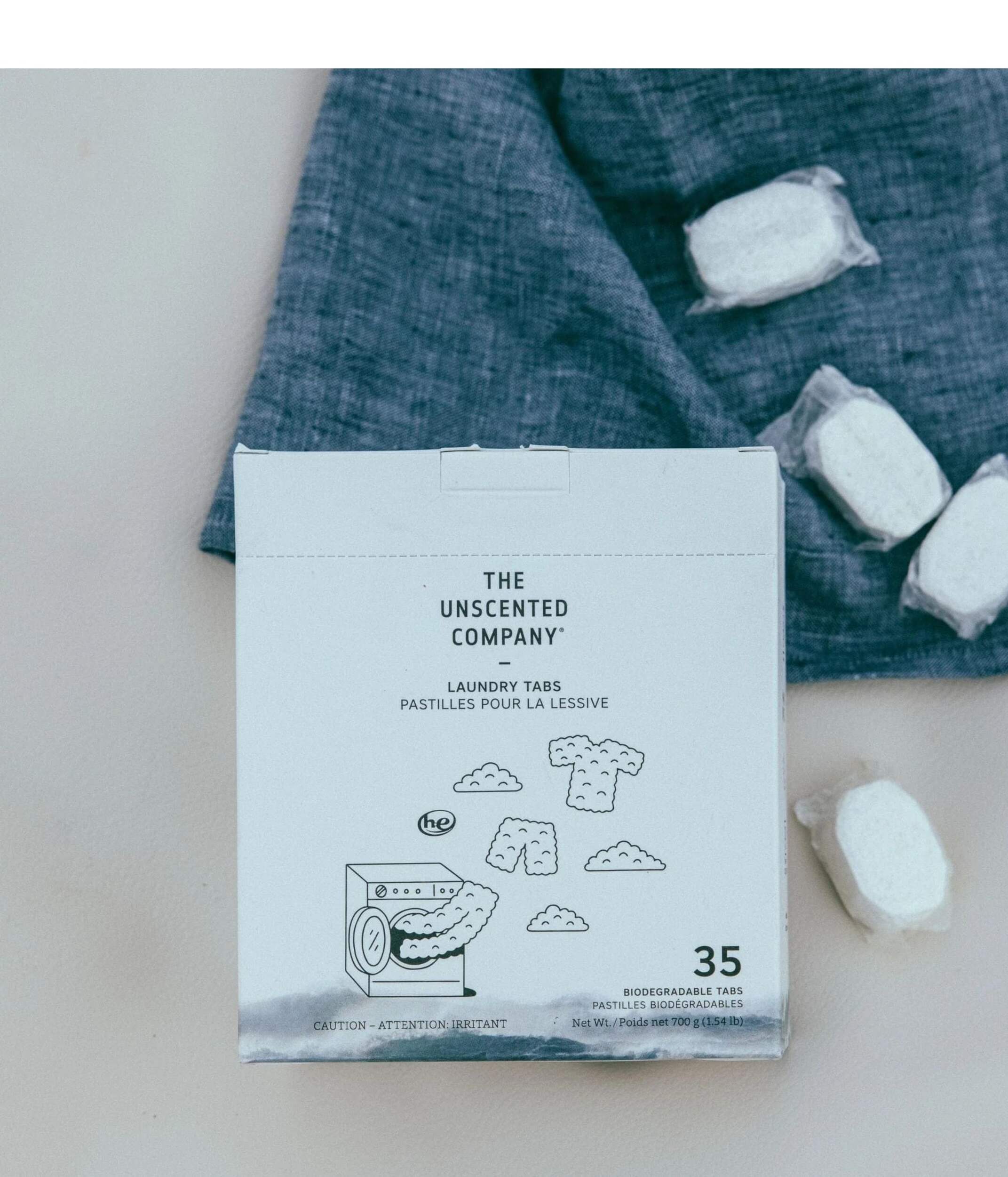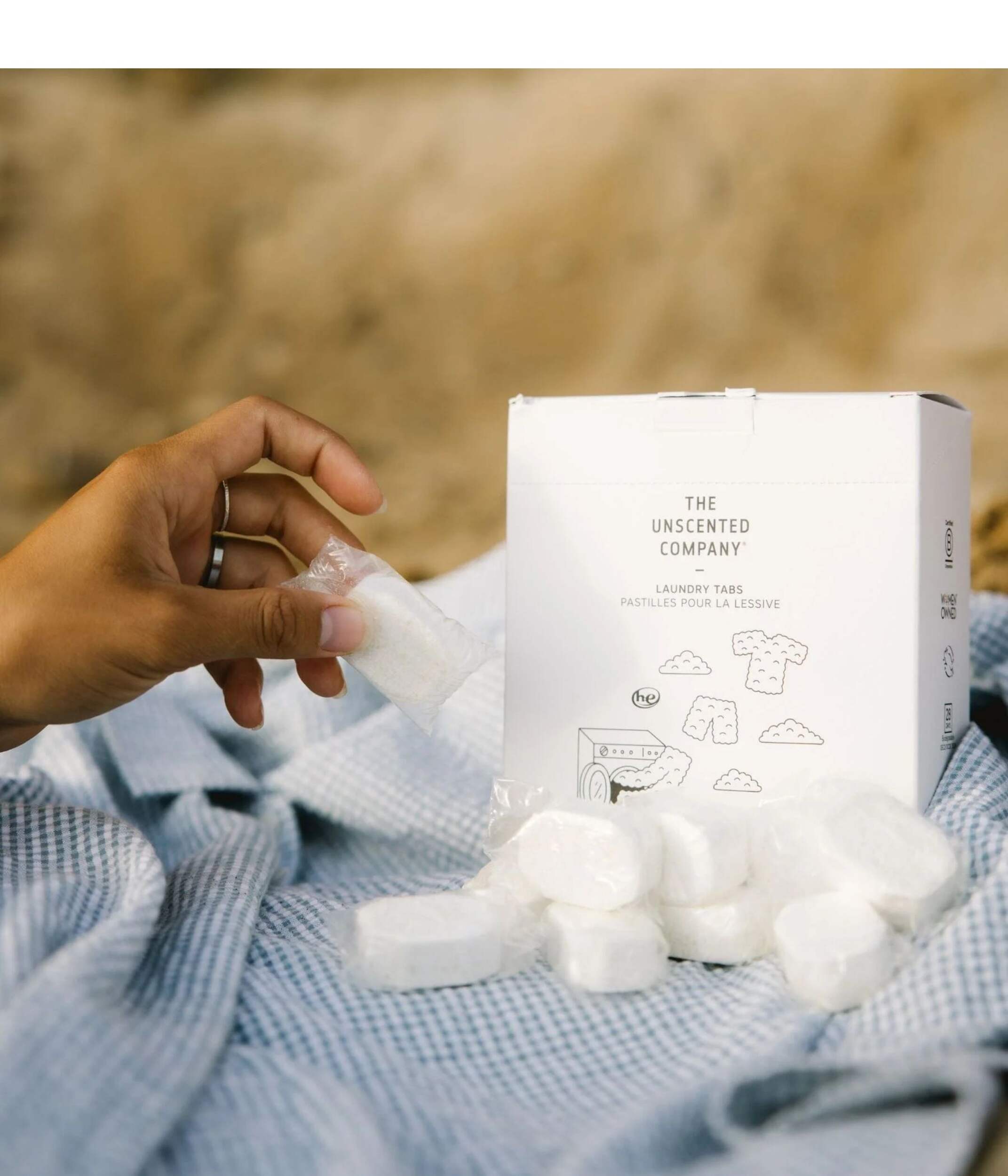 Pastilles de détergent à lessive sans plastique The Unscented Company sans parfum ou colorant qui laisseront vos vêtements si doux que vous vous demanderez comment vous avez pu vous en passer