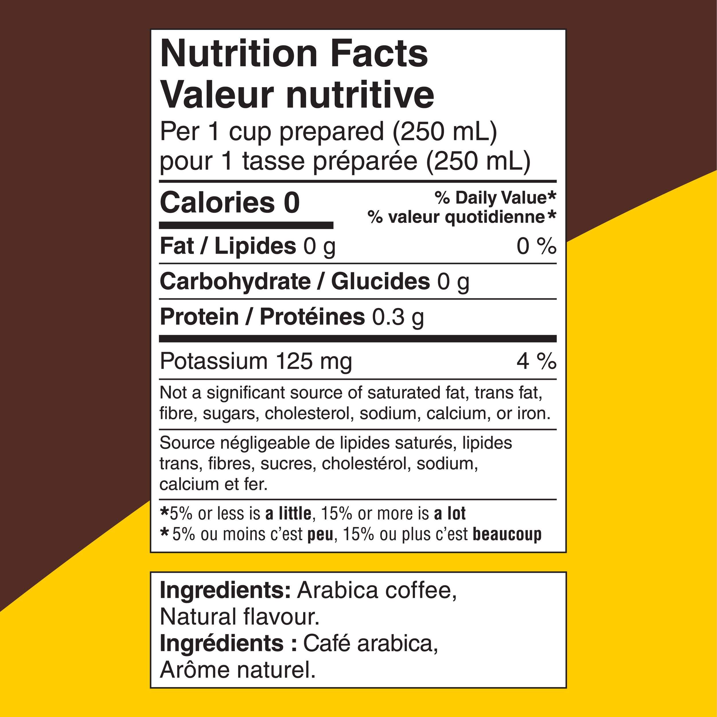 Caramel provenant à 100 % de sources de fermes de café certifiées Rainforest Alliance, ce qui signifie que nos grains sont cultivés et récoltés dans le respect des êtres humains, de la faune sauvage et de l'environnement