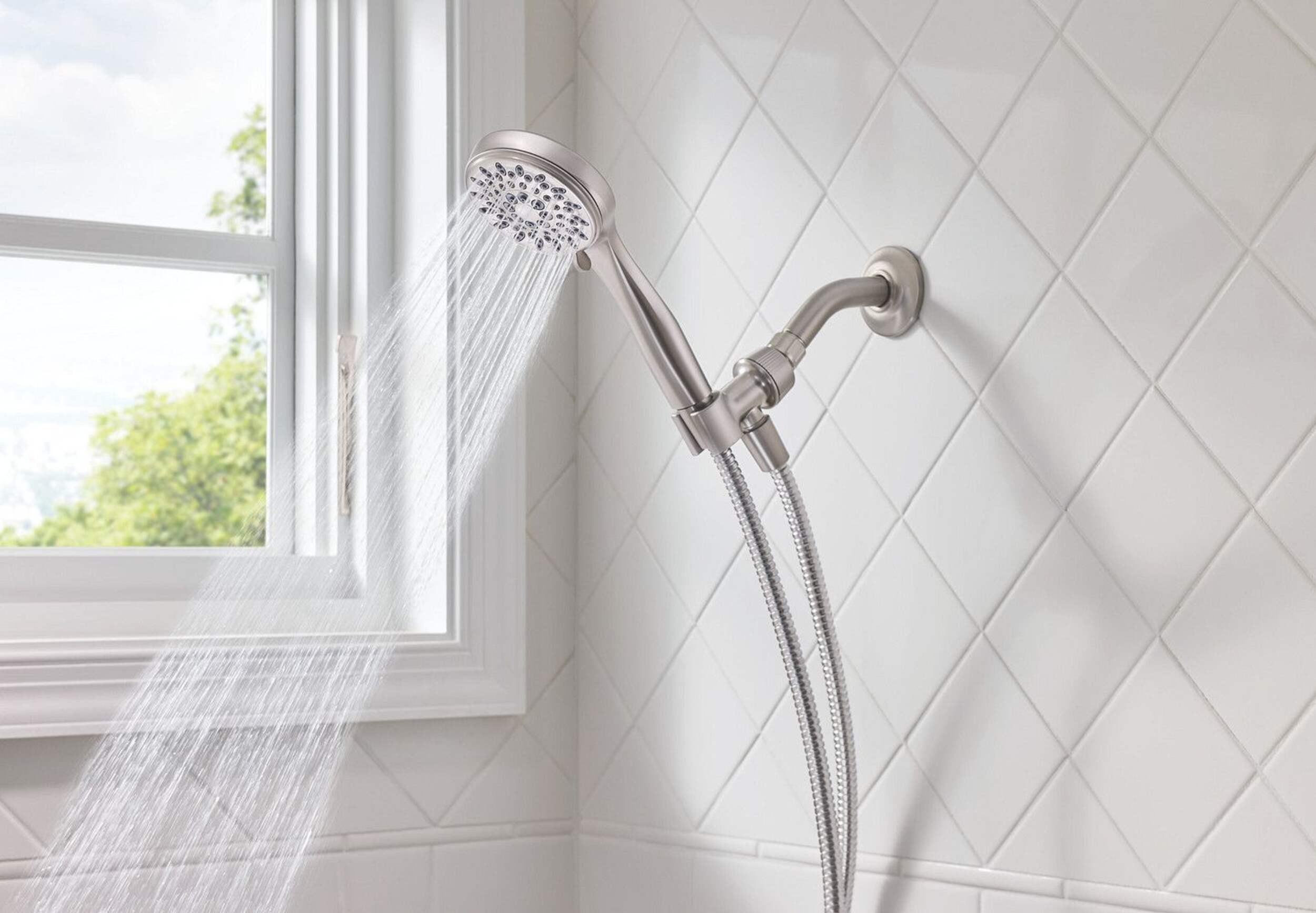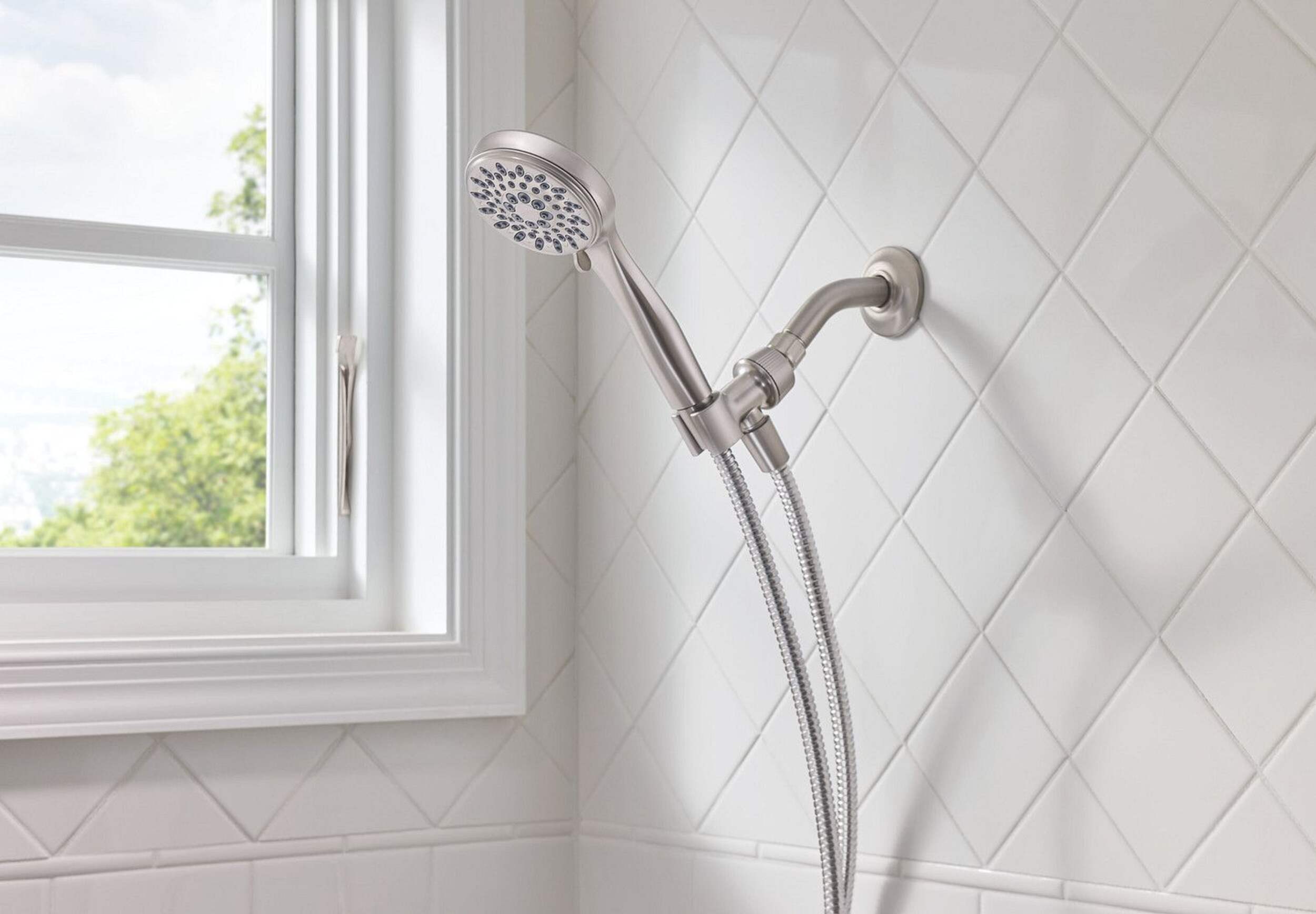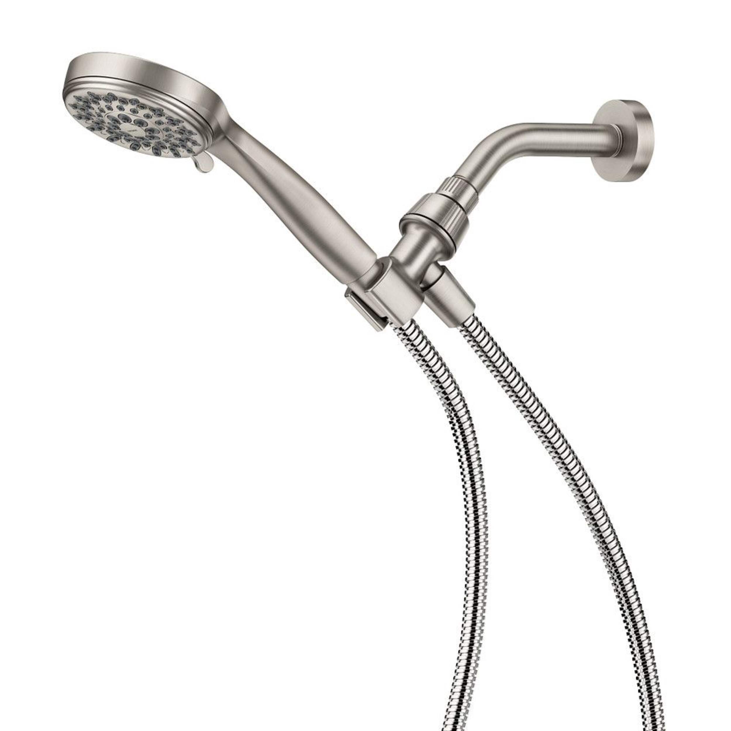 La douche à main Moen Ignite à 5 réglages au fini nickel brossé ajoute une touche d'élégance et de polyvalence à toute salle de bain; elle s'agence parfaitement à n'importe quel décor moderne. Cette pomme de douche offre une expérience de douche confortable et efficace grâce à divers réglages de jet qui répondent à vos besoins. Ce modèle durable assure une utilisation quotidienne fiable, tandis que son fini contemporain ajoute une touche d'élégance. Facile à nettoyer et à entretenir, la douche à main Ignite est un choix pratique et élégant pour améliorer votre routine de douche.