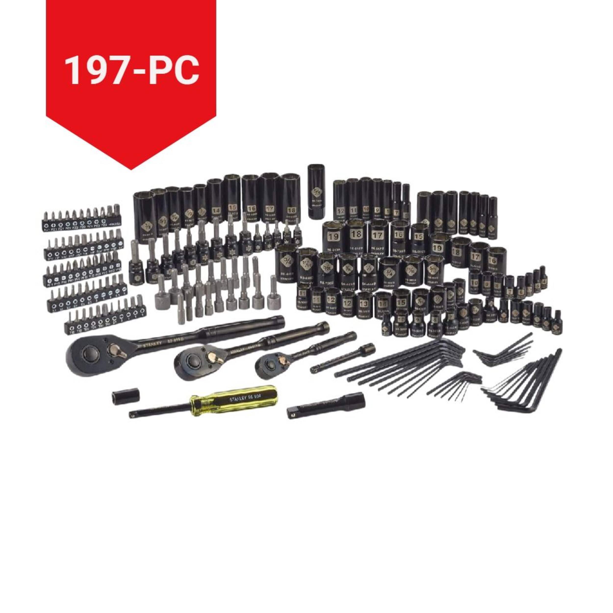 Douilles Stanley de qualité professionnelle au fini chromé de couleur noire durable améliorant la résistance à la rouille et à la corrosion