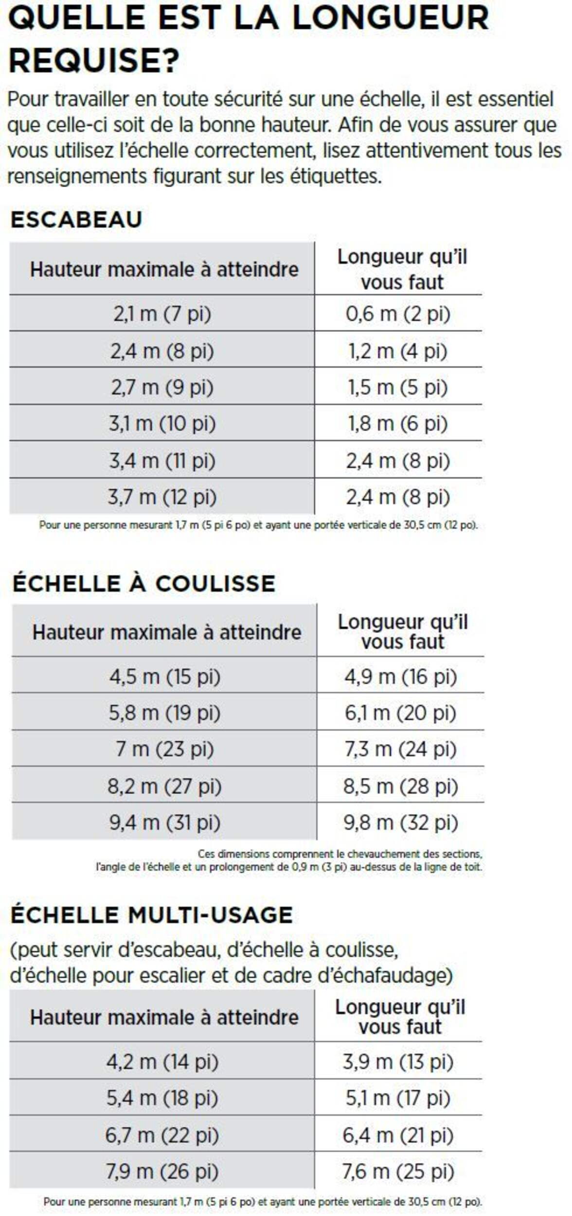 | Type d’échelle | Échelle à coulisse | Échelle à coulisse | Échelle à coulisse | Escabeau | |
