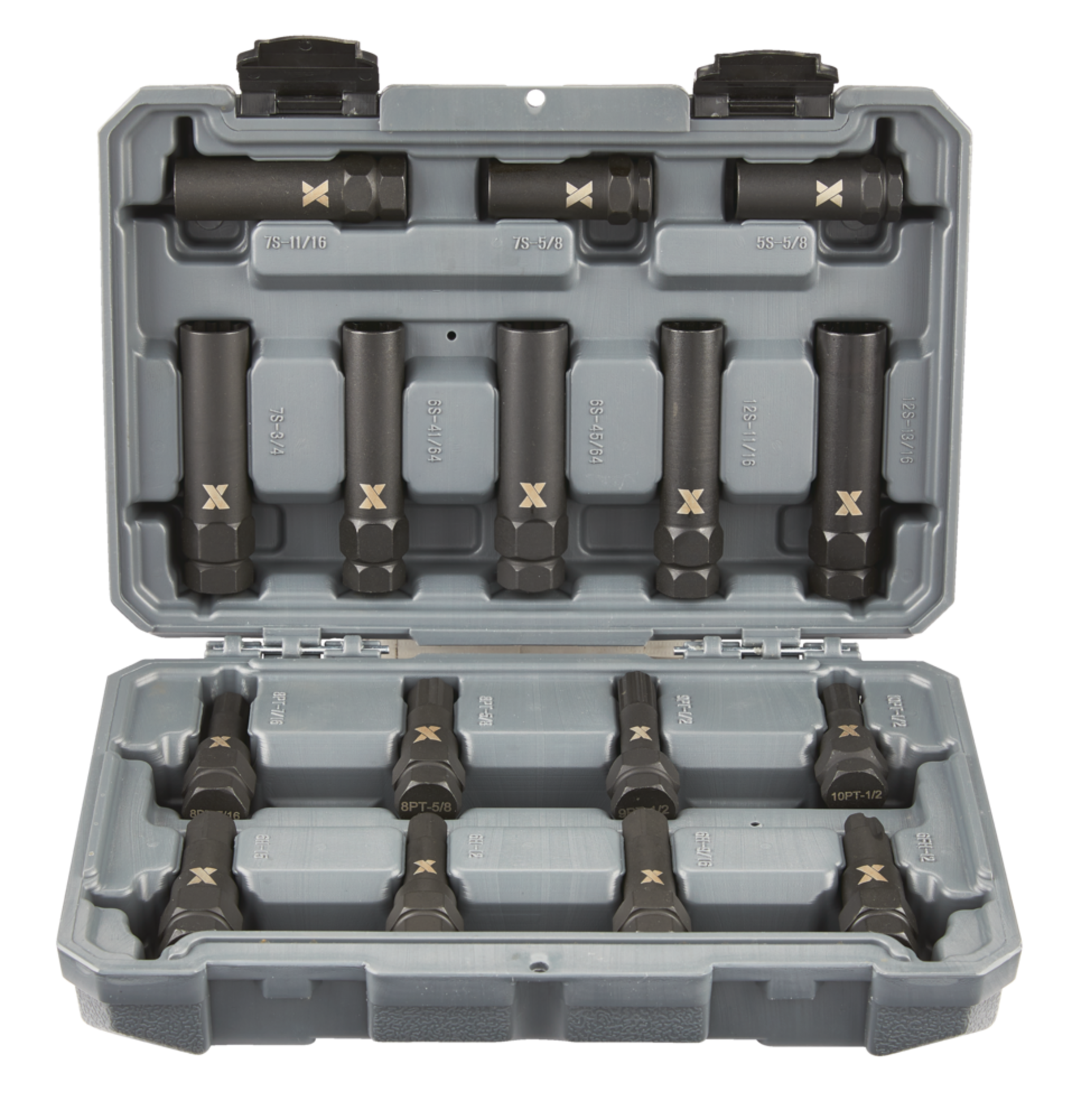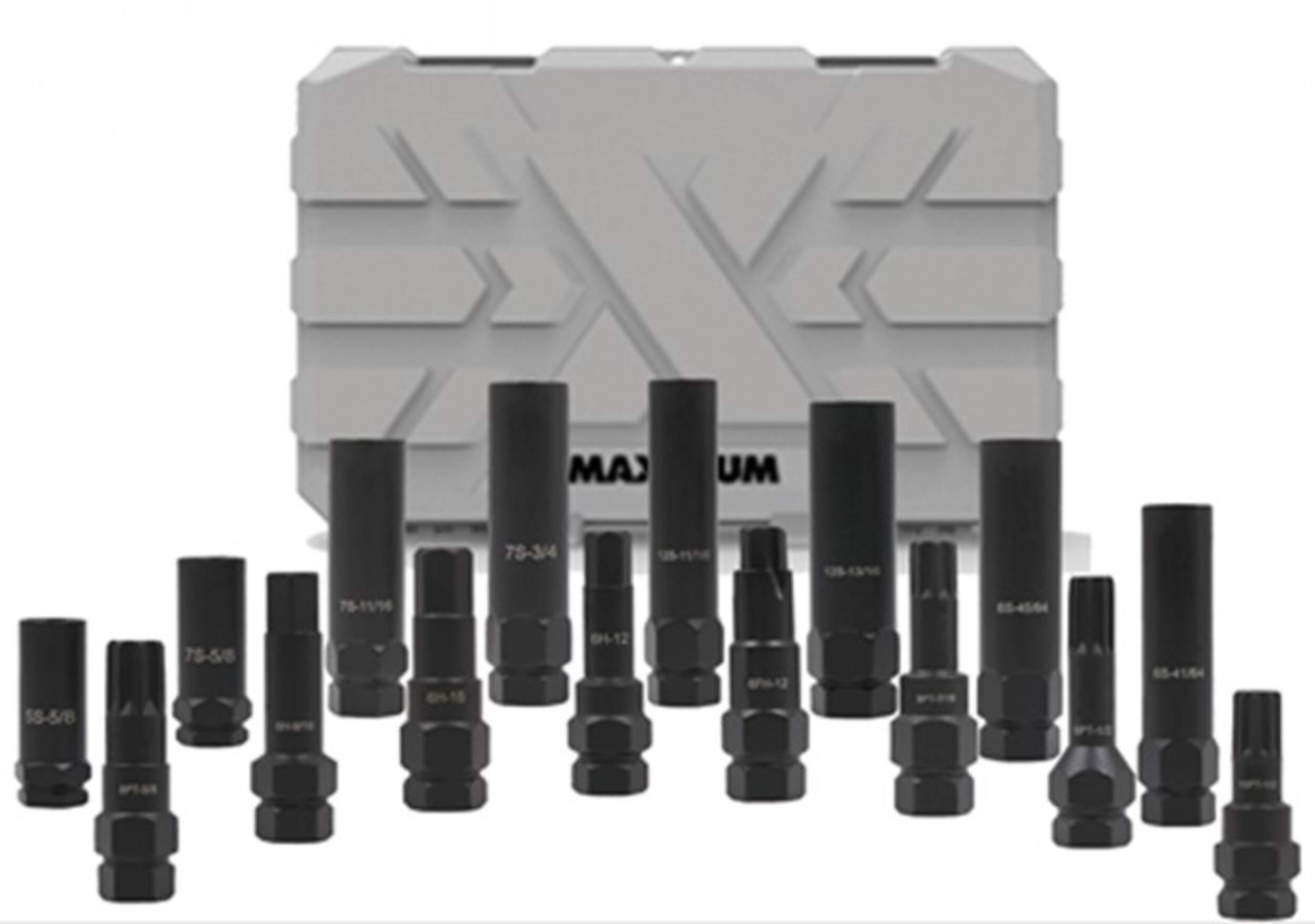 Enlevez les écrous de roue verrouillables des roues du marché secondaire à l'aide de l'ensemble de retrait d'écrou de roue verrouillable MAXIMUM. Cet ensemble d'extracteurs d'écrous de roue est fabriqué en acier traité thermiquement pour une longévité accrue et une performance robuste. Doté d'une grande puissance pour retirer les écrous de roue, cet ensemble de retrait d'écrous de roue verrouillable est équipé d'une douille à paroi mince pour aider à prévenir les rayures et les dommages. Ensemble de retrait d'écrous de roue verrouillable doté de marques gravées au laser pour une visibilité et une sélection faciles des tailles.