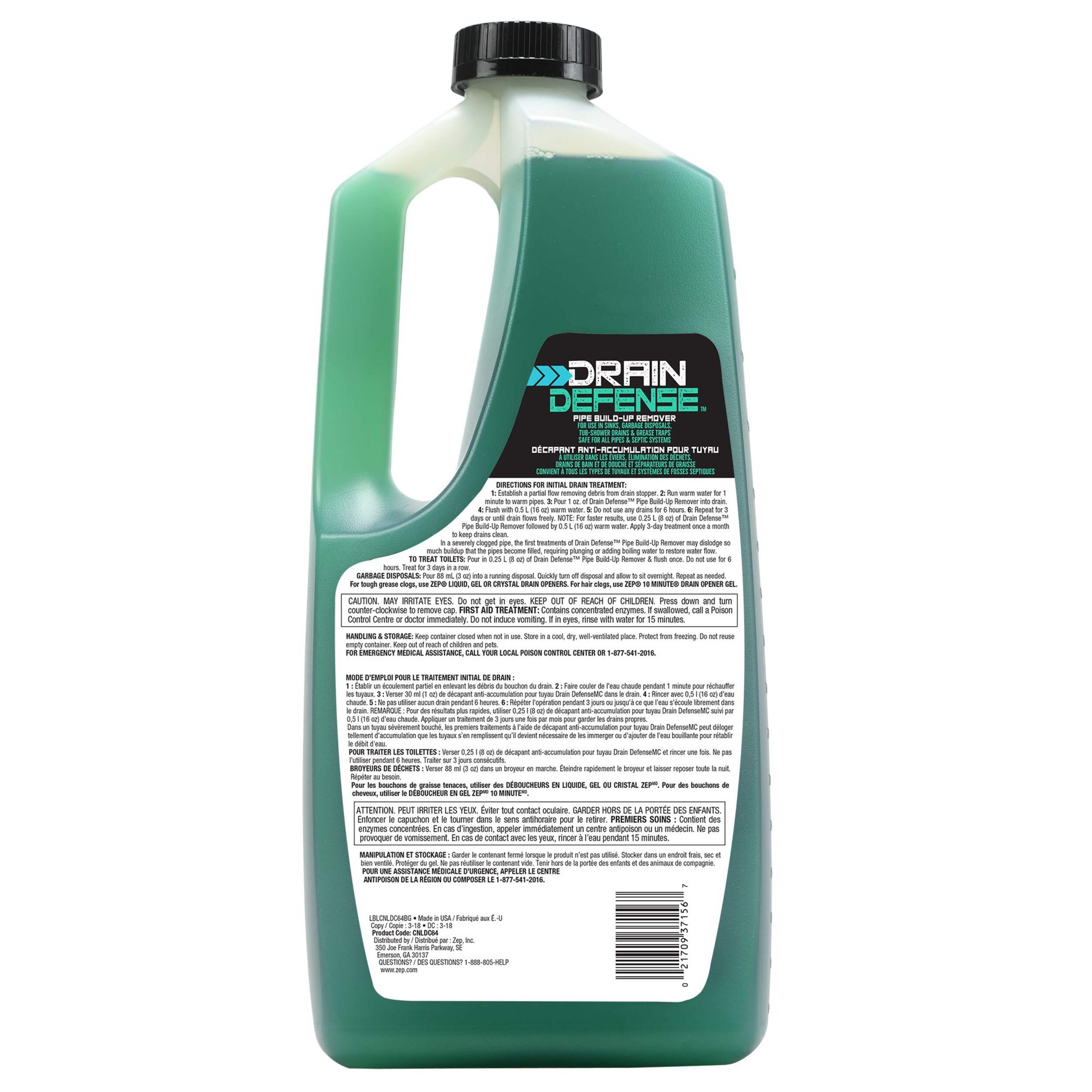 Liquide d'entretien de drain Zep, conçu pour nettoyer les dépôts organiques qui réduisent l'écoulement et restaurer le débit normal