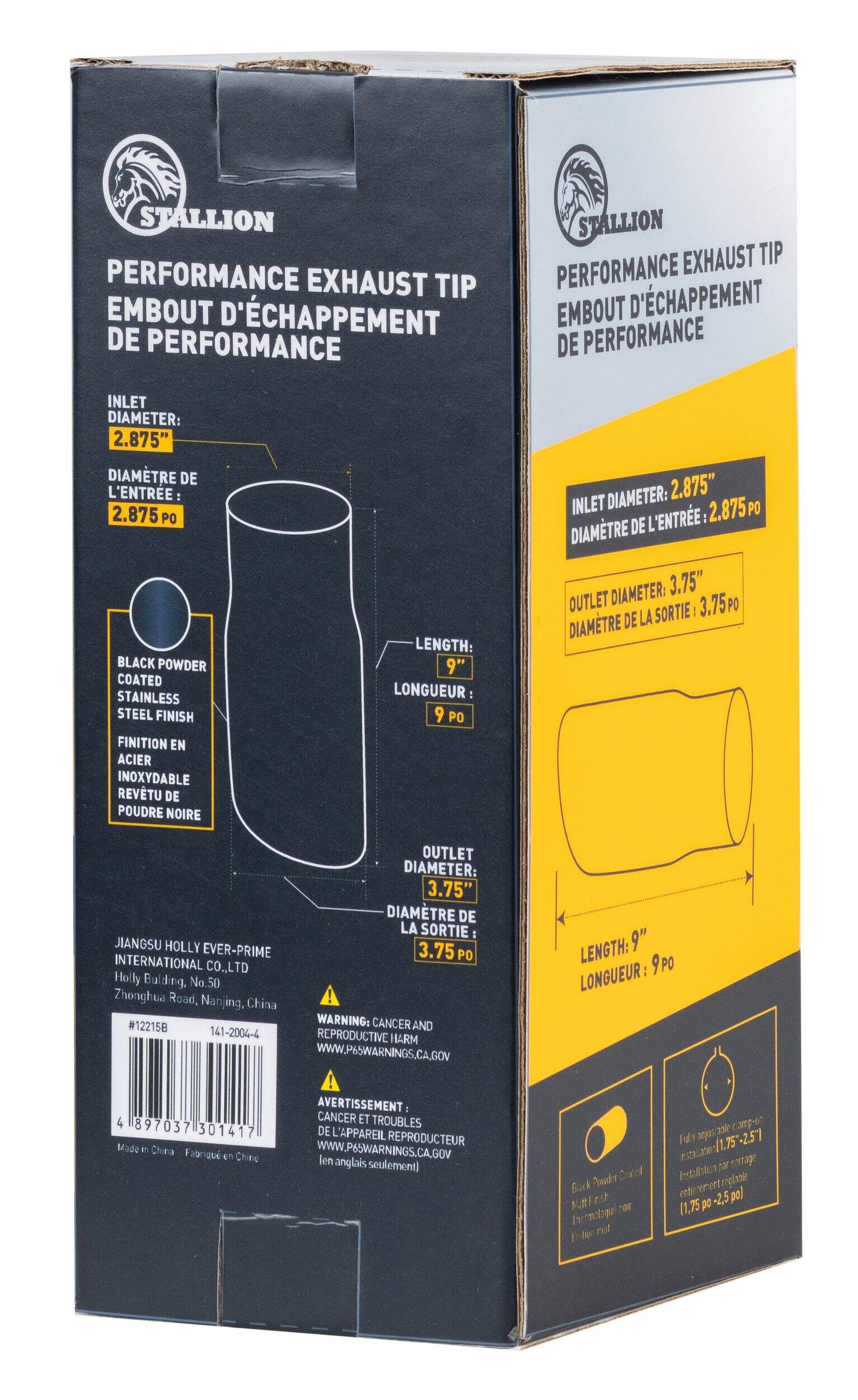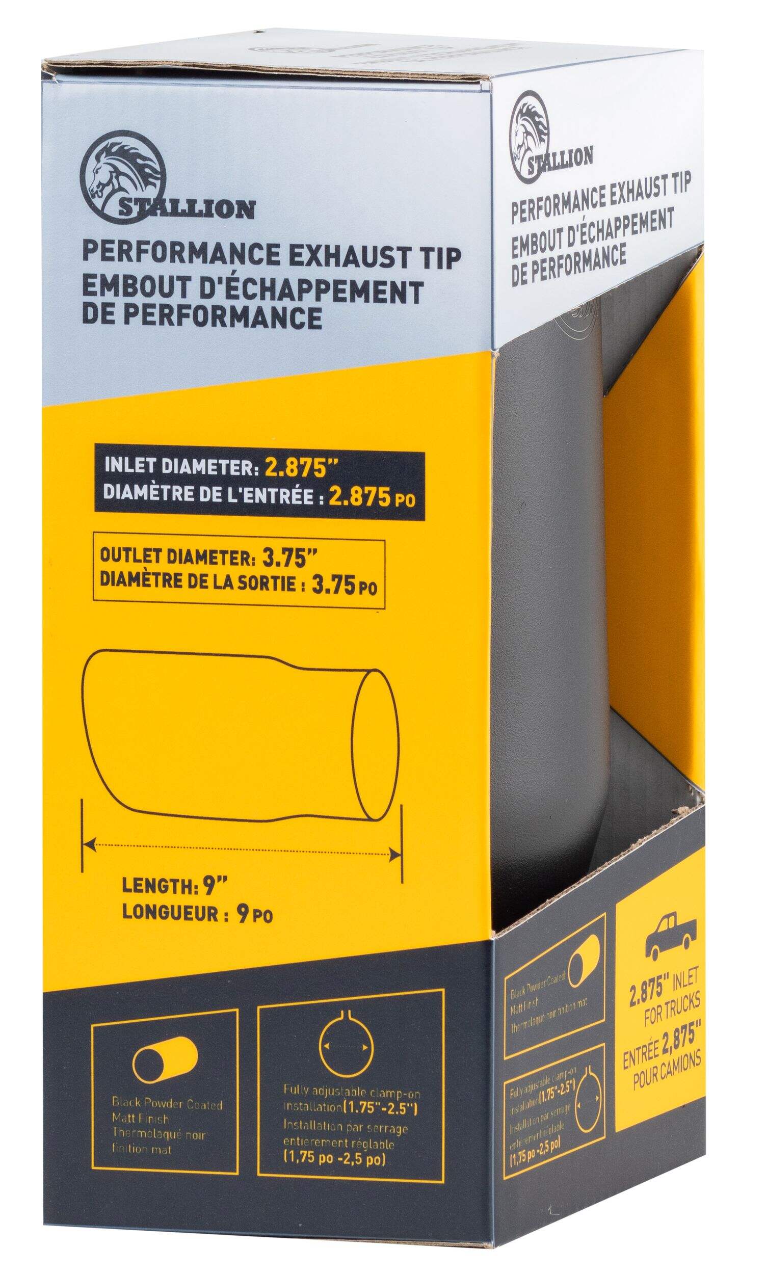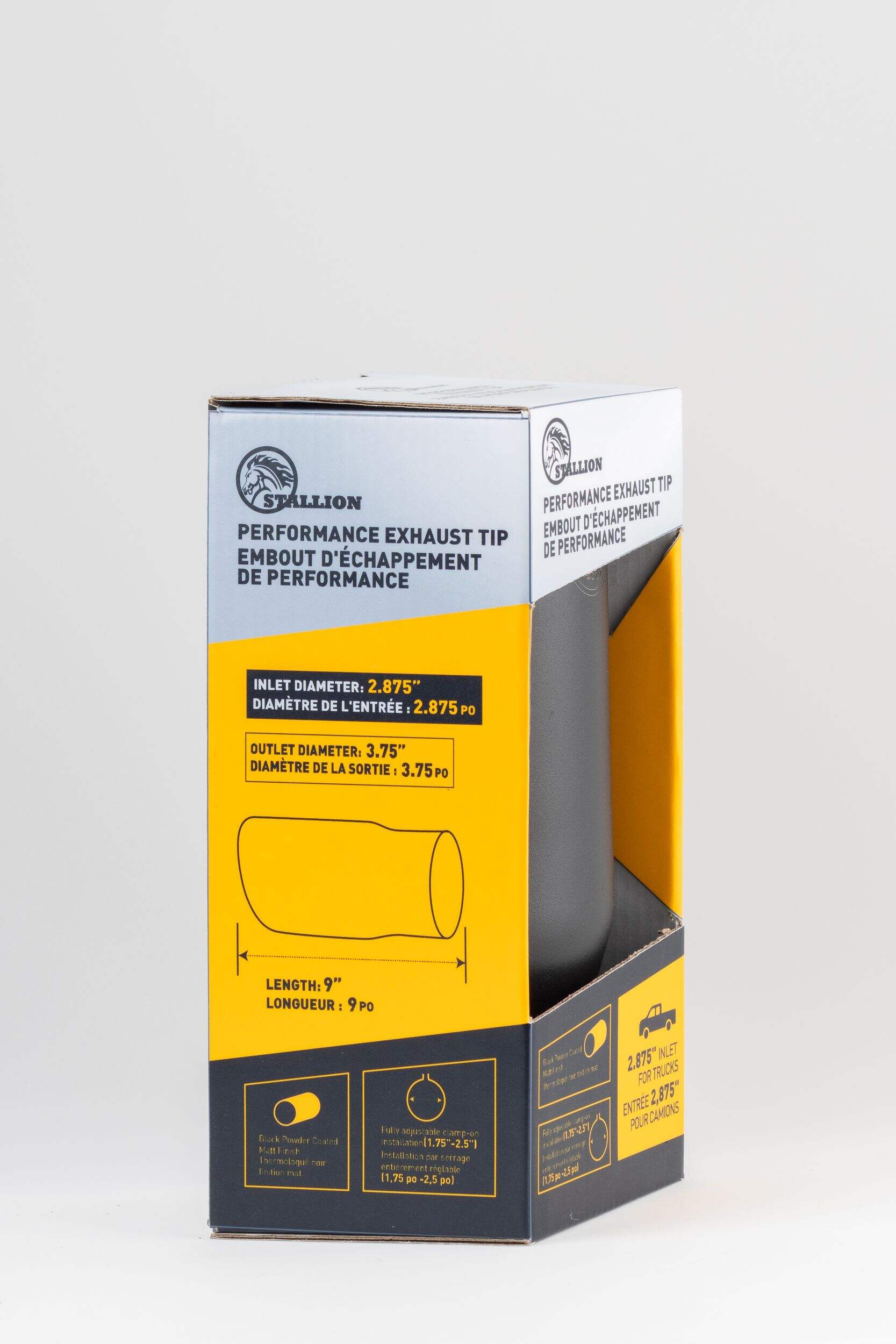 L'embout d'échappement Bully en acier inoxydable peint par poudrage noir crée un point focal à l'arrière du camion ou du VUS. Parfaitement fonctionnel, le système de serrage universel à 3 boulons s'installe facilement sur les véhicules à prises de 1,75 à 2,5 po. L'embout noir procure une amélioration subtile et élégante à votre véhicule.