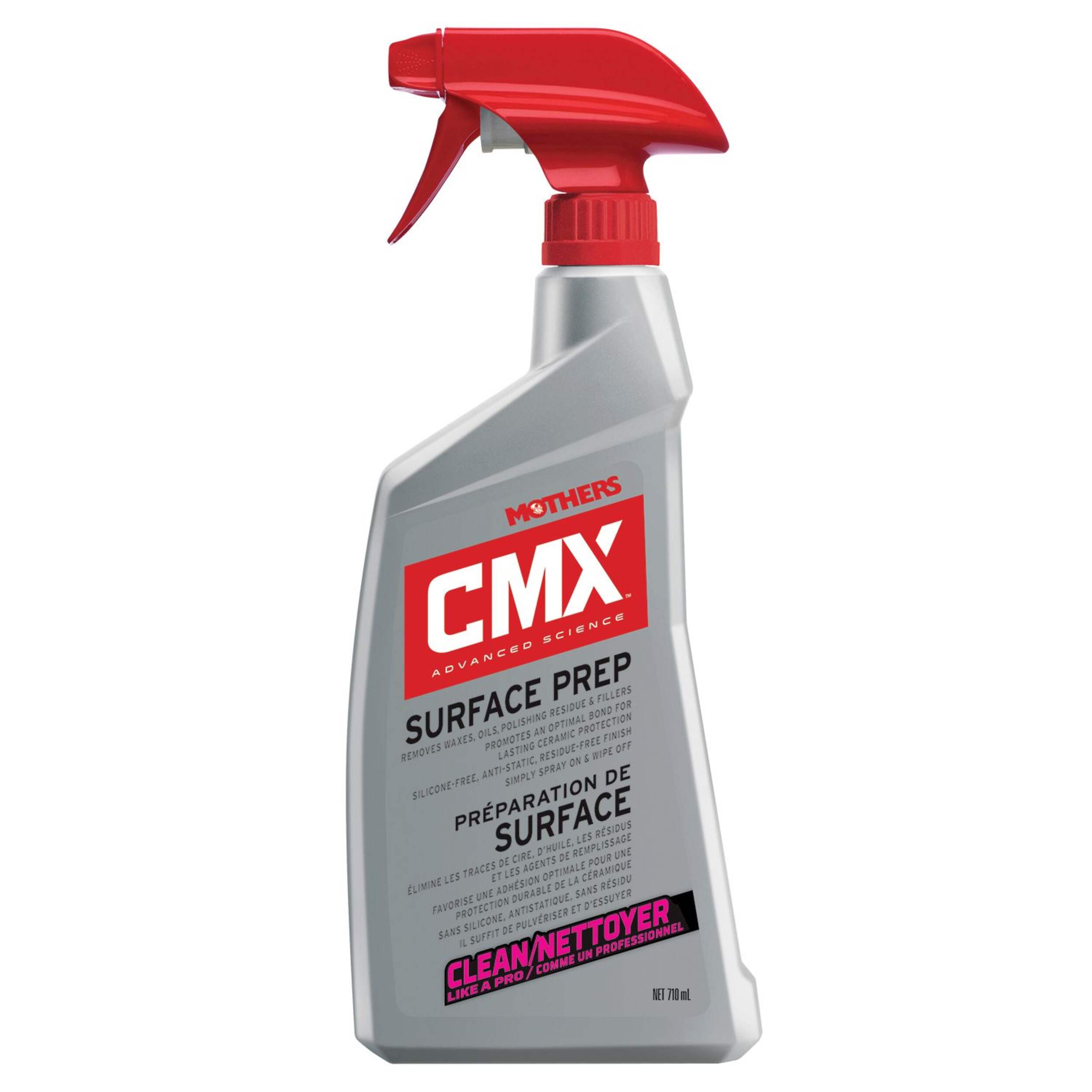 L'enduit de préparation de surface CMX Mothers en vaporisateur de 710 mL est essentiel pour une adhérence optimale avant l'application d'un revêtement céramique, d'un produit d'étanchéité ou d'une cire. Ce nettoyant à pH neutre élimine efficacement les vieilles cires, les huiles tenaces, les graisses et les mastics, ainsi que les résidus de polissage, grâce à des tensioactifs et des solvants biodégradables qui éliminent les graisses. Il peut être utilisé en toute sécurité sur n'importe quelle surface extérieure du véhicule, y compris la peinture, les vitres, les garnitures, les roues et les pneus, ainsi que dans les ateliers de carrosserie grâce à sa formule sans silicone. Il suffit de vaporiser et d'essuyer, et l'enduit de préparation de surface CMX laissera une surface propre, sans résidus, antistatique et résistante à la poussière, prête à recevoir un revêtement.