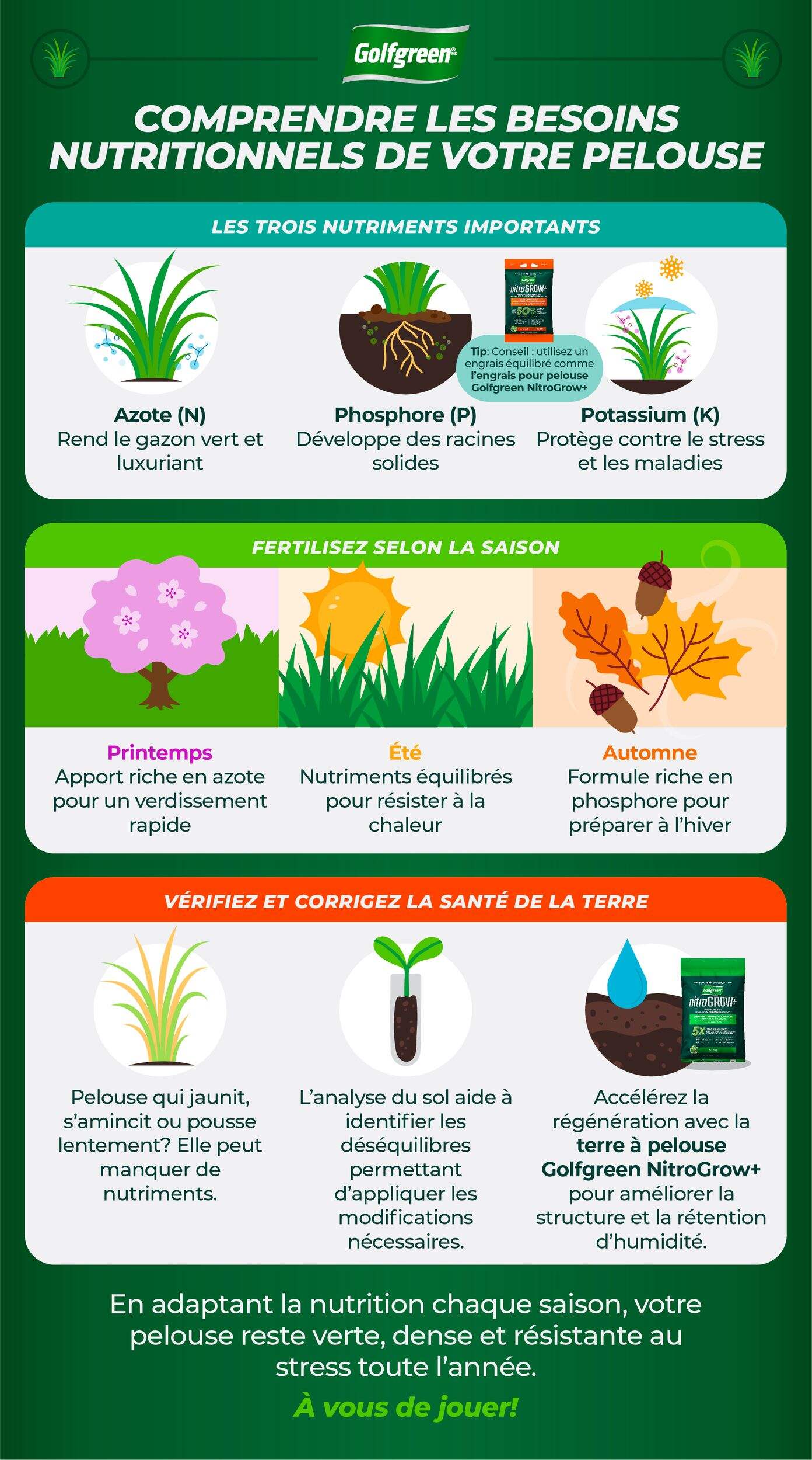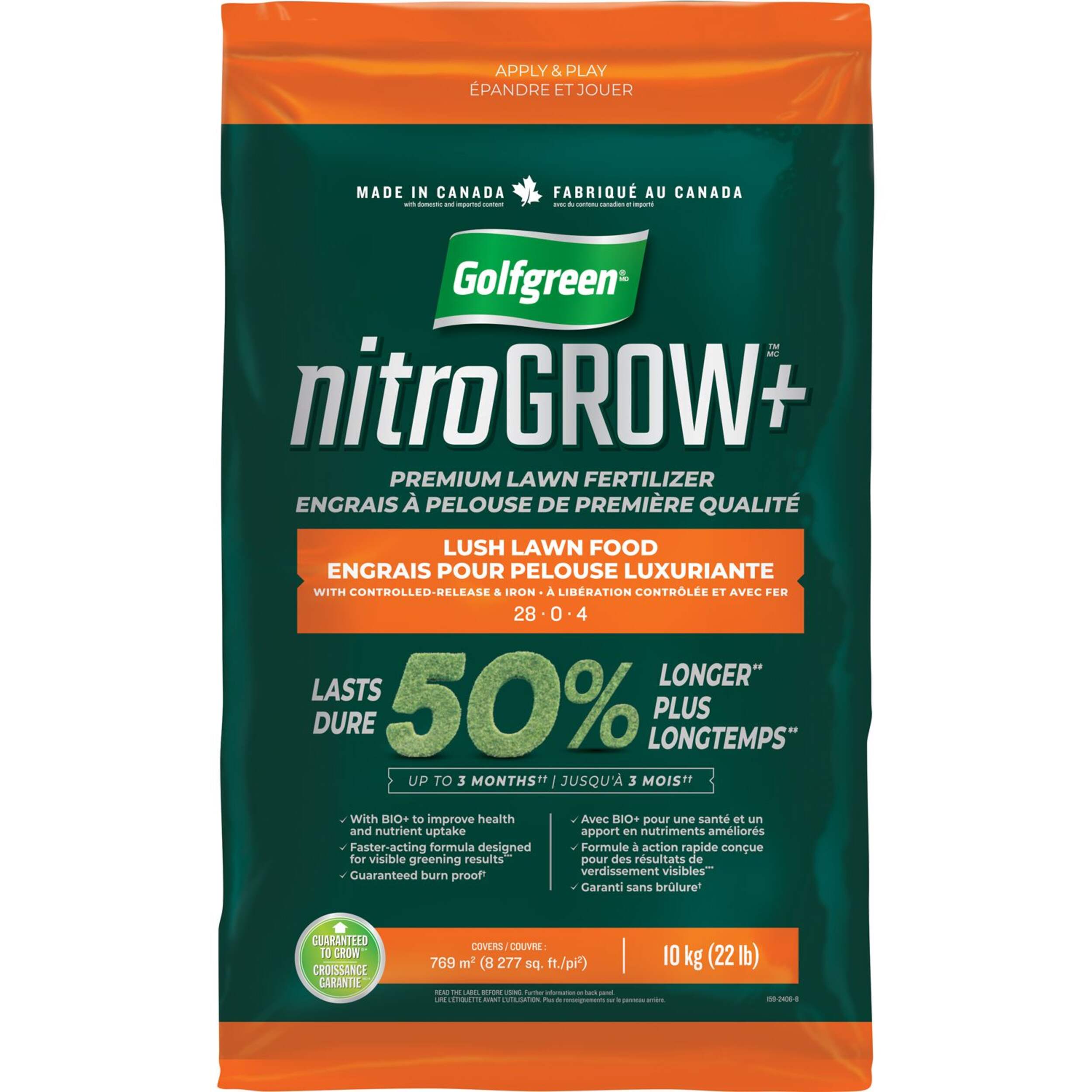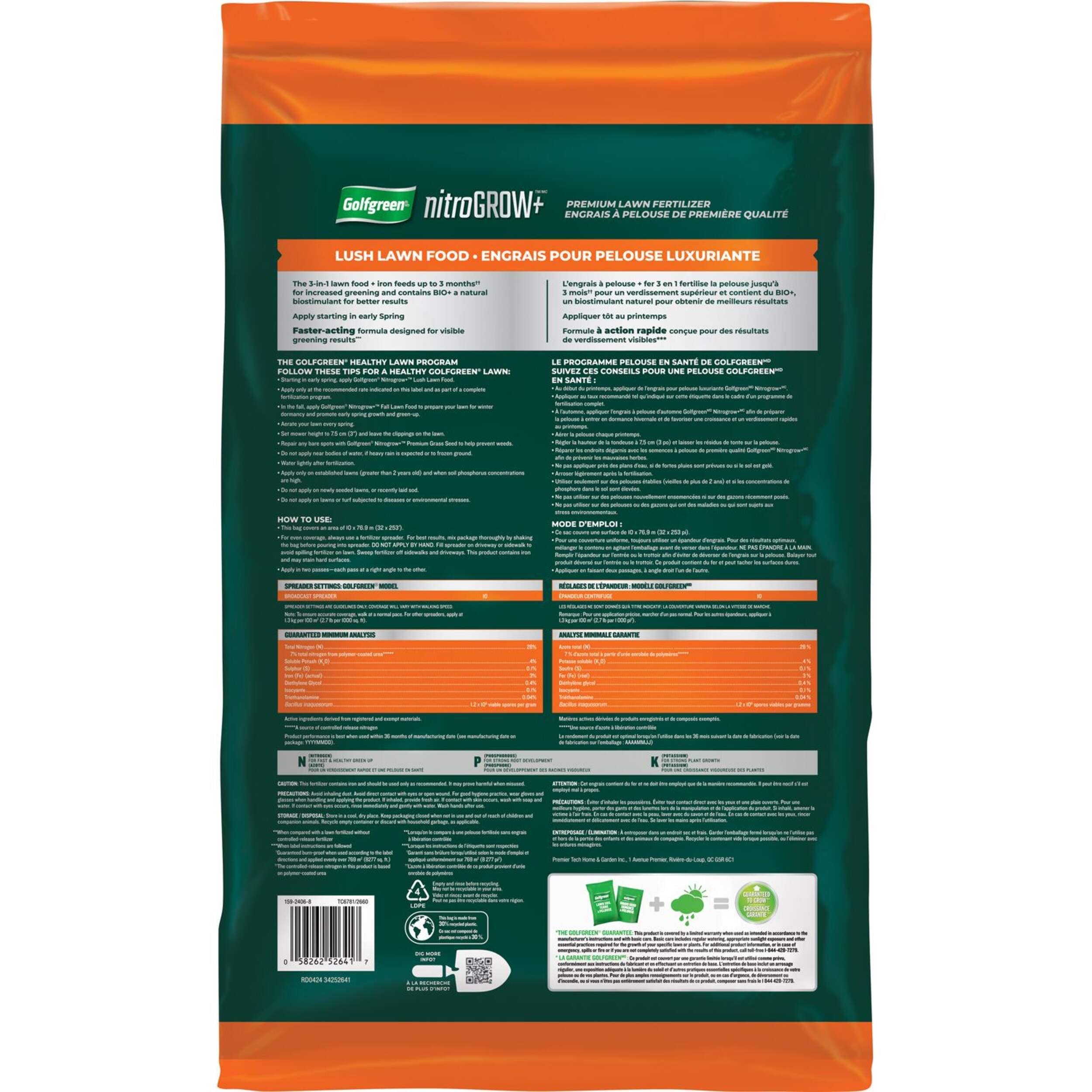 Engrais pour pelouse luxuriante Golfgreen Nitrogrow+ doté d'une technologie de croissance garantie avec un complexe enrichi en azote