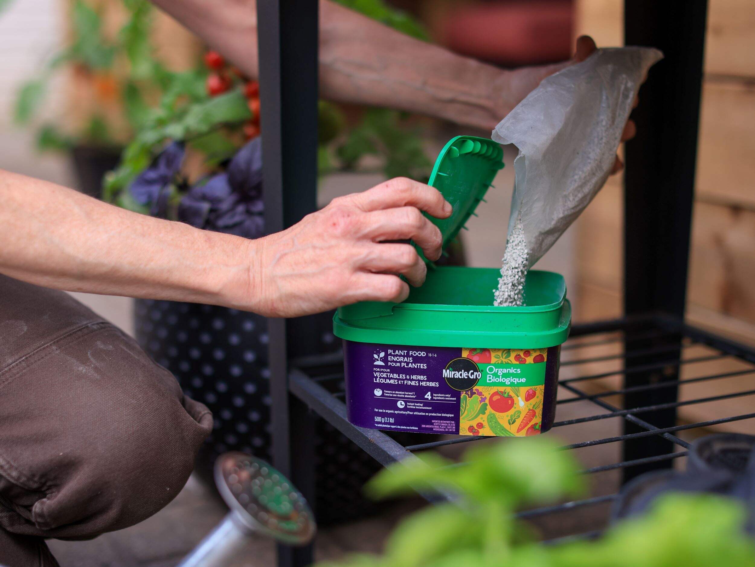 Engrais Miracle-Gro qui aide les plantes à pousser Vous venez de le trouver. Engrais biologique Miracle-Gro pour légumes et fines herbes Cet engrais est formulé pour vous donner les résultats que vous attendez de Miracle-Gro avec les ingrédients désirés. Contient de l’azote protéique pour un feuillage luxuriant et de nombreux légumes et fines herbes Cette formule naturelle ne contient que 4 ingrédients : Hydrolysat de protéines de soja, farine d’os, graines de tournesol, sulfate de potassium, effet instantané Cela signifie que vous récolterez plus de légumes, de fines herbes et de fruits biologiques. Facile à utiliser, cet engrais pour plantes se mélange facilement avec de l’eau pour arroser à la main de petits jardins avec un arrosoir. Chaque semaine, obtenez des résultats incroyables Miracle-Gro. Un engrais pour vos plantes, et pour vous. C’est ce que l’on appelle une situation gagnant-gagnant.