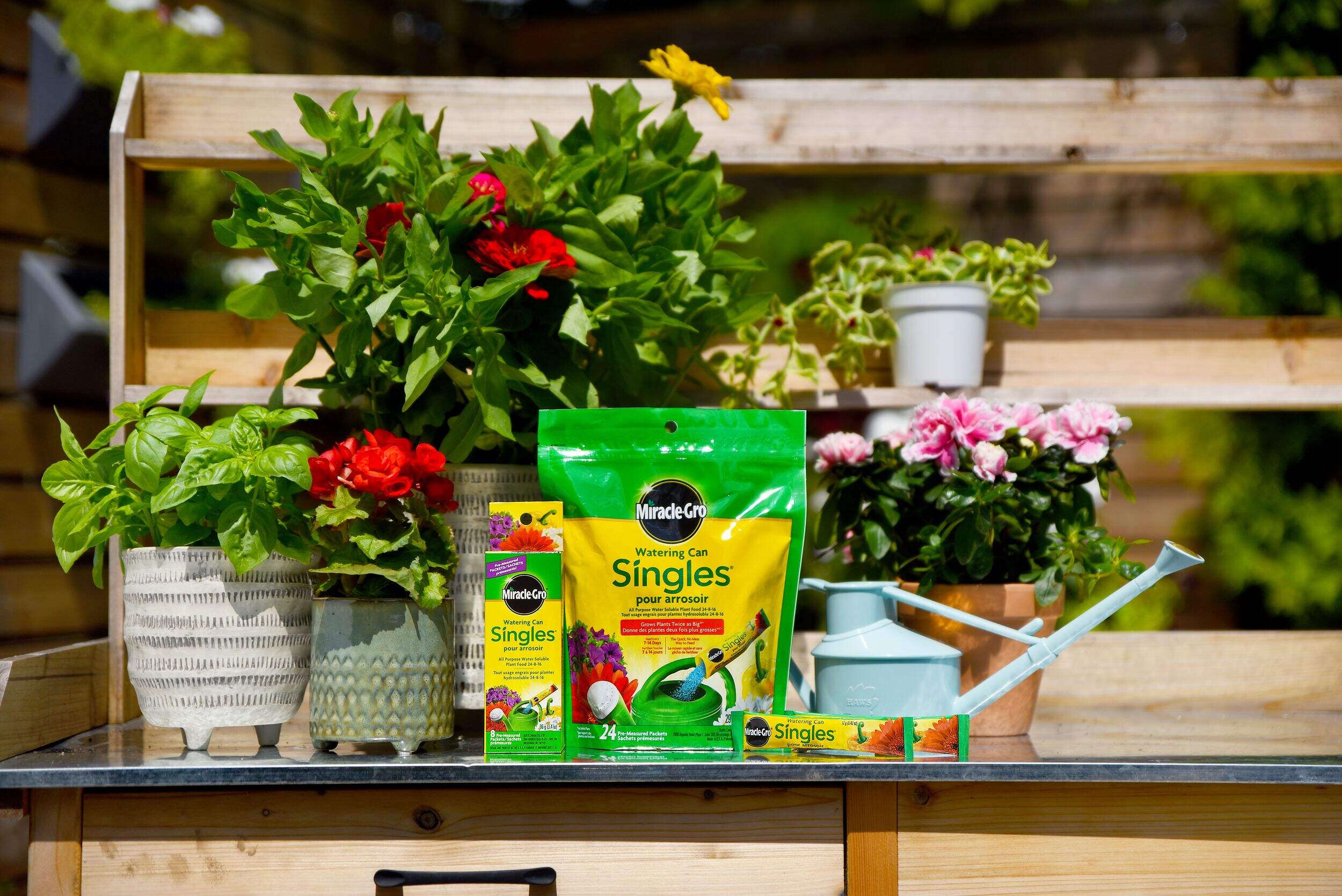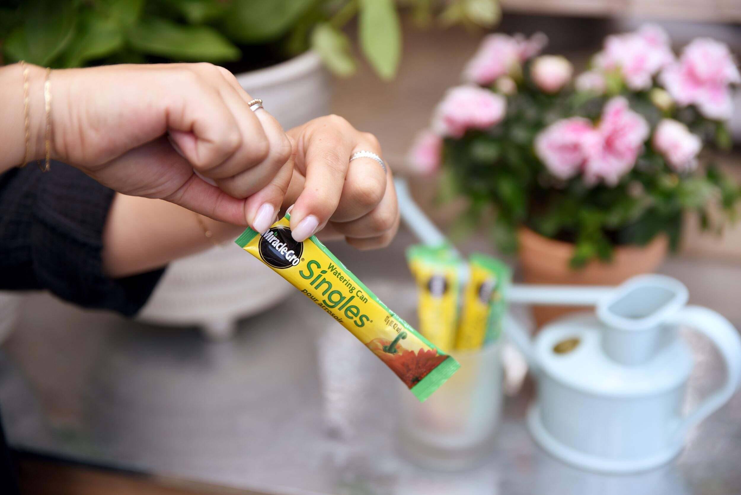 Nourrissez vos plantes maintenant sans dégâts et sans tracas grâce à l'engrais tout usage hydrosoluble Miracle-GroMD SinglesMD pour arrosoir 24-8-16. Ces sachets pratiques et prémesurés permettent de nourrir facilement vos plantes en terre ou en pots. Il suffit de déchirer le sachet et de verser le contenu dans un arrosoir, d'ajouter la bonne quantité d'eau, puis d'arroser et d'alimenter. Ces petits sachets sont particulièrement puissants. Donne des plantes deux fois plus grossesMD*. Pour une alimentation rapide et sans souci à la façon Miracle-GroMD. *par rapport aux plantes non nourries