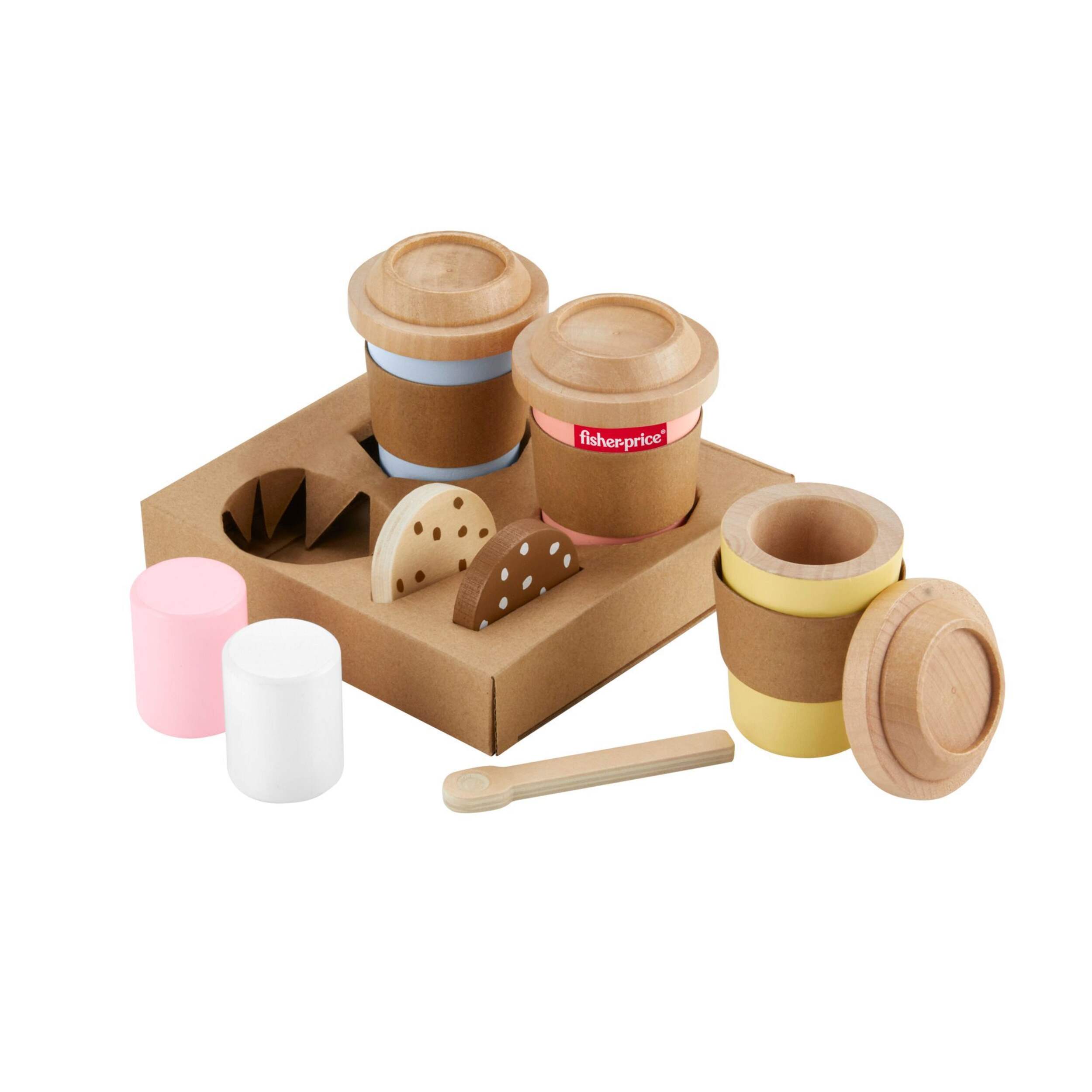 • Permet aux enfants d'âge préscolaire d'infuser de la simulation dans leur jeu avec ce coffret café à emporter en bois Fisher-PriceMD