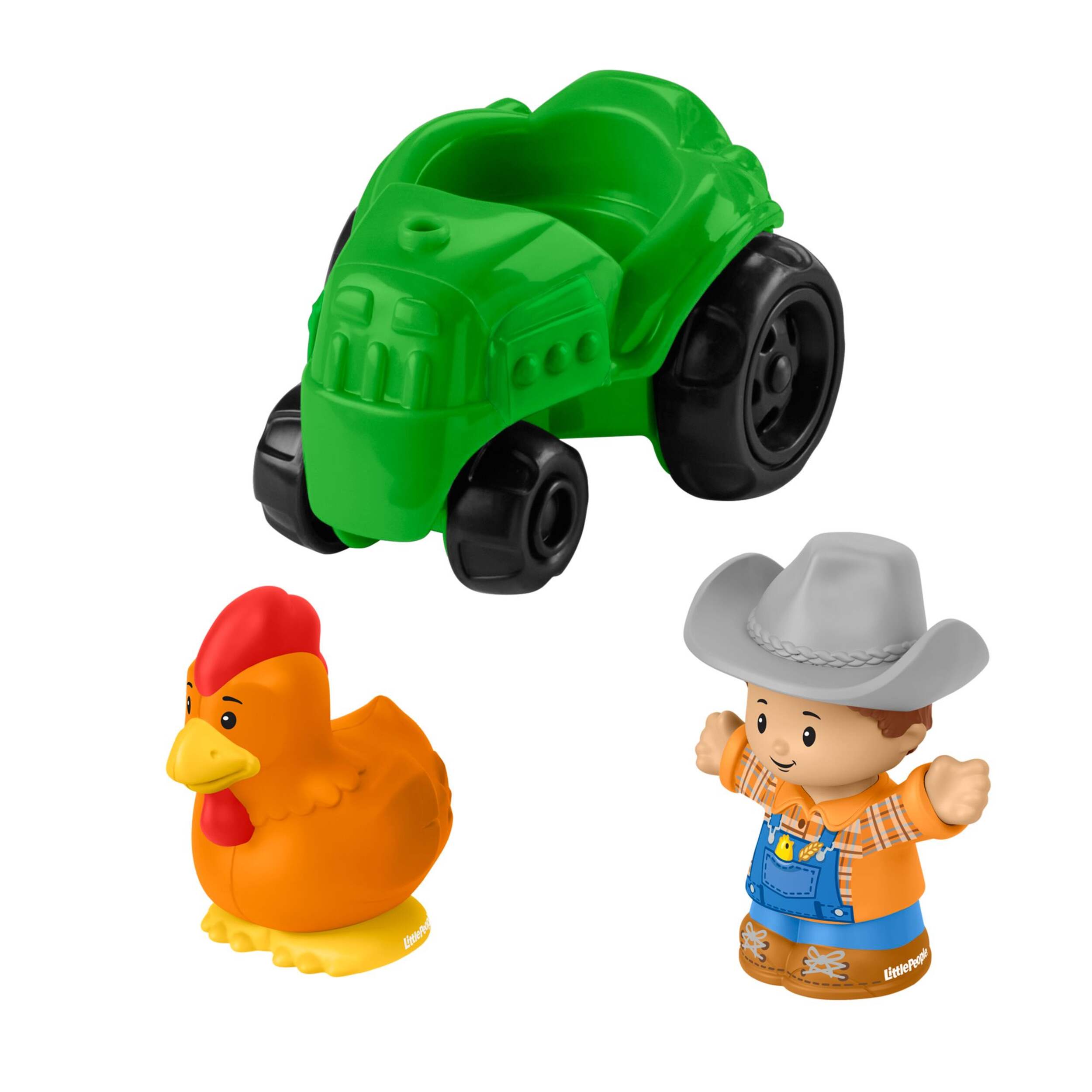 Adorable ensemble-cadeau comprenant un coffret de jeu de grange avec chute depuis le premier, tracteur à rouler, figurine de fermier et figurine de poulet