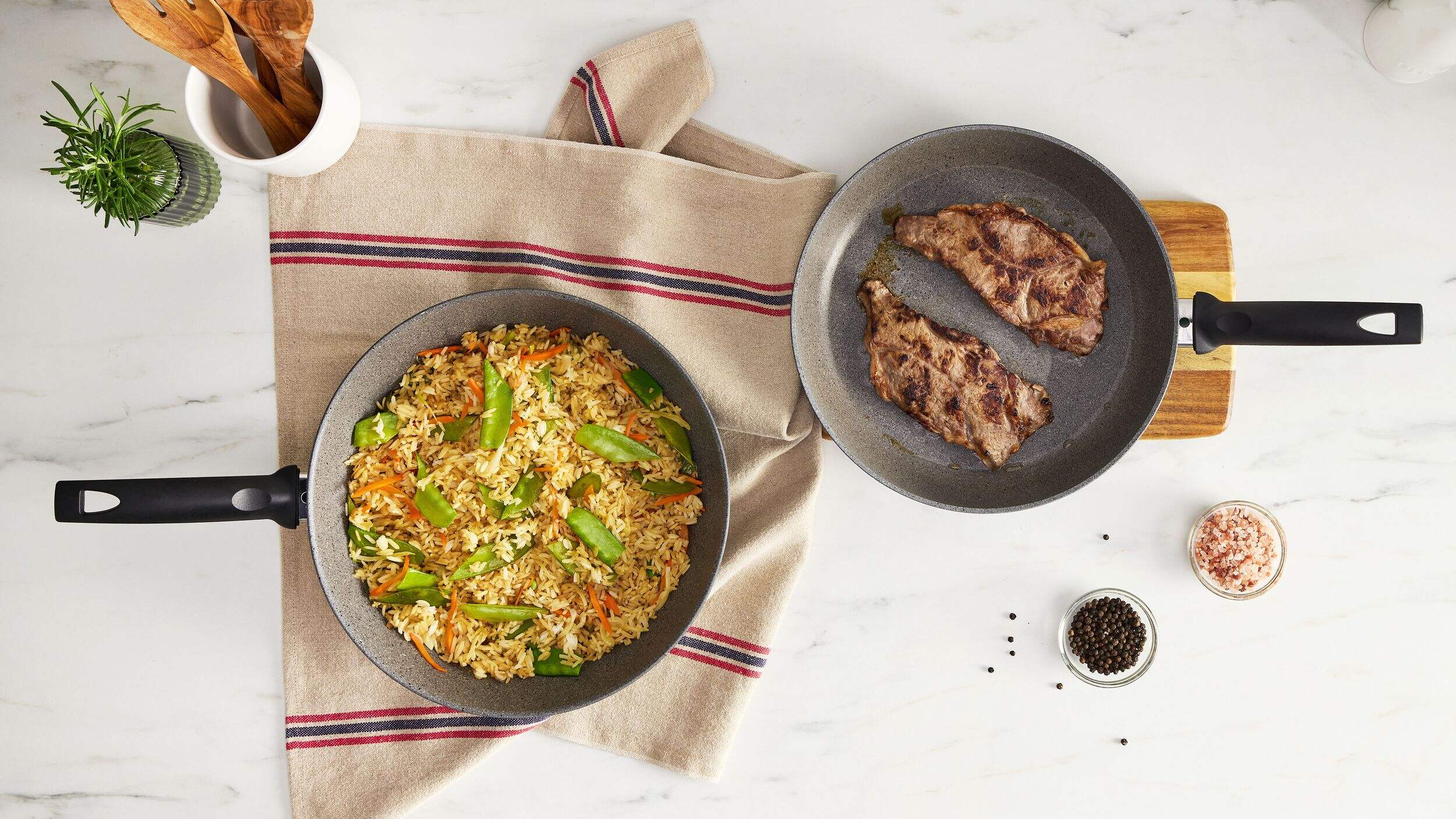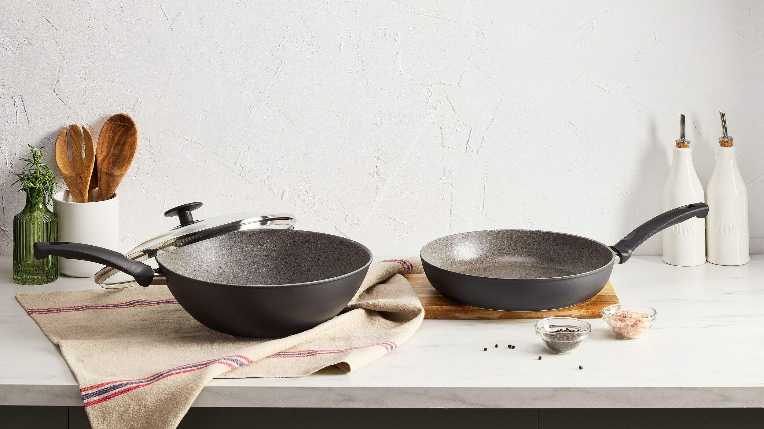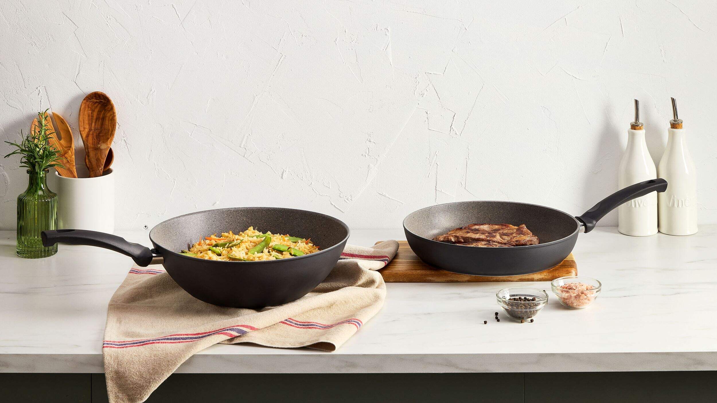 Conçue pour les cuisines modernes, cette poêle à frire en 3 pièces avec wok et couvercle combine performance de pointe et élégance