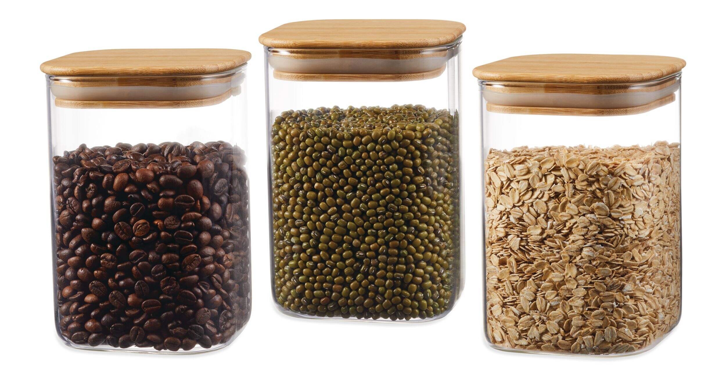 Avec ses couvercles hermétiques et son style élégant, l'ensemble de contenants pour garde-manger en verre carré Vida par PADERNO est un moyen simple de ranger des céréales, des noix et d'autres aliments secs. Ces contenants de rangement rabattables sont faits de verre de grande qualité allant au lave-vaisselle pour faciliter le nettoyage, tandis que les couvercles hermétiques en bambou sont certifiés FSC. Les contenants en verre borosilicaté durable sont conçus pour durer des années. L'ensemble comprend trois contenants empilables pour le garde-manger.
