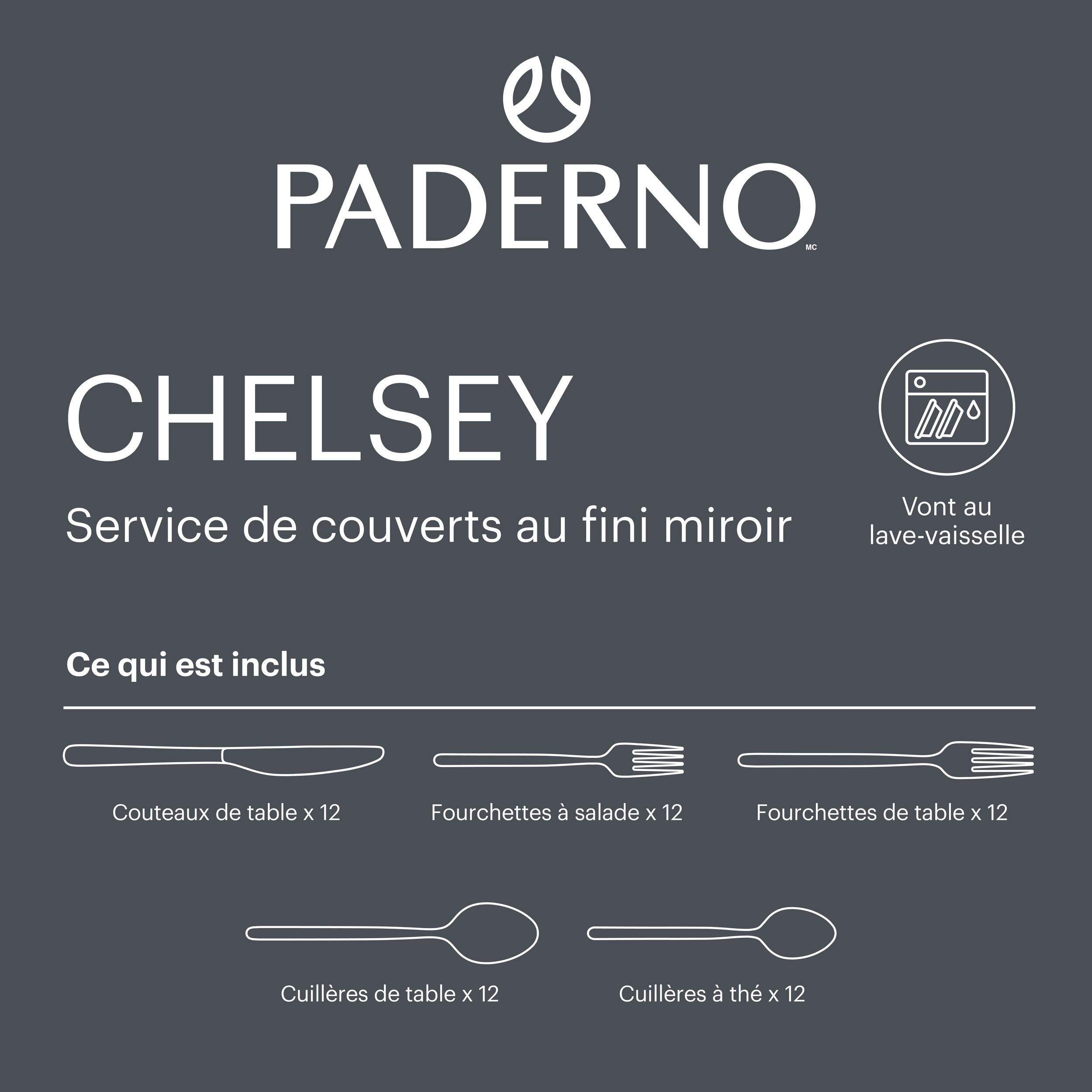 Rehaussez votre expérience culinaire avec le service de couverts à manche arrondi mince de PADERNO. Conçue pour jusqu'à 12 personnes, cette collection de 60 articles combine esthétique moderne et fonctionnalité exceptionnelle. Fabriqué à partir de matériaux de première qualité, il assure une durabilité accrue et un style sophistiqué pour toutes les occasions.