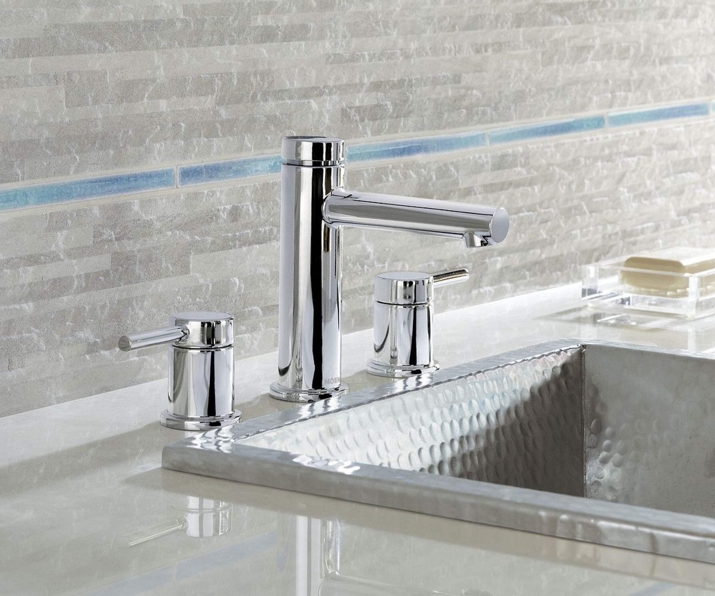 Robinet de lavabo évasé à 2 poignées Moen Align avec fini en nickel brossé au style métallique gris chaud légèrement brossé
