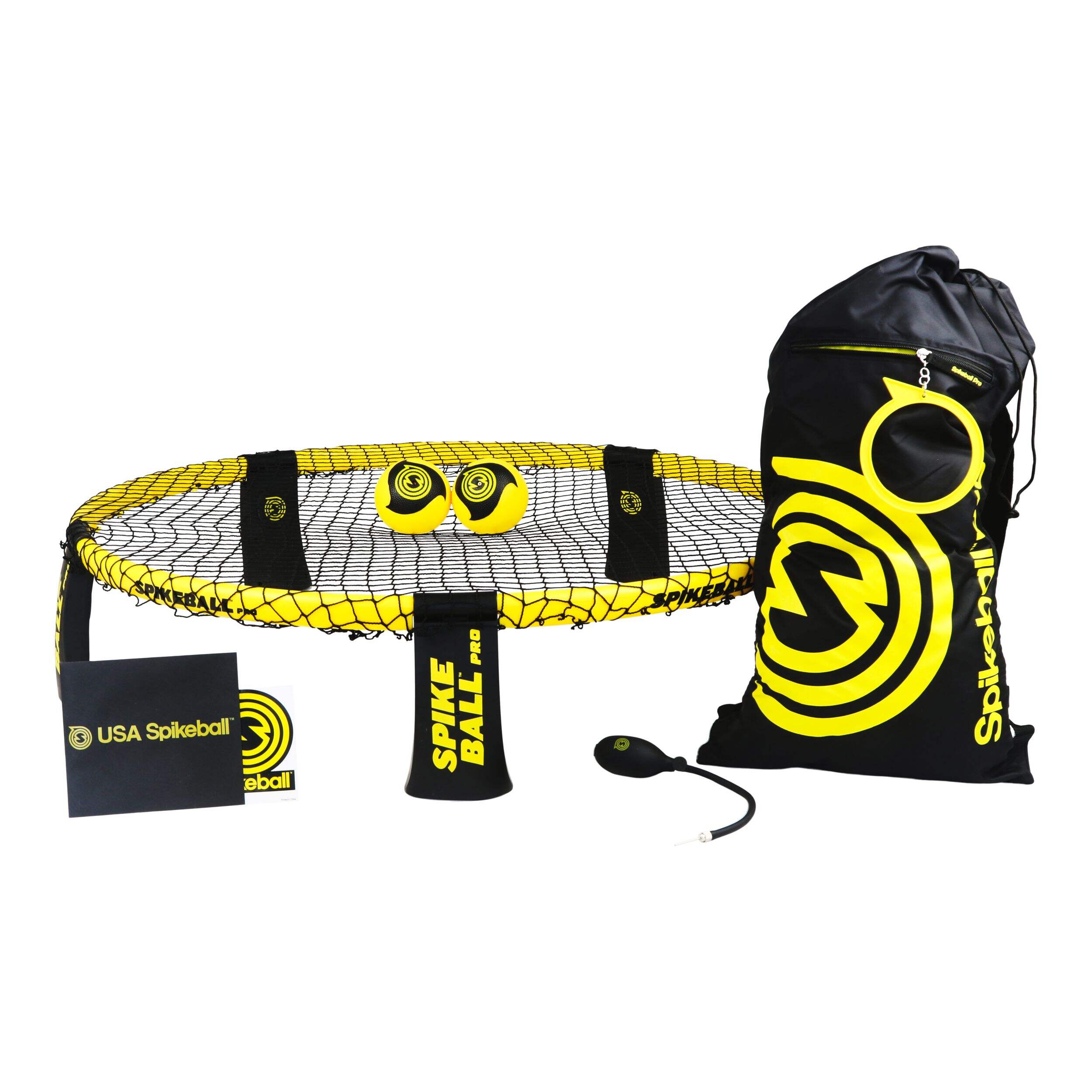 Profitez d'un jeu de balle rapide de Roundnet grâce à cet ensemble de jeu Spikeball Pro : que le plaisir commence. Cet ensemble officiel de tournoi de la série Spikeball Tour comprend tout ce dont vous avez besoin pour commencer à jouer : un filet avec des pattes télescopiques pour plus de résistance et faciliter le rangement, ainsi que des balles Proball alvéolées pour une meilleure prise et un meilleur contrôle. Amusant pour tous les âges, le jeu peut être joué sur n'importe quelle surface plane, à l'intérieur comme à l'extérieur, et il s'installe rapidement quand vous êtes prêt à jouer.