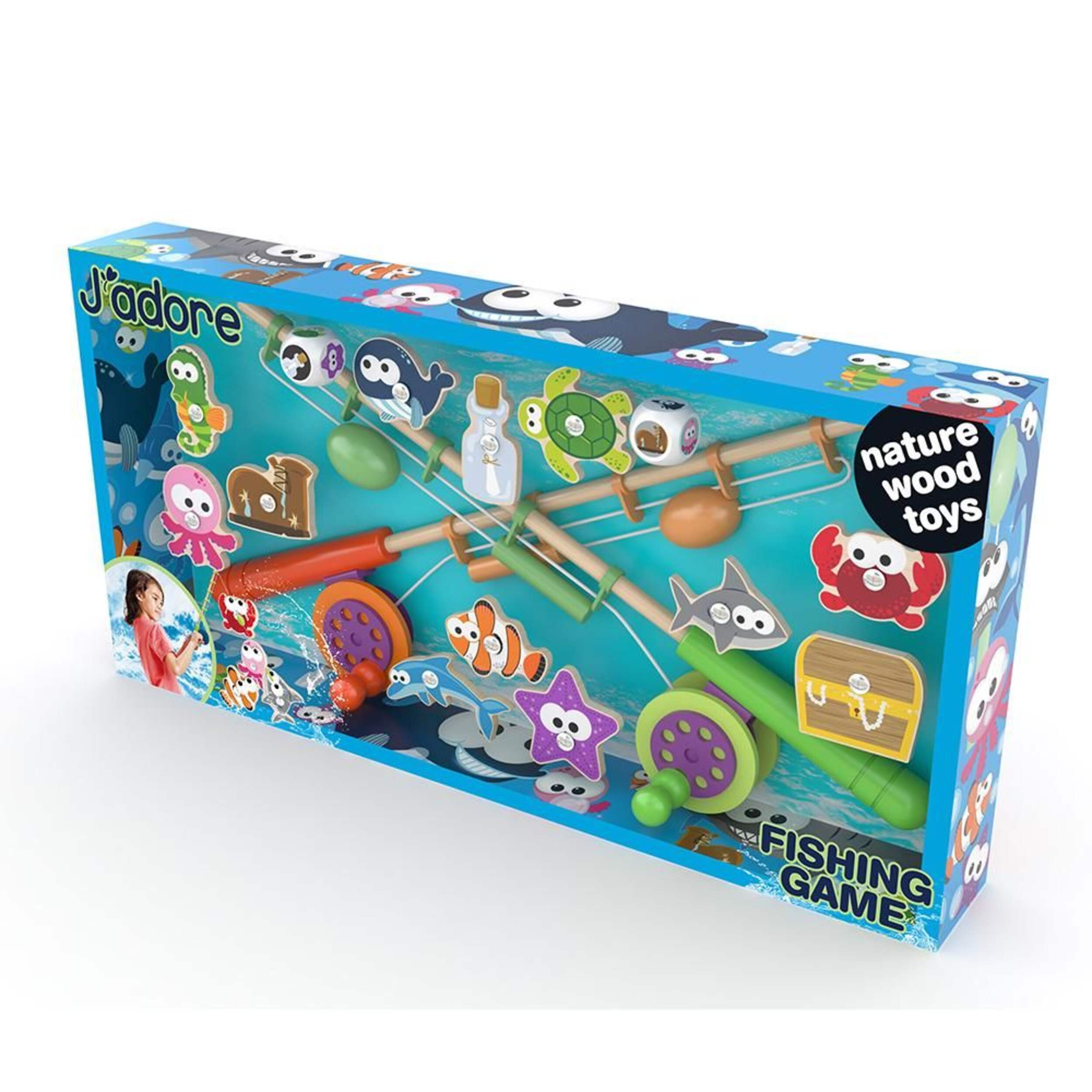 Amusez-vous pendant des heures avec l'ensemble de pêche J'Adore. À tour de rôle, utilisez un ensemble de cannes en bois pour pêcher 10 pièces magnétiques différentes, des créatures marines à une botte, selon un roulement de dé