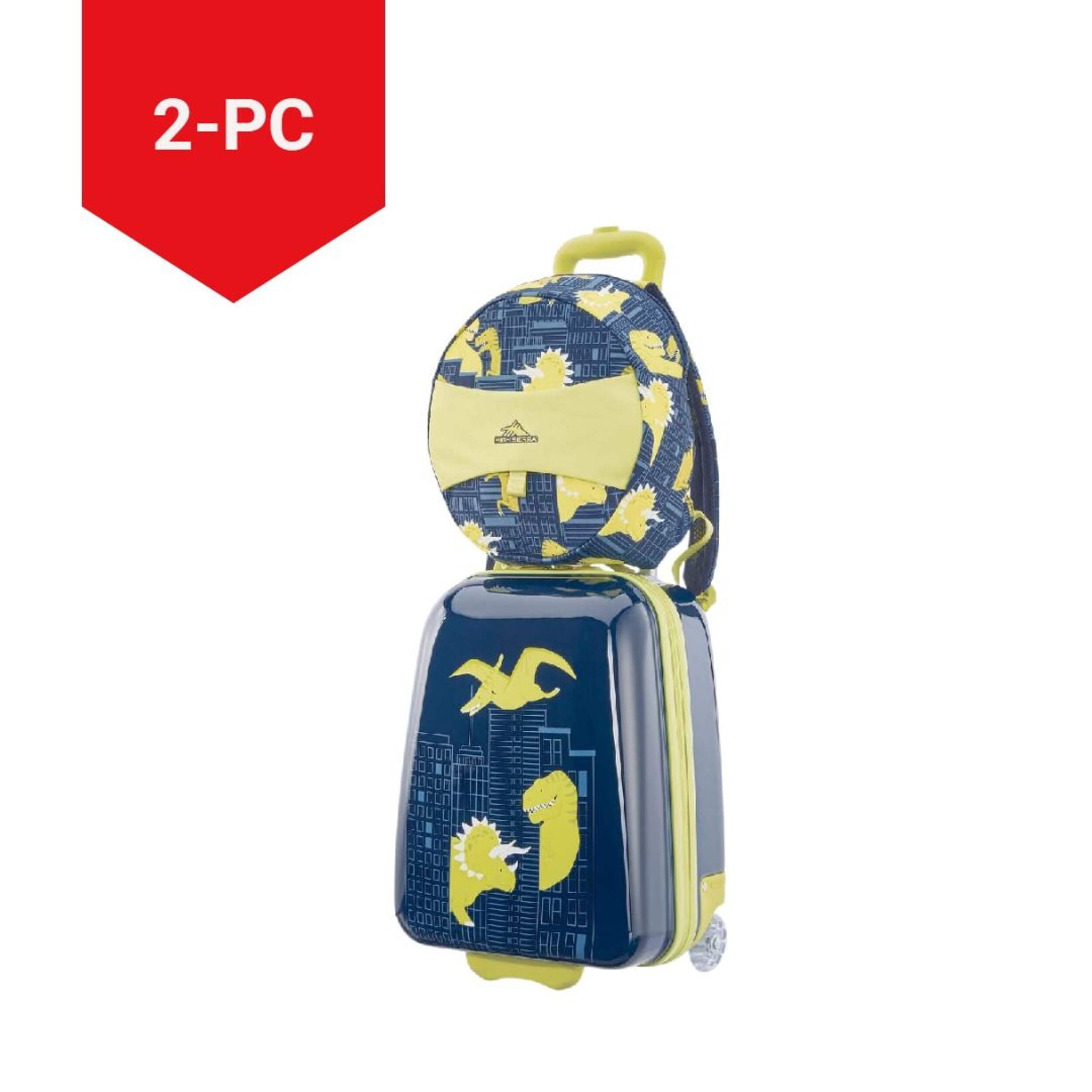 Ensemble de valises sur le thème des dinosaures de High Sierra qui aide les jeunes voyageurs à faire leurs bagages et à voyager facilement. Valise et sac à dos qui peuvent contenir tous les articles essentiels pour les voyages en voiture ou les aventures en avion. Extérieur robuste du sac à dos qui protège les effets personnels pendant vos déplacements et valise à roulettes qui facilite le transport des effets personnels à destination. Tout ce dont un jeune aventurier a besoin pour rester occupé sur la route est facilement accessible grâce à cet ensemble. Pochette avant permettant à un ami en peluche de ne jamais être oublié, alors prenez-le et partez pour la prochaine aventure familiale avec l'ensemble de valises pour jeune voyageur de High Sierra.