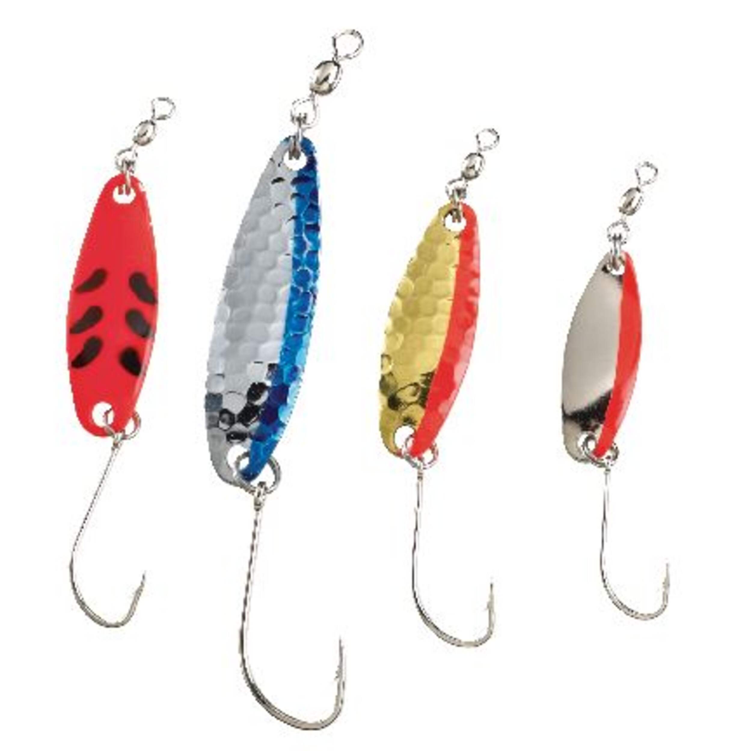 Cette trousse de la marque Gibbs comprend 4 Crocs de couleurs différentes avec des émerillons à roulement à billes, des anneaux fendus et des hameçons.