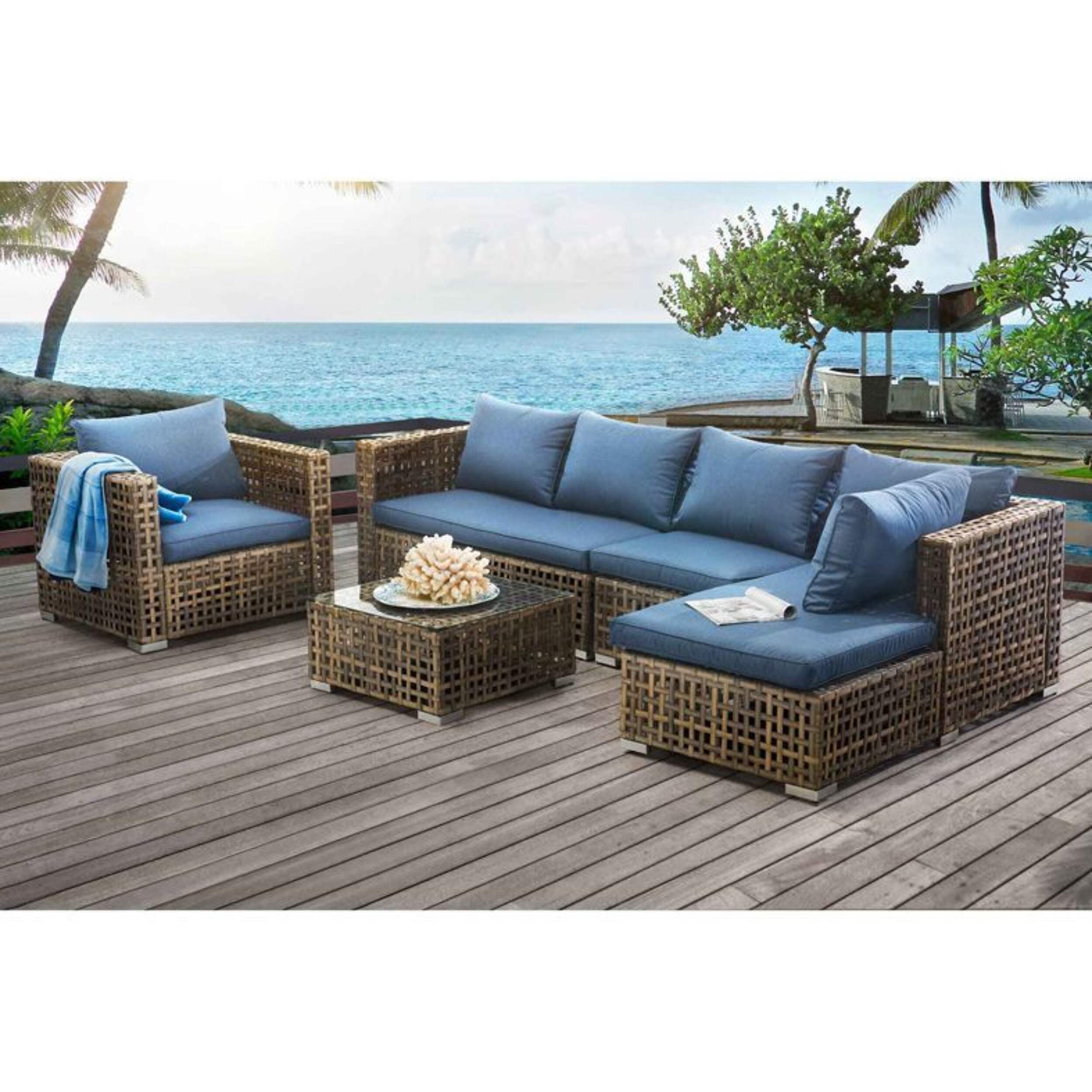 Contenu de l'ensemble : Fauteuil sans accoudoirs, chaise longue, fauteuil club, sofa à 2 places et table basse