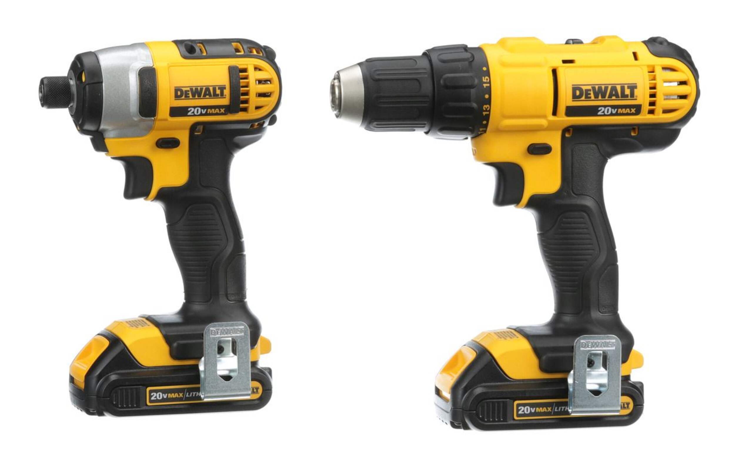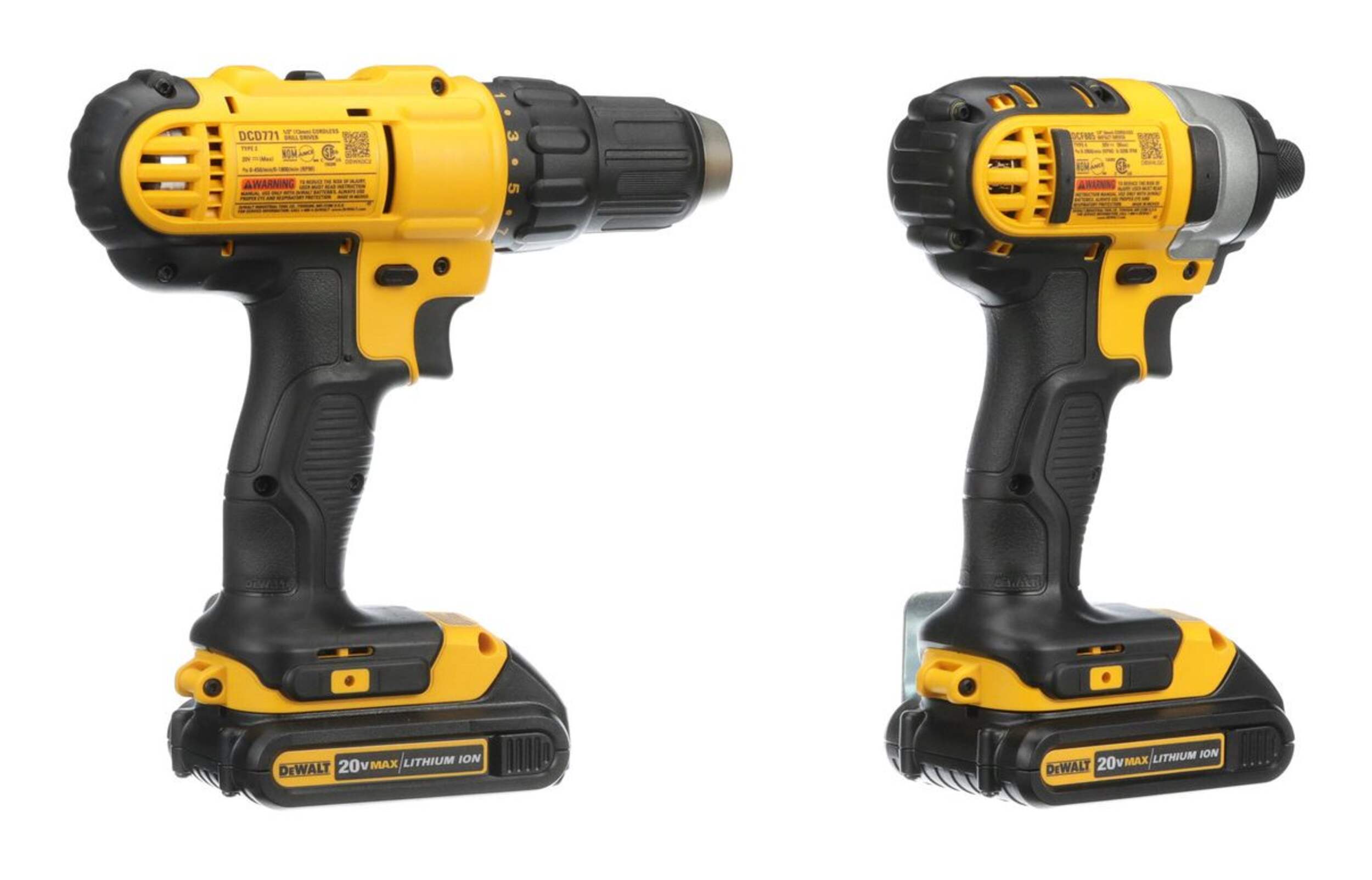 Comprend : perceuse sans fil (DCD771), tournevis à percussion sans fil (DCF885), 2 batteries 1,3 Ah, chargeur et étui souple