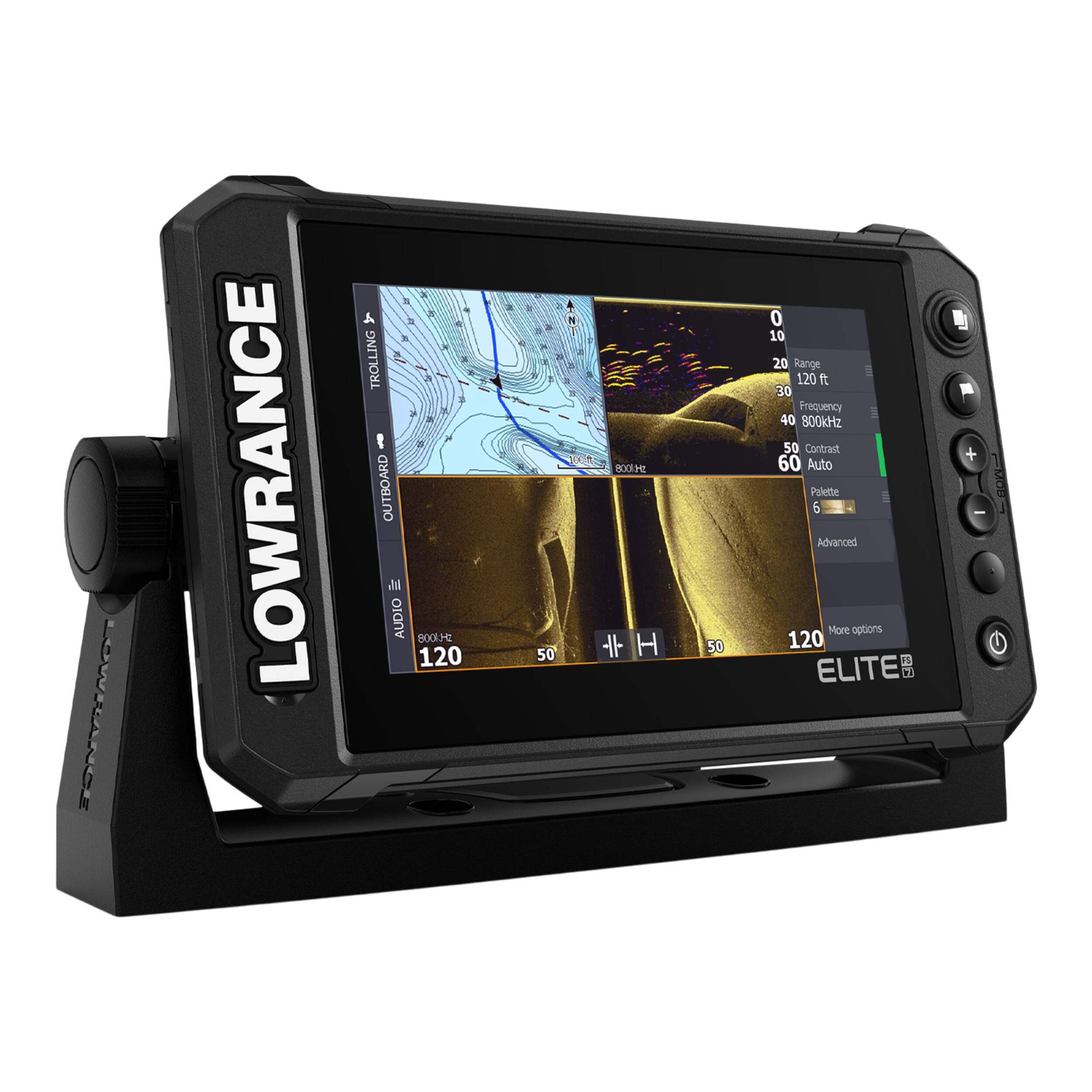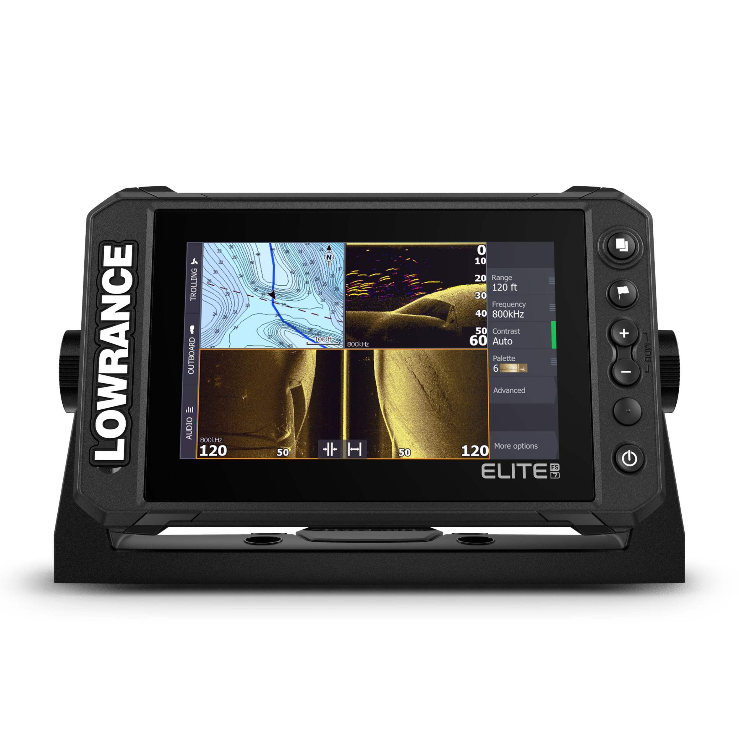 Le nouveau système de pêche EliteMC (FS) vous donne accès à la gamme complète d'outils de recherche de poissons Lowrance, avec le sonar actif ActiveTargetMC Live, Active ImagingMC et les graphiques C-MAPMD ContourMC+ préinstallés pour vous aider à profiter au maximum de votre temps sur l'eau.