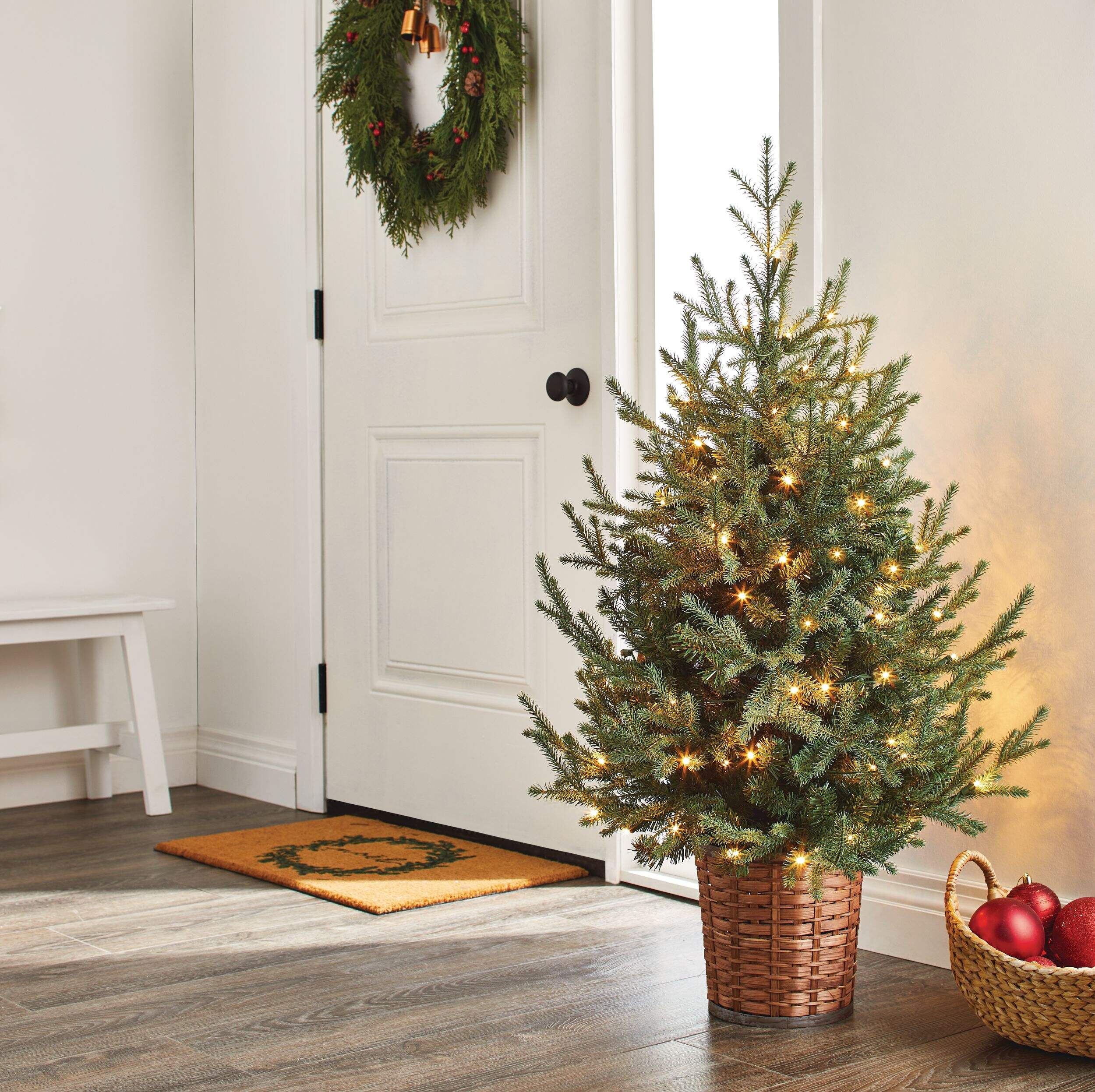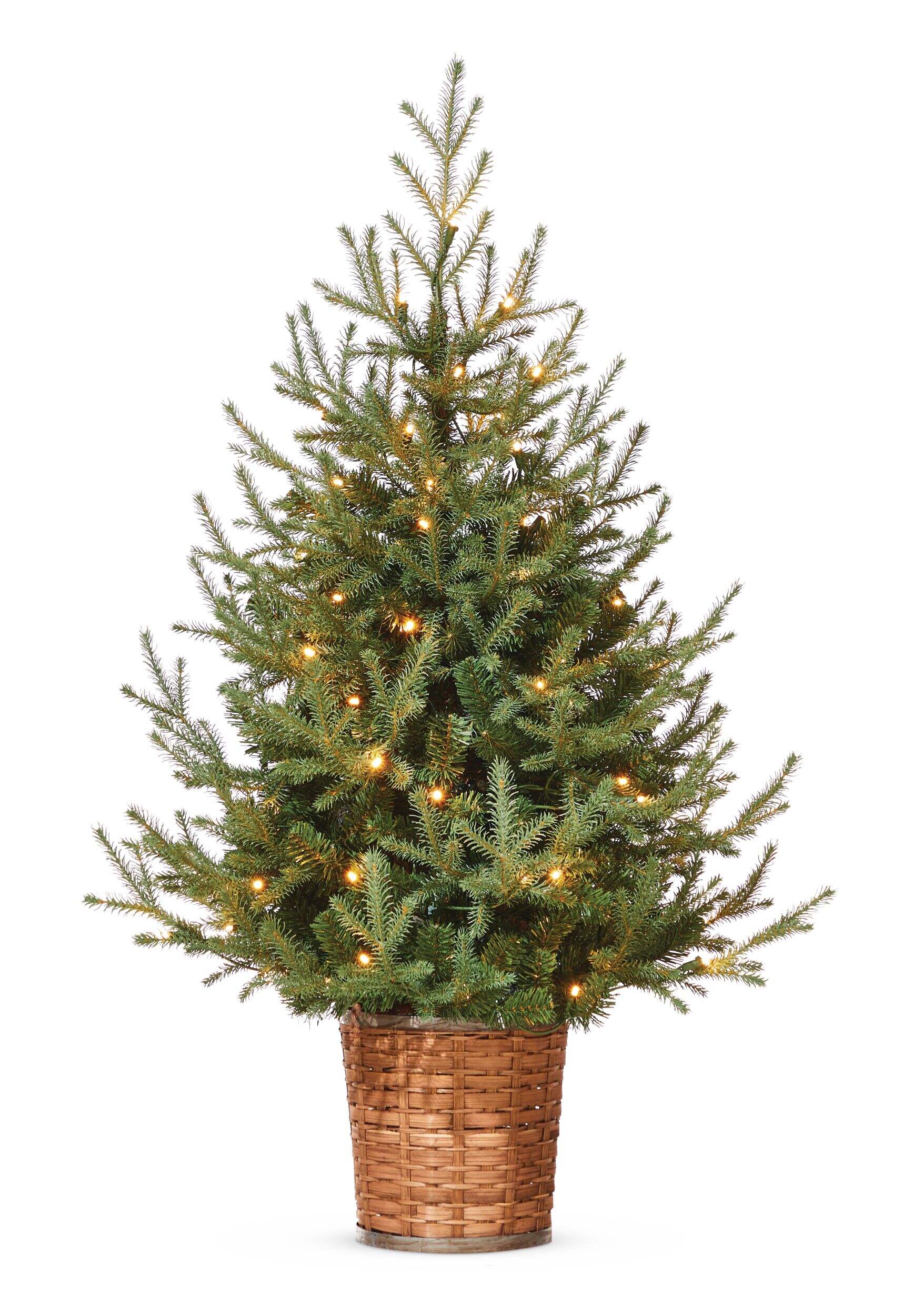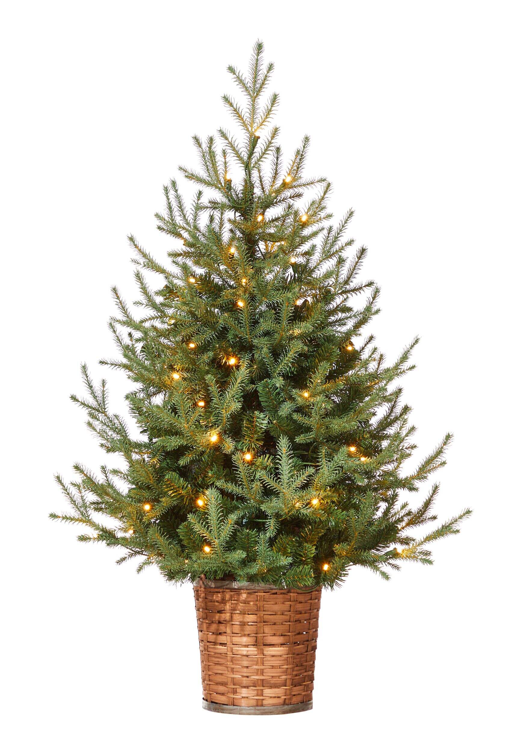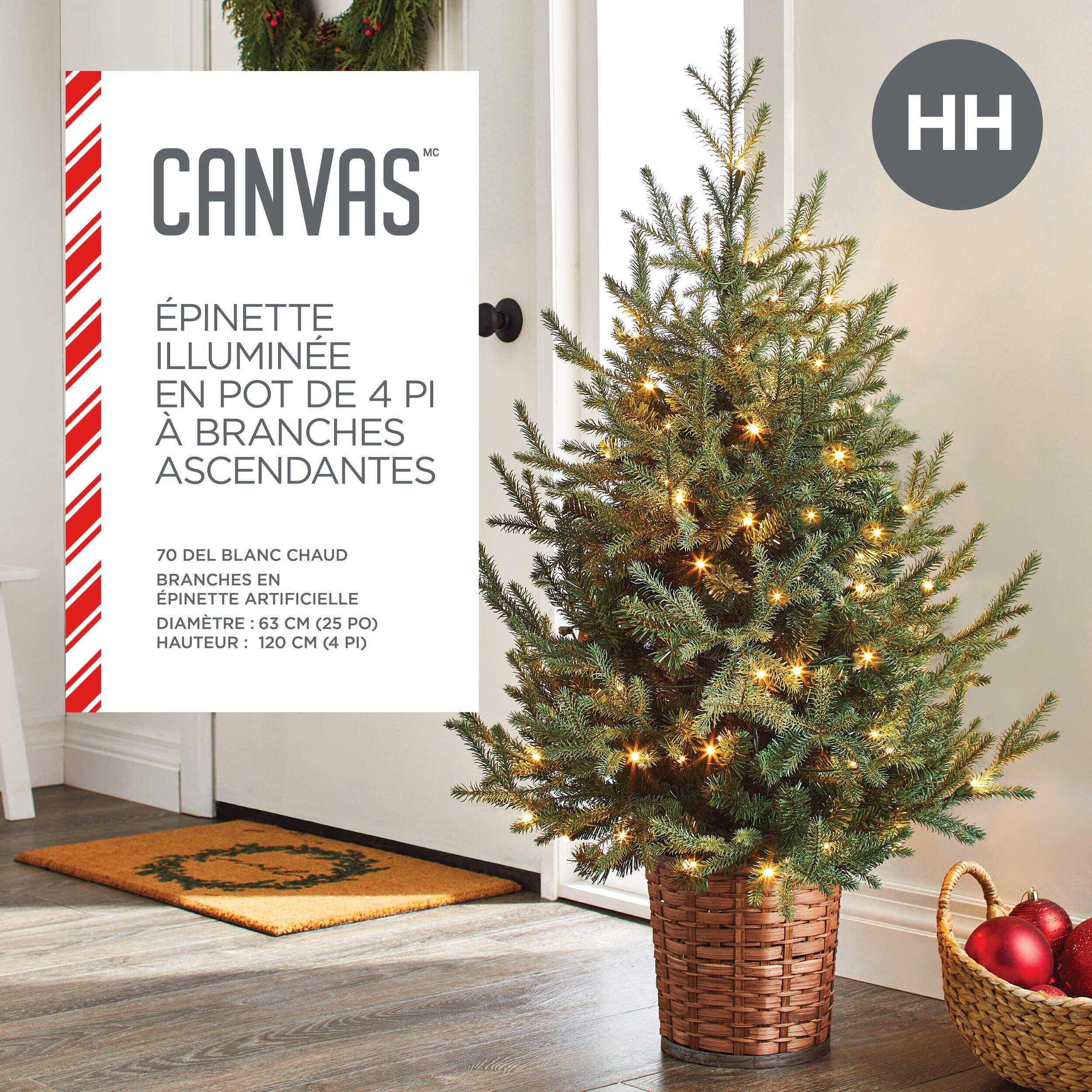 Épinette illuminée à branches ascendantes en panier CANVAS qui est un arbre illuminé dans un pot