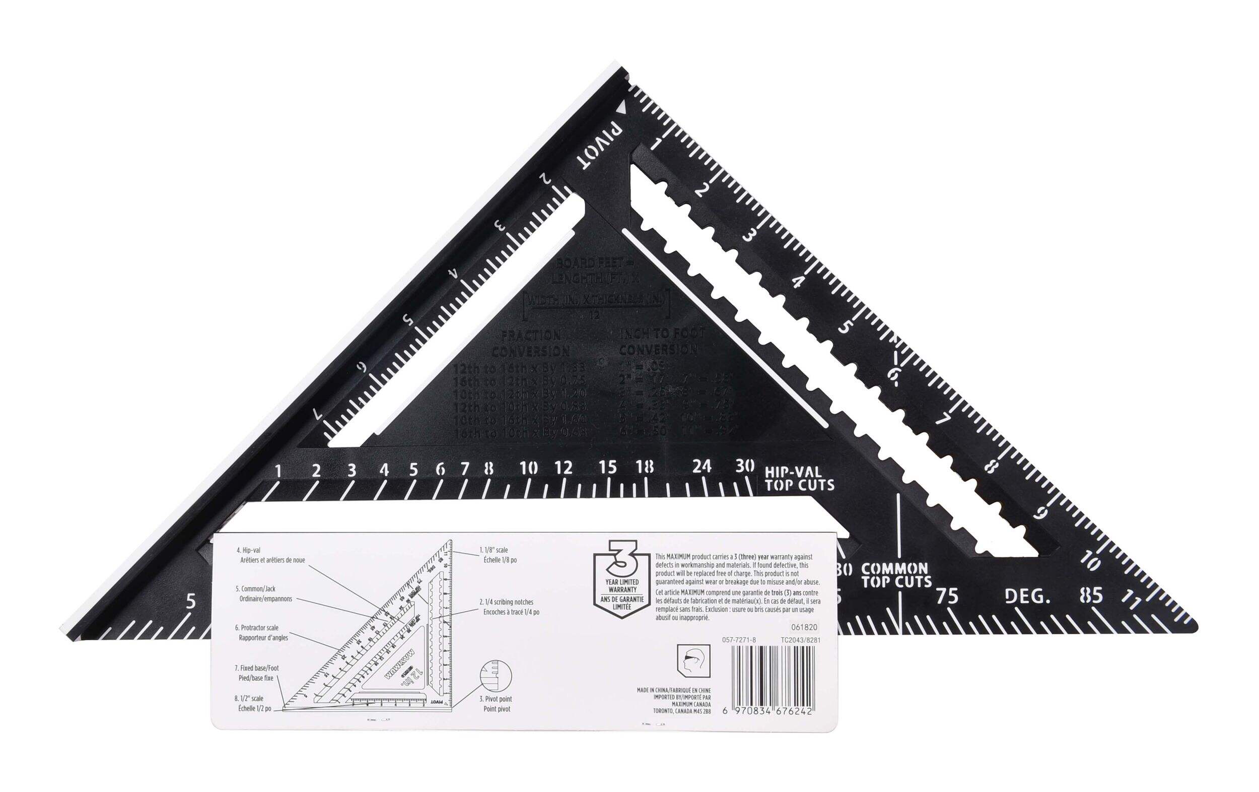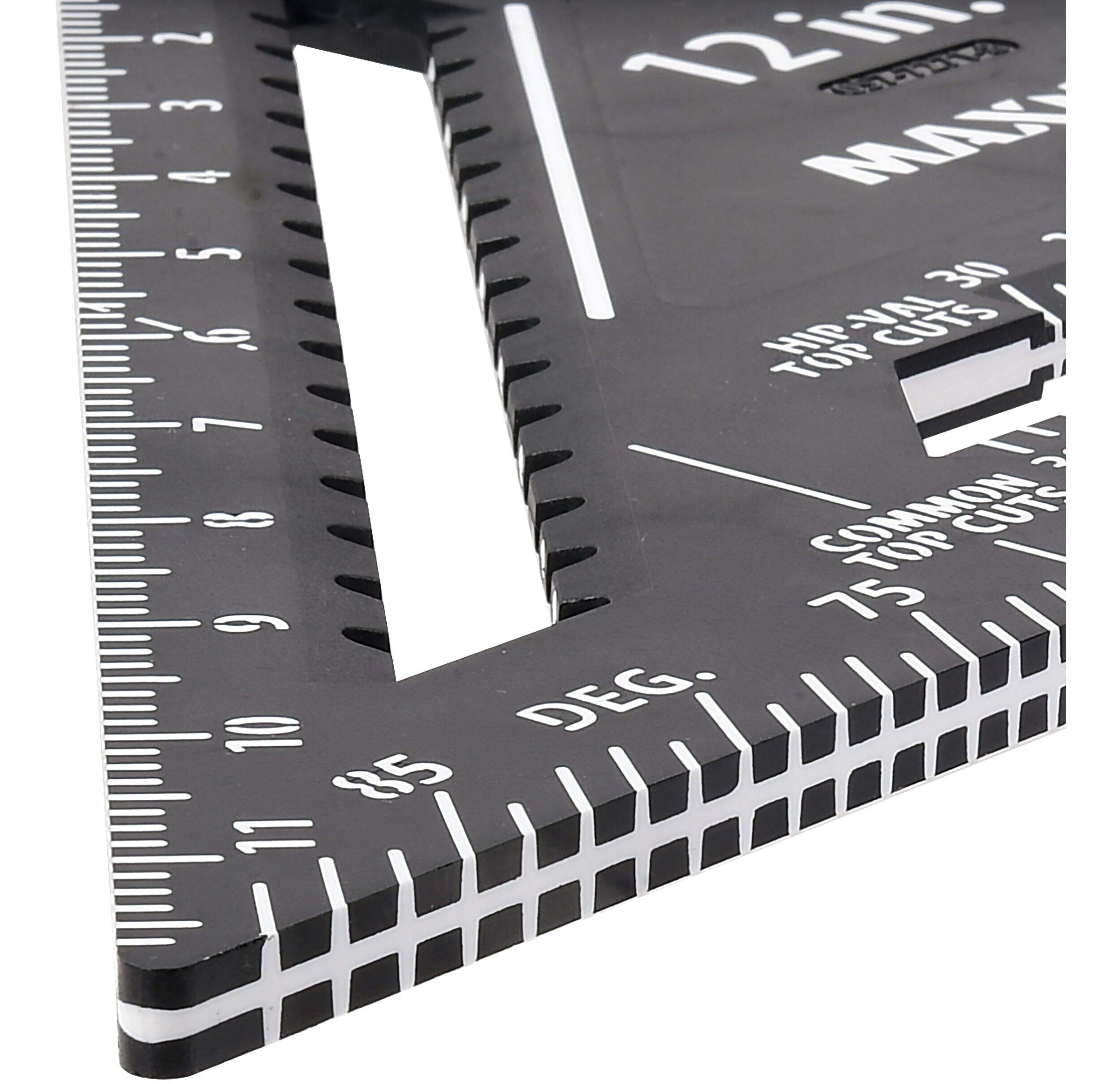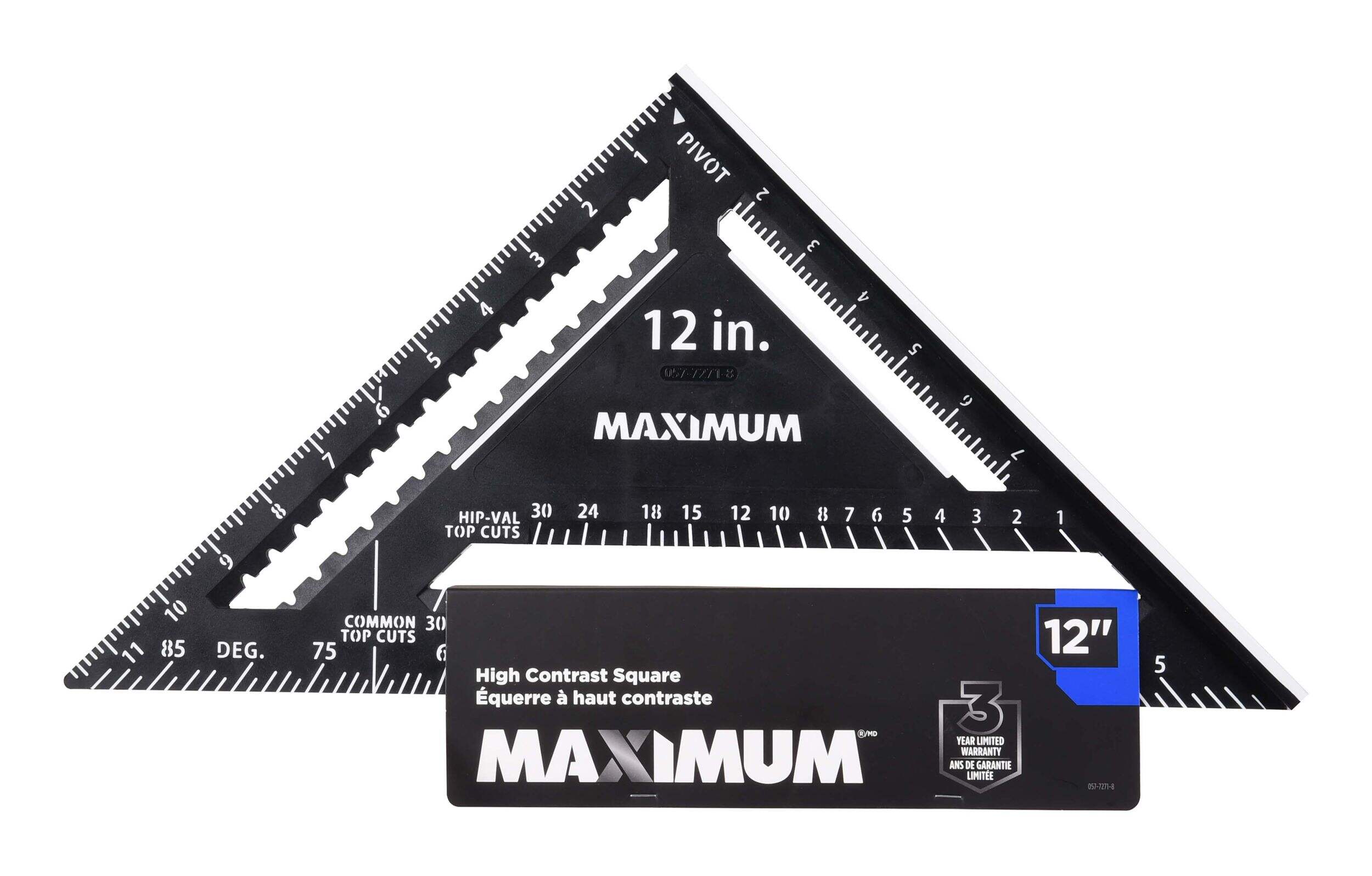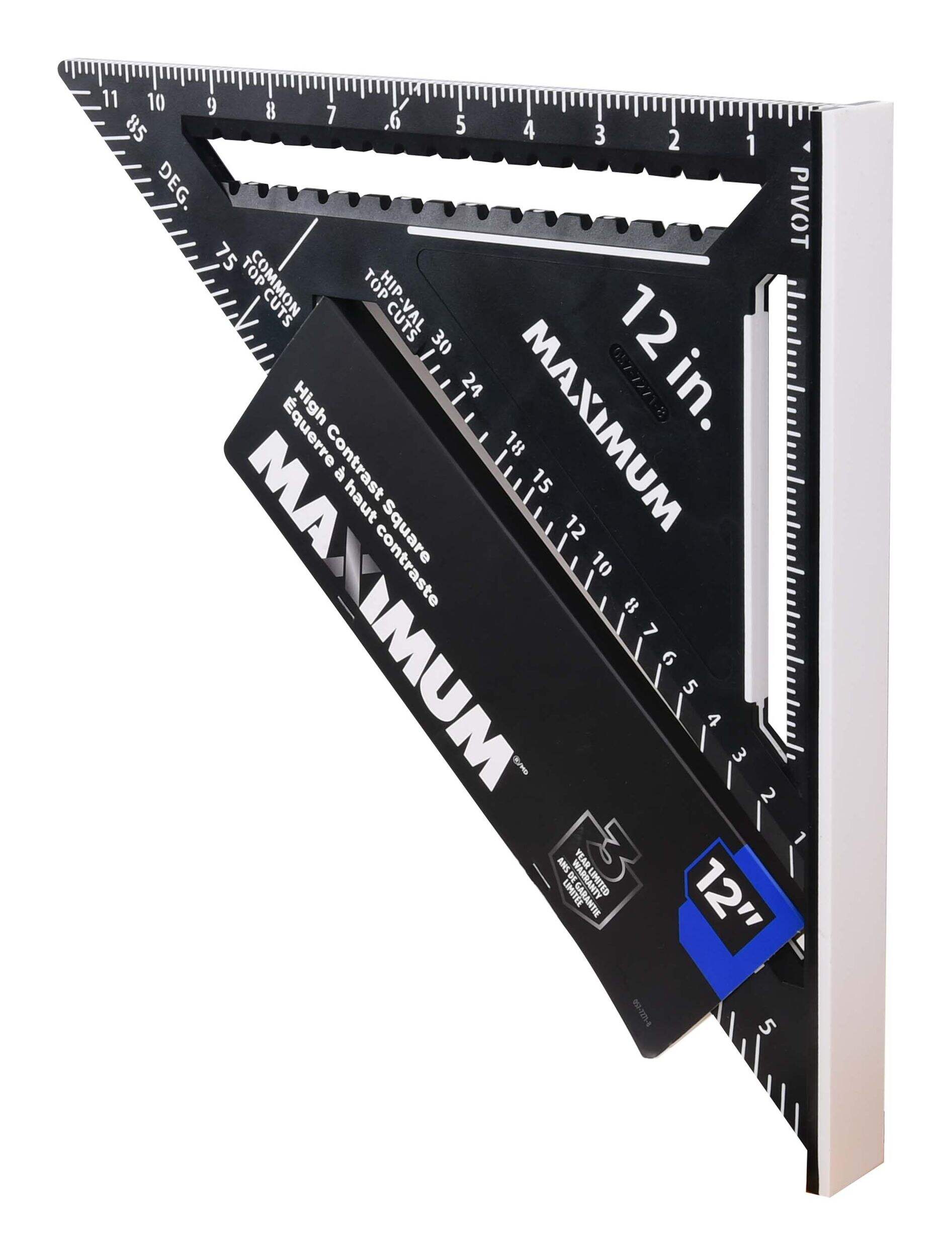 L'équerre à contraste élevé MAXIMUM de 12 po est conçue avec un boîtier rigide en plastique ABS avec des bords biseautés qui la rendent beaucoup plus facile à lire dans des conditions difficiles. L'équerre de charpentier MAXIMUM est conçue pour les tâches de service intense, mais qui constitue aussi un excellent choix pour la mesure tout usage. Idéale comme guide de scie, cette équerre de charpentier permet de localiser facilement la ligne centrale de votre matériau avant de vous engager dans une coupe.