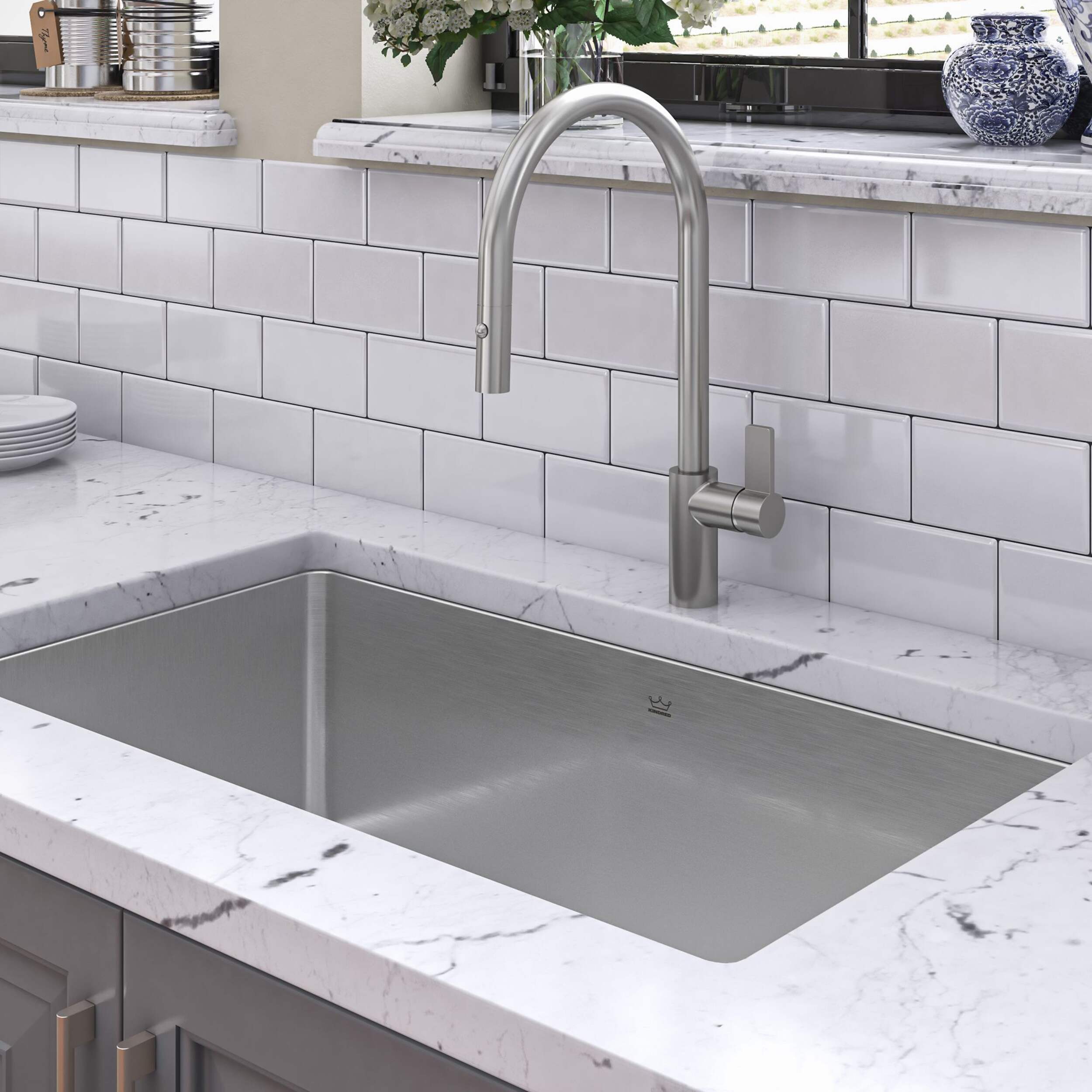 Évier de cuisine à déchet décalé simple à installation sous comptoir en acier inoxydable Kindred Brookmore qui est un mélange parfait de style et de fonctionnalité
