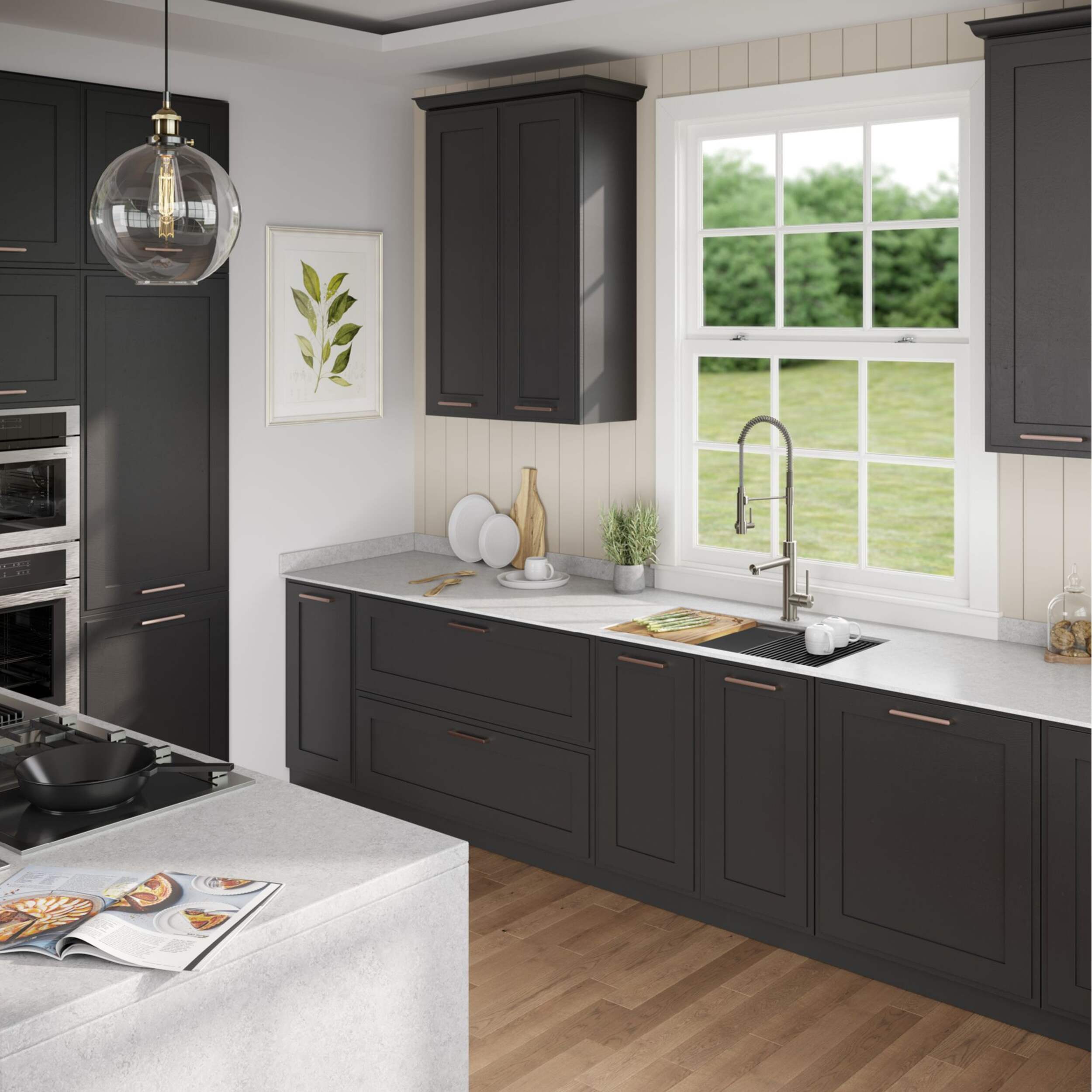 L'installation sous le plan de travail permet une transition fluide de l'évier au plan de travail et facilite l'essuyage de l'eau et des miettes directement dans l'évier