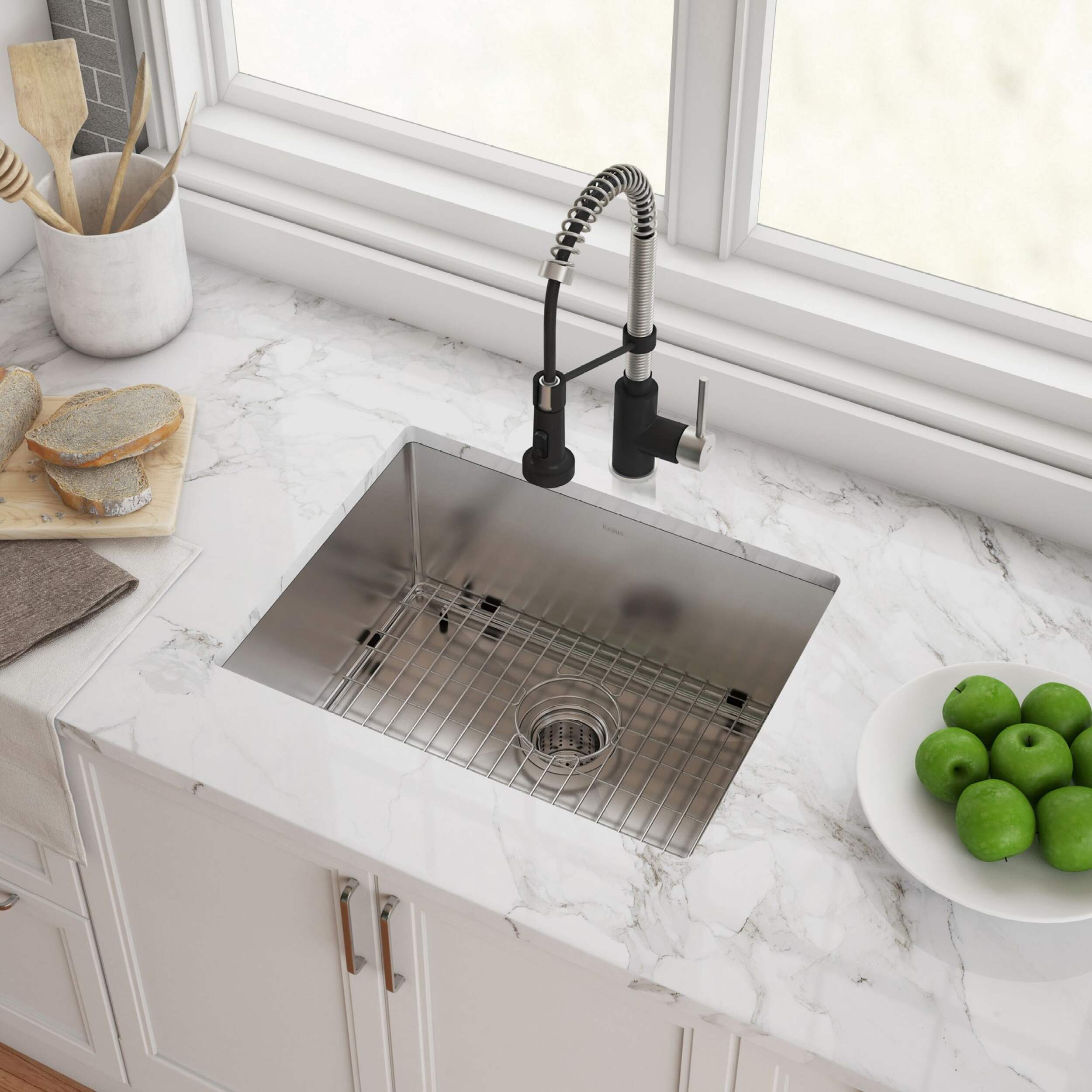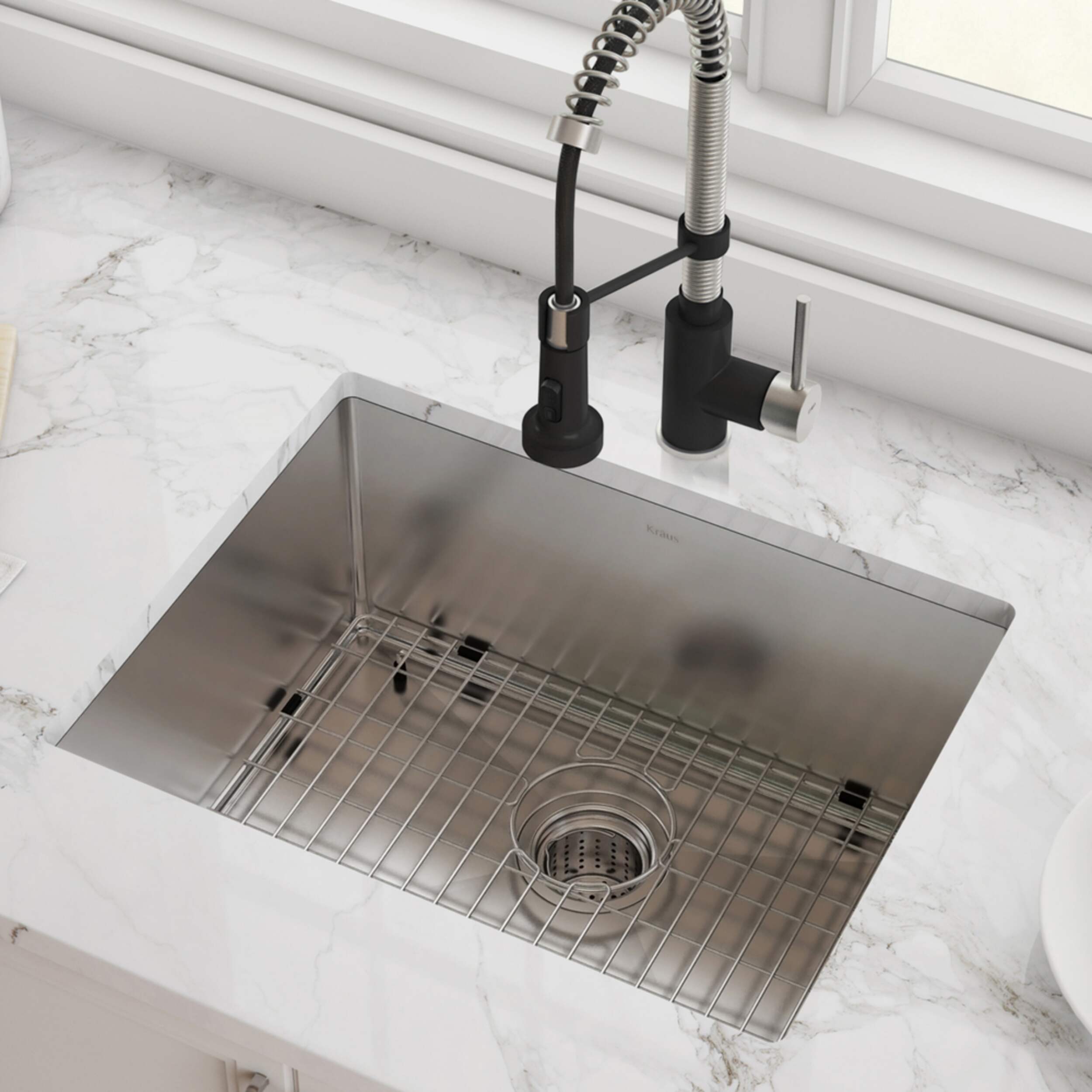 Évier unique Kraus Standart PROMC en acier inoxydable qui est durable, résistant aux chocs et facile à nettoyer