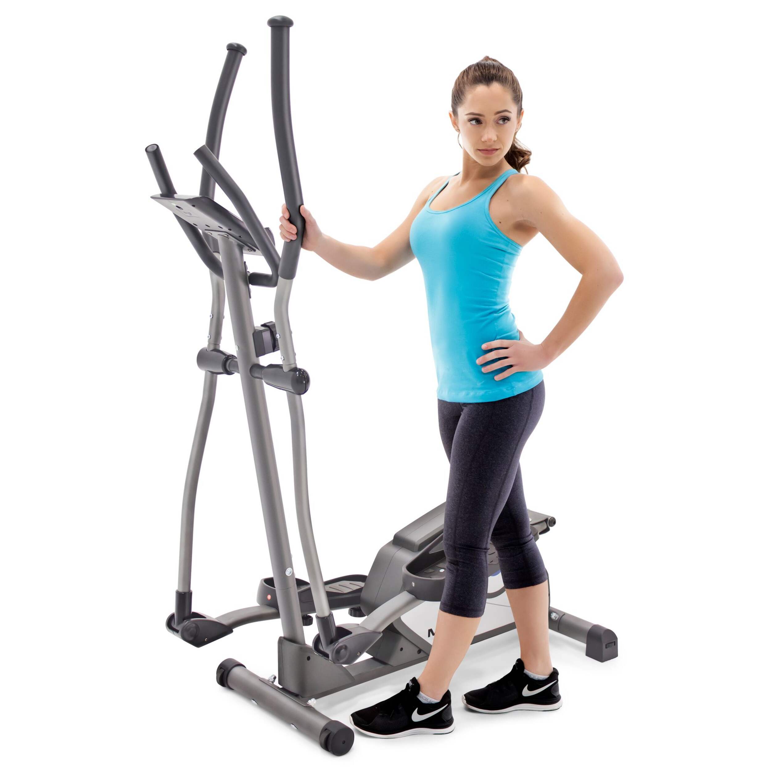 Exerciseur elliptique Marcy NS-40501E doté d'un panneau d'affichage qui affiche la durée, la vitesse, la distance, les calories brûlées, l'odomètre et le balayage pour que vous puissiez suivre vos progrès pendant que vous vous entraînez
