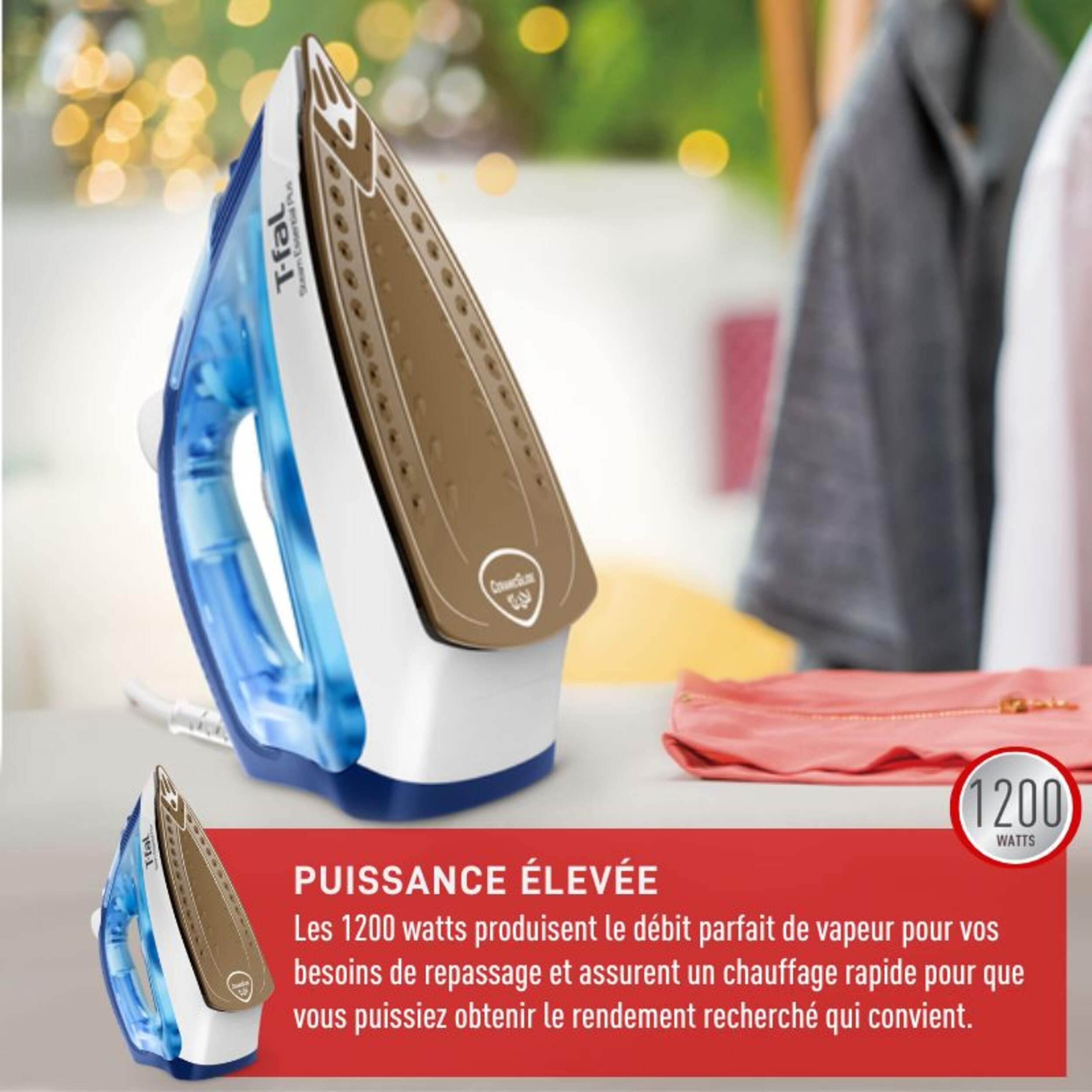 | Fonctionnalités avancées | Fonction de surcroît de vapeur, Vapeur verticale, Contrôle de température réglable, Modèle compact, Léger, Antiadhésif, Autonettoyant |