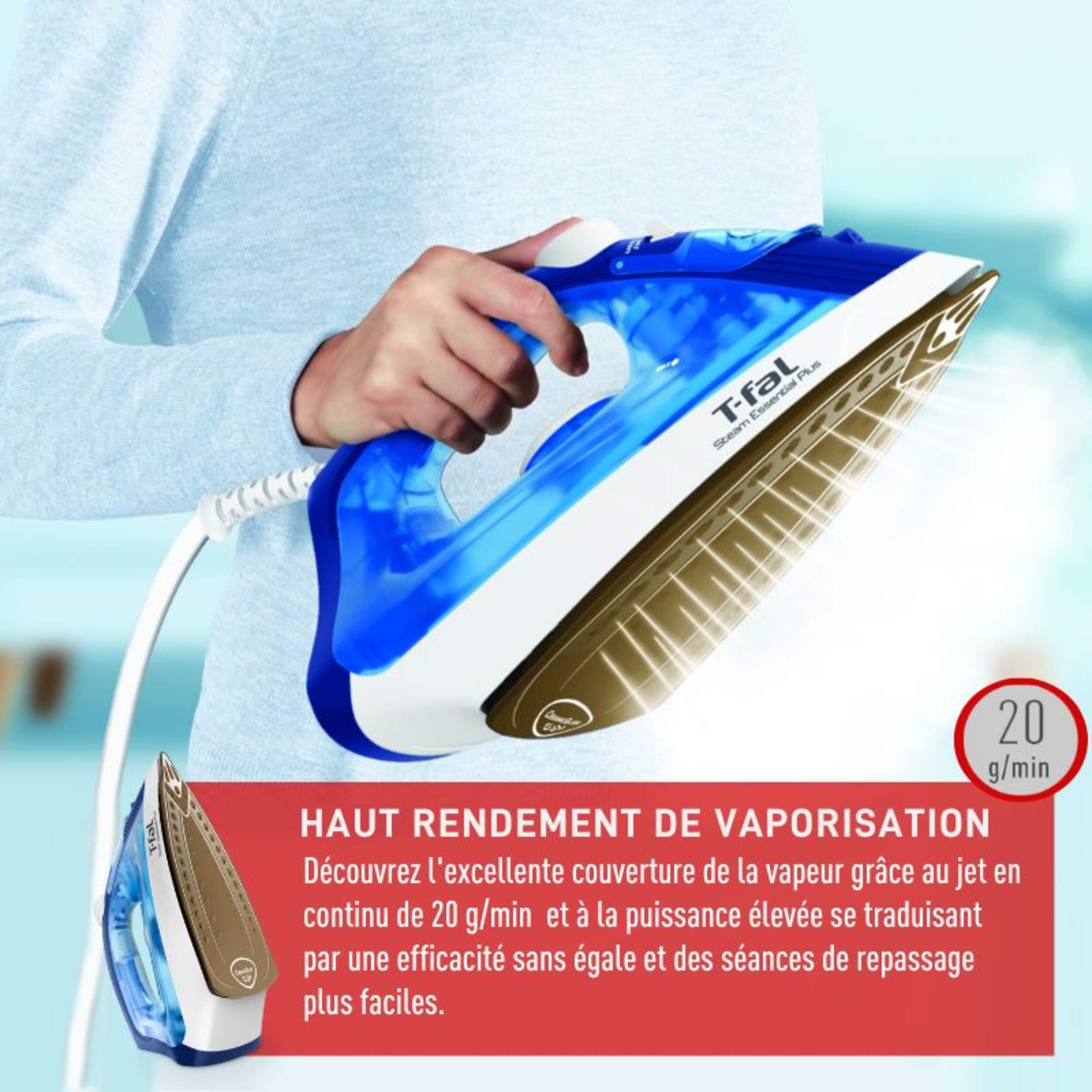 Le fer à repasser à vapeur Steam Essential plus de T-fal a été conçu pour des résultats de repassage parfaits, jour après jour. Ce fer à vapeur haute performance est doté d'une puissance de 1200 W pour un chauffage rapide, d'un grand réservoir d'eau de 220 mL, idéal pour le repassage par lots et d'un puissant jet de vapeur de 100 g/min pour les plis tenaces. Son système anticalcaire unique permet un entretien sans tracas et un nettoyage sans effort pour une performance durable. Ce fer est l'équilibre parfait entre confort et efficacité et est un élément essentiel de votre salle de lavage!