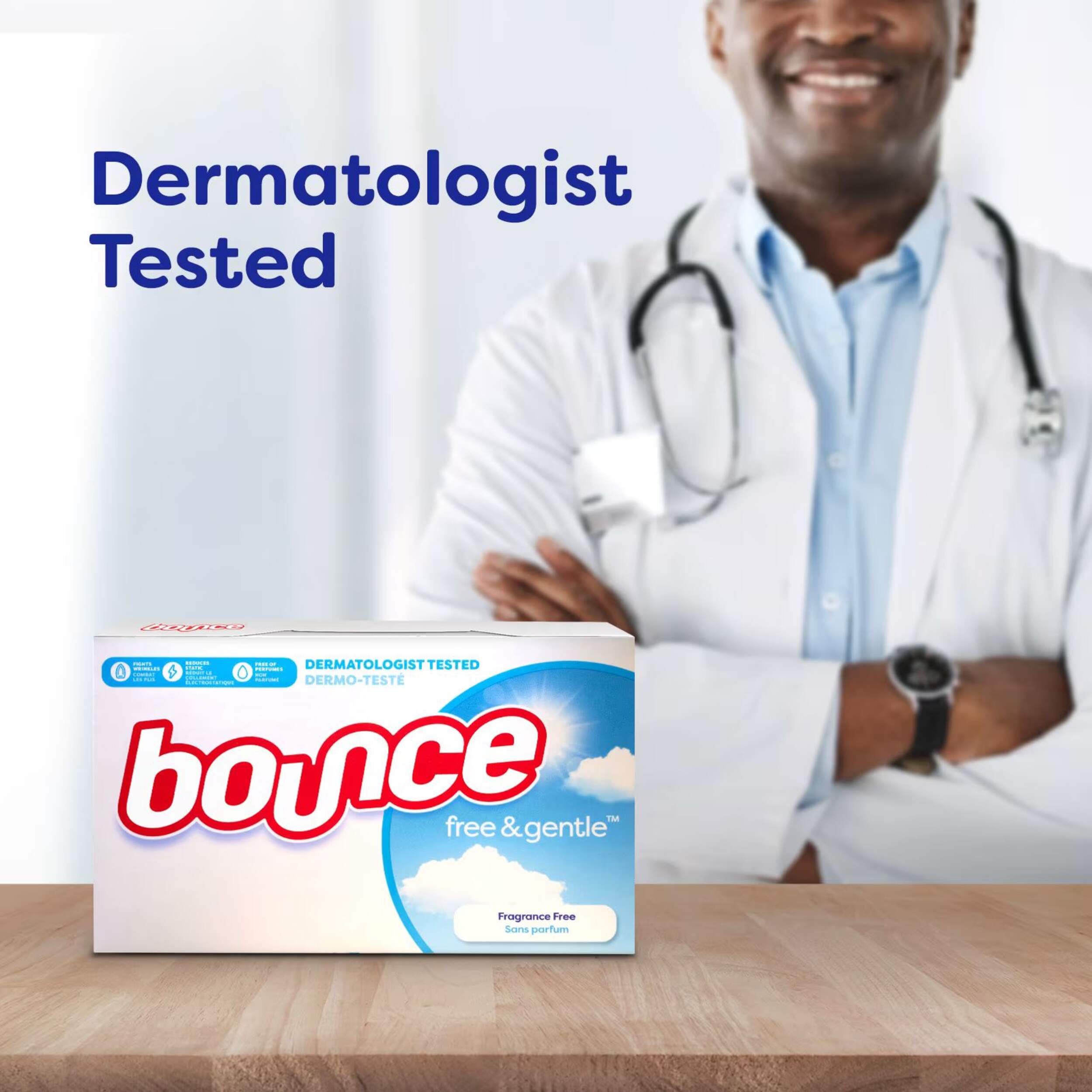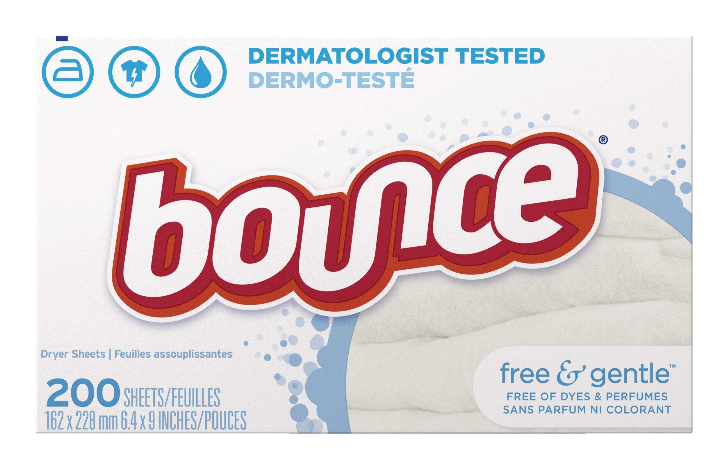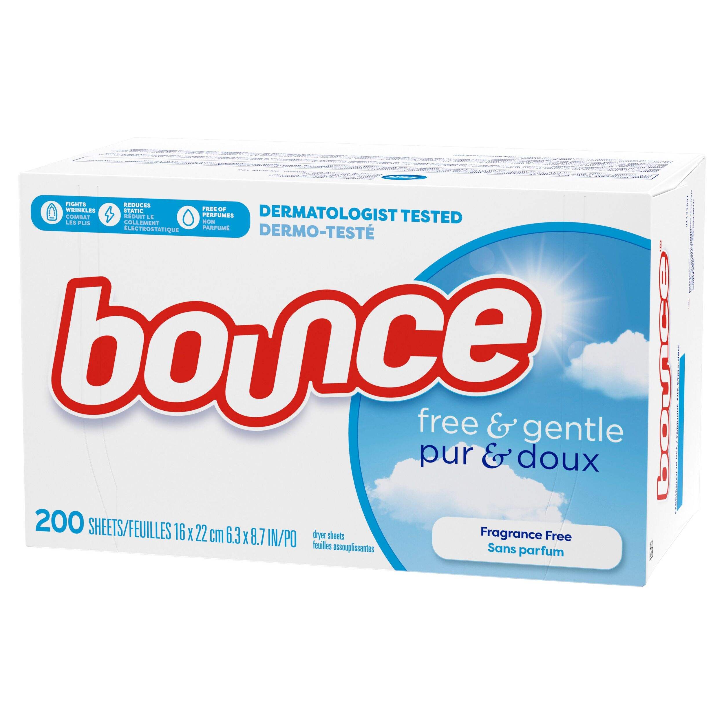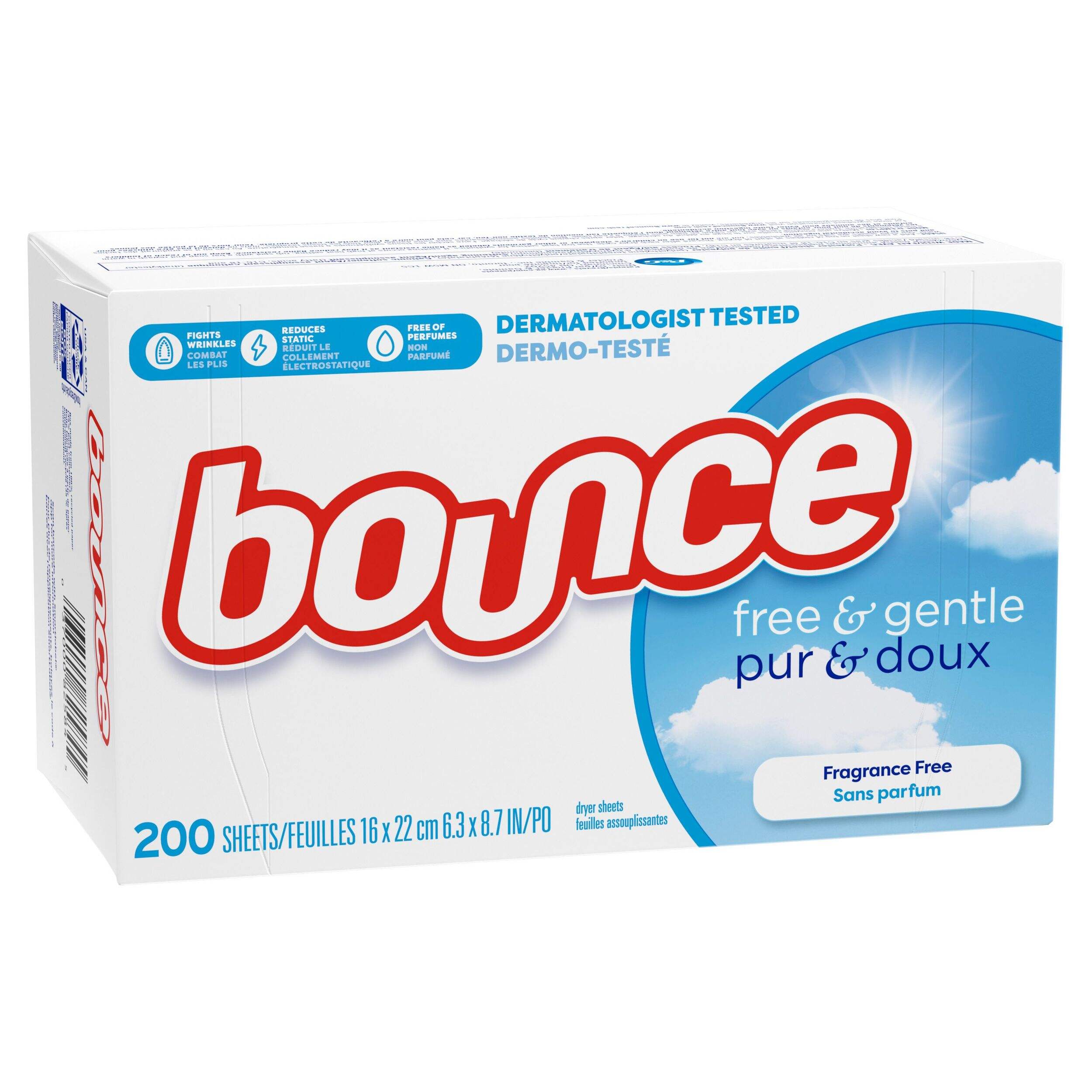 Les feuilles assouplissantes Bounce Free and Gentle sont testées par des dermatologues pour être hypoallergéniques et douces pour la peau sensible. Ces feuilles sont formulées pour être sans parfum et douces pour la peau, mais efficaces contre l'électricité statique et les plis.
