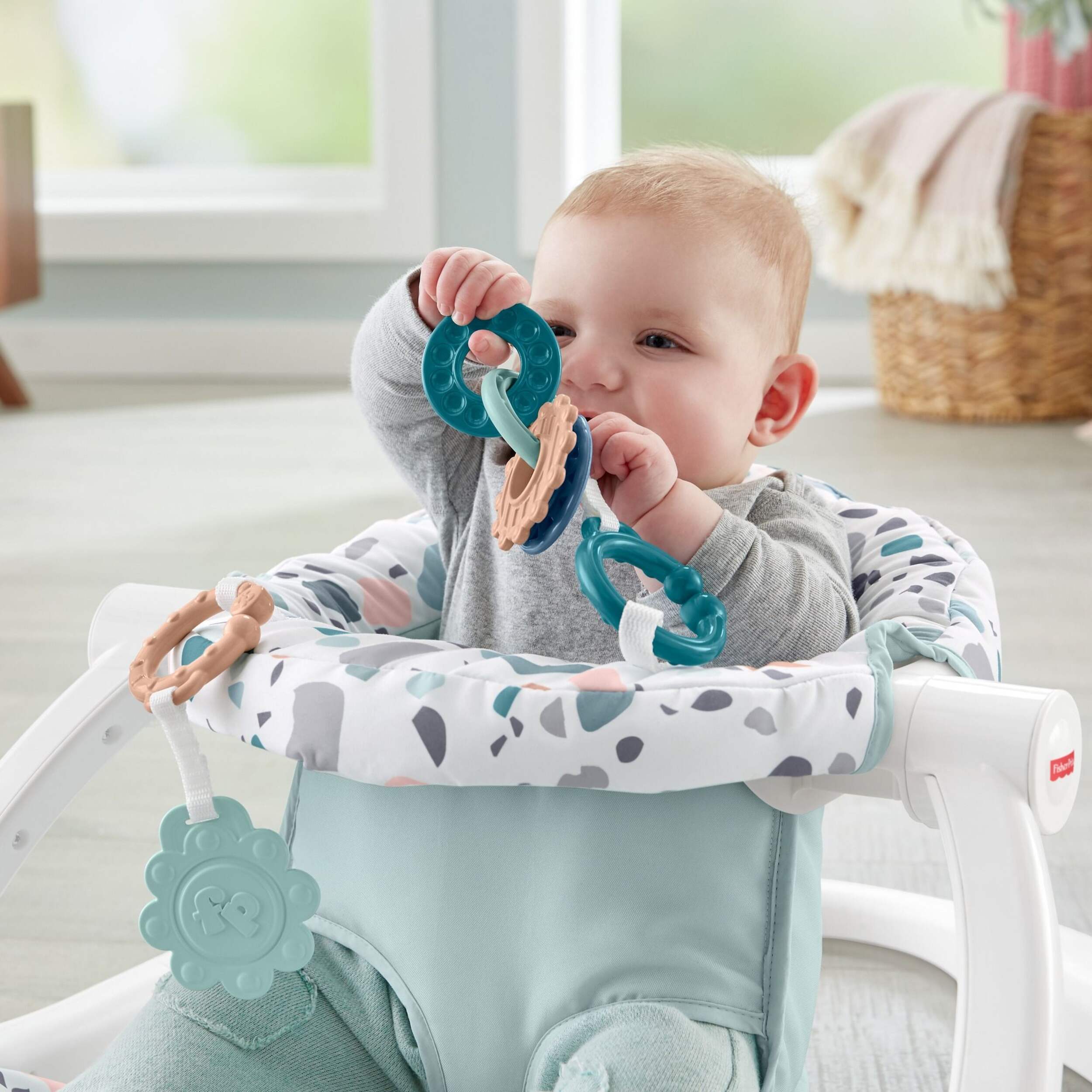 Siège de sol Fisher-Price MD Sit-Me-Up confortable pour votre bébé et très pratique pour vous. Chaise pour bébé en tissus doux et doté d'une base large aidant à soutenir votre bébé pendant que vous l'assoyez pour interagir avec le monde qui l'entoure (et avec ces deux adorables jouets!). Et le meilleur dans tout ça? Il se replie à plat, ce qui facilite le rangement et le transport pendant vos déplacements! Où le développement entre en jeu MC . Sécurité et bonheur : Siège vertical de soutien confortable sur une base large et solide permettant à votre bébé de voir et d'interagir avec son environnement (et vous!). Motricité : Atteindre les jouets et les tirer pour jouer pour favoriser le développement de la motricité globale. À utiliser uniquement avec un enfant qui est capable de se tenir la tête droite sans aide et qui n'est pas en mesure de s'échapper ou de marcher.
