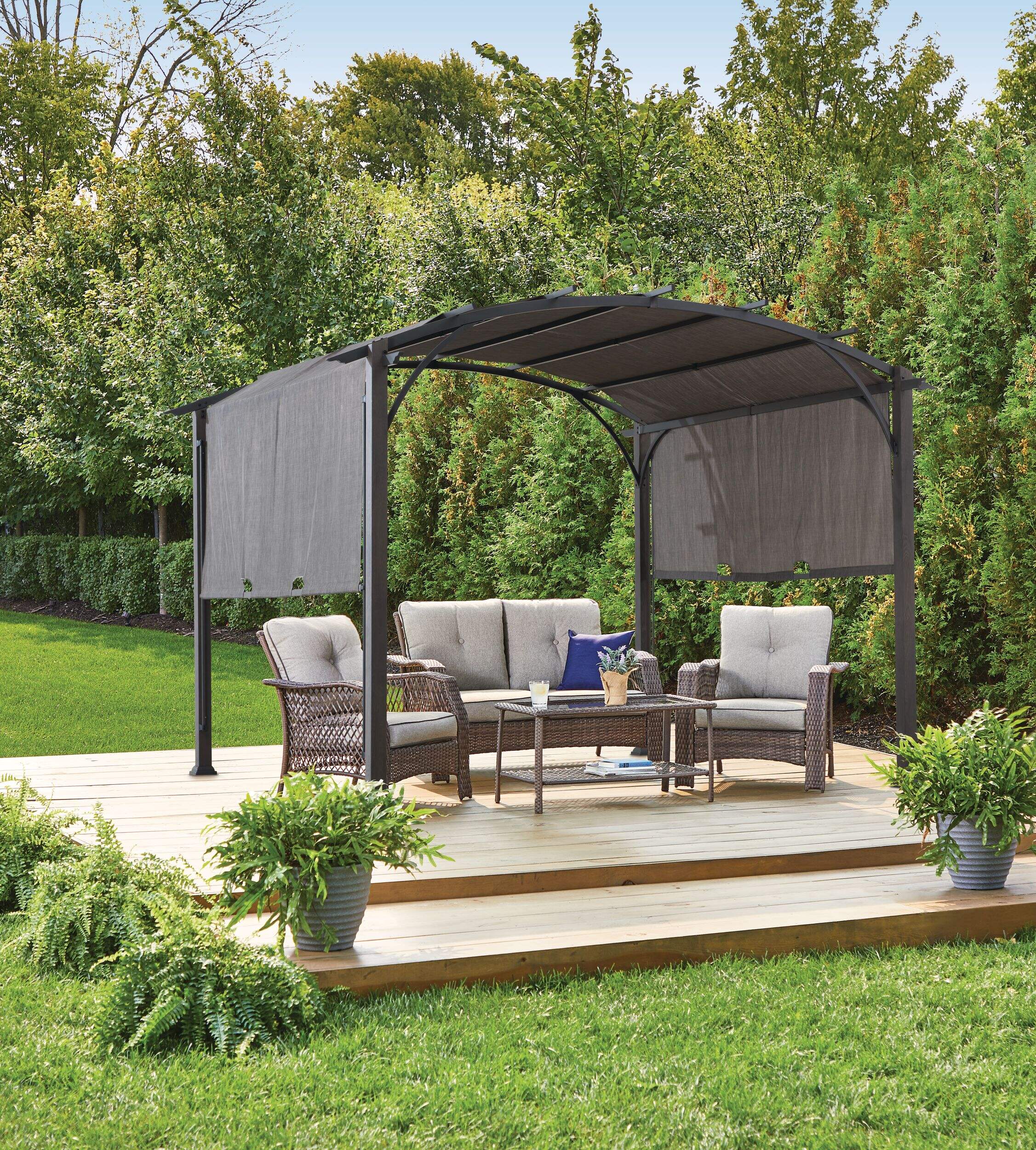 Ajoutez un abri élégant à votre environnement extérieur avec cette pergola carrée For Living Cambrian avec pare-soleil réglable. Il s'agit d'un moyen élégant et fonctionnel de fournir de l'ombre et de l'abri pour les grillades et les repas, pour les conversations ou comme endroit où les enfants peuvent jouer du soleil. Pergola carrée brune dotée d'un toit légèrement courbé soutenu par des poteaux au fini similibois et des poutres au fini noir mat pour une allure contemporaine, mais naturelle qui s'harmonise bien à n'importe quel environnement extérieur. Pergola en aluminium à volets réglables également dotée de pare-soleils à sangle qui peuvent être ajustés d'un côté à l'autre pour bloquer le soleil lorsqu'il change de position. Pergola de jardin en acier robuste au fini antirouille peint par poudrage pour aider à résister aux intempéries, nécessite un assemblage et mesure 10 pi la X 10 pi P X 8 pi 4 po H. Bien qu'elle soit conçue pour une utilisation à l'extérieur, cette pergola en acier et ses auvents doivent être démontés et rangés avant les conditions hivernales afin d'en prolonger l'apparence et la fonctionnalité. Veuillez noter que l'installation d'une pergola doit toujours être effectuée conformément aux règlements locaux applicables.
