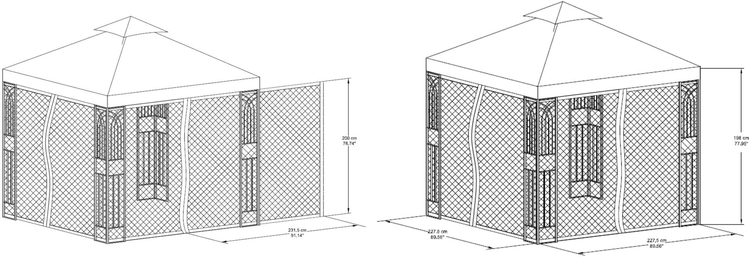 Dimensions de la moustiquaire : 240 L x 240 H x 202 P cm (94,5 x 94,5 x 79,5 po)