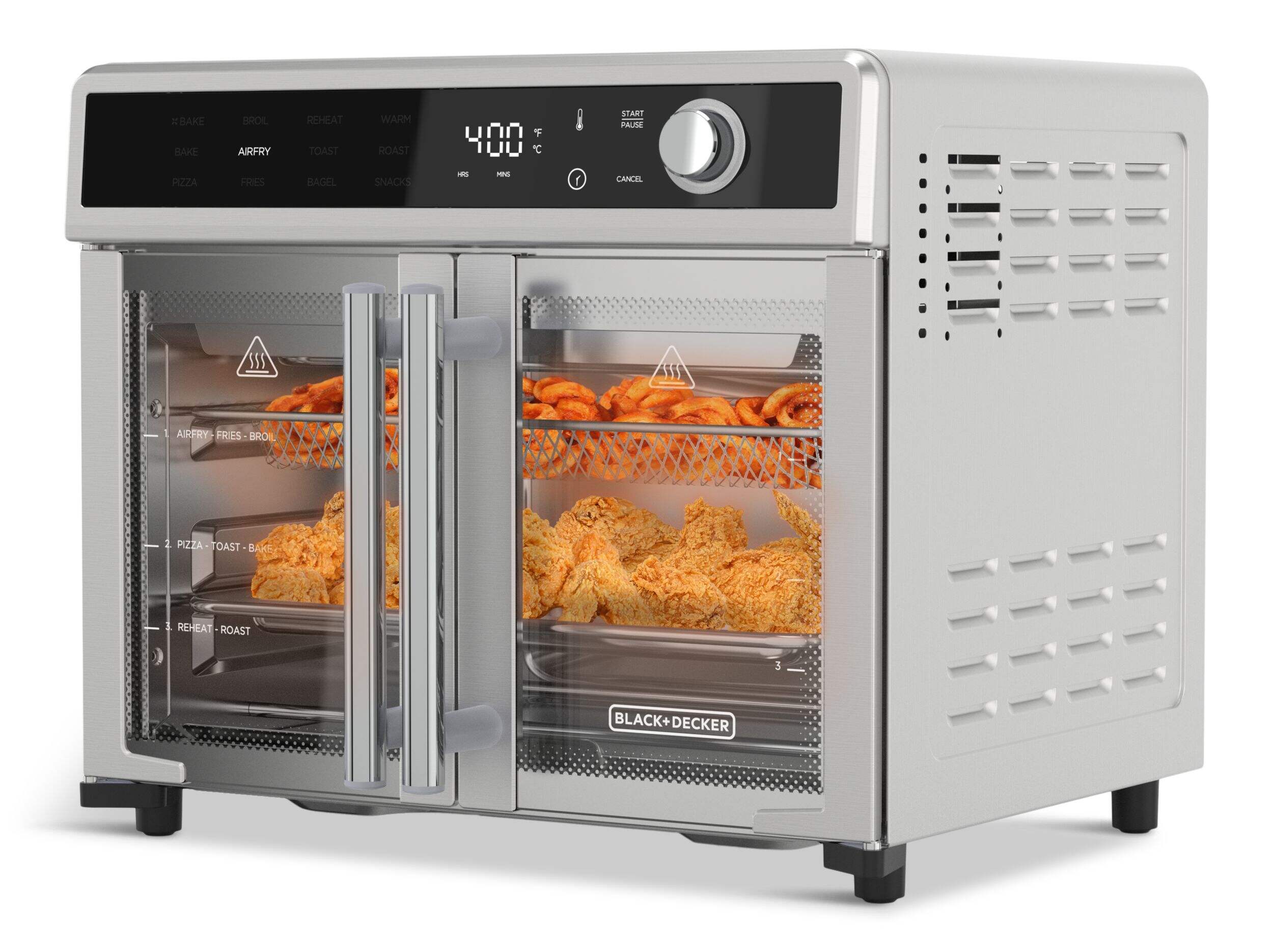 Accessoires compris : Panier à friture à air chaud, grille, plaque de cuisson et plateau à miettes
