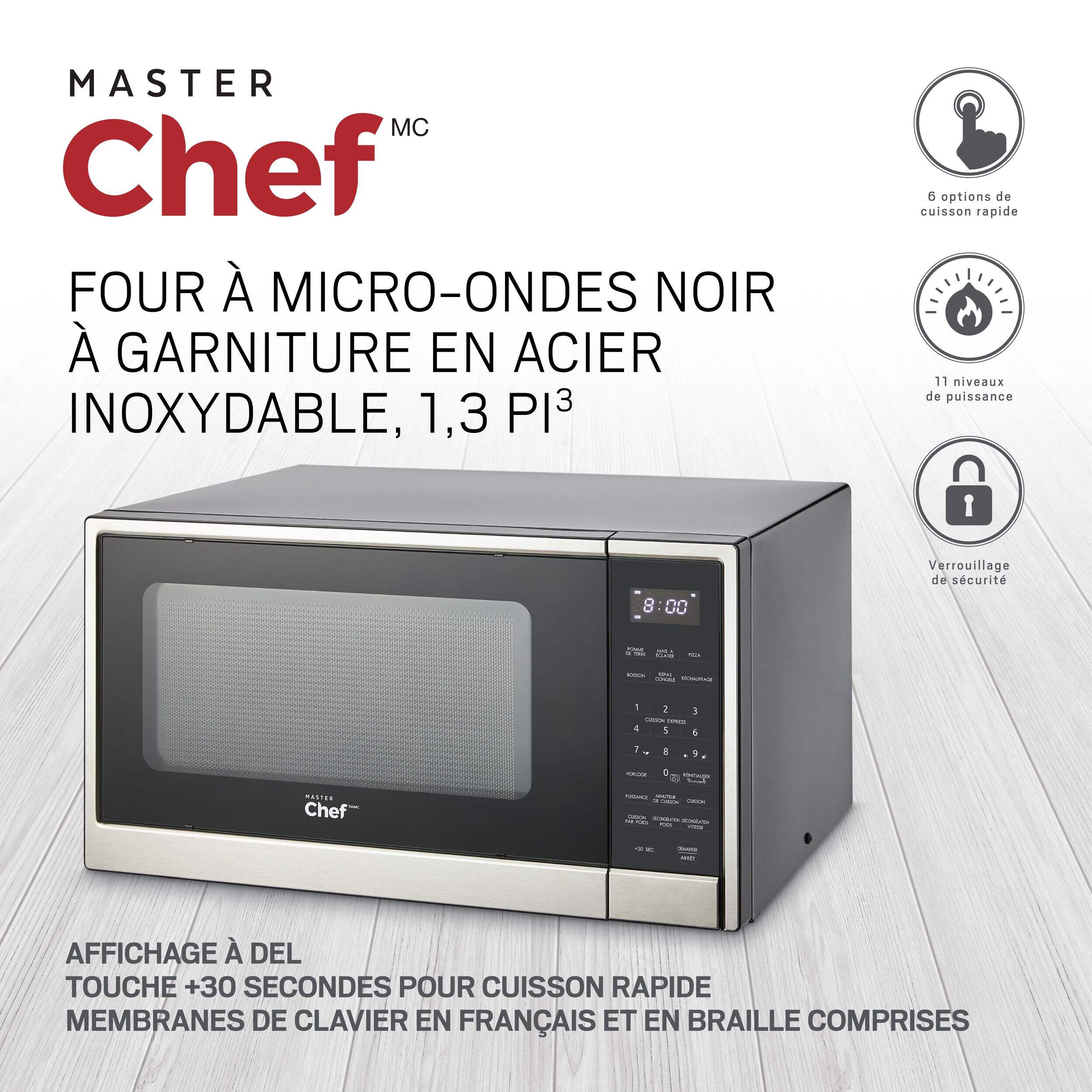 | Options préréglées | 30 secs +, Cuisiner, Décongeler, Garder au chaud, Pizza, Maïs soufflé, Pommes de terre, Minute rapide, Réchauffer, Réchauffer la boisson |