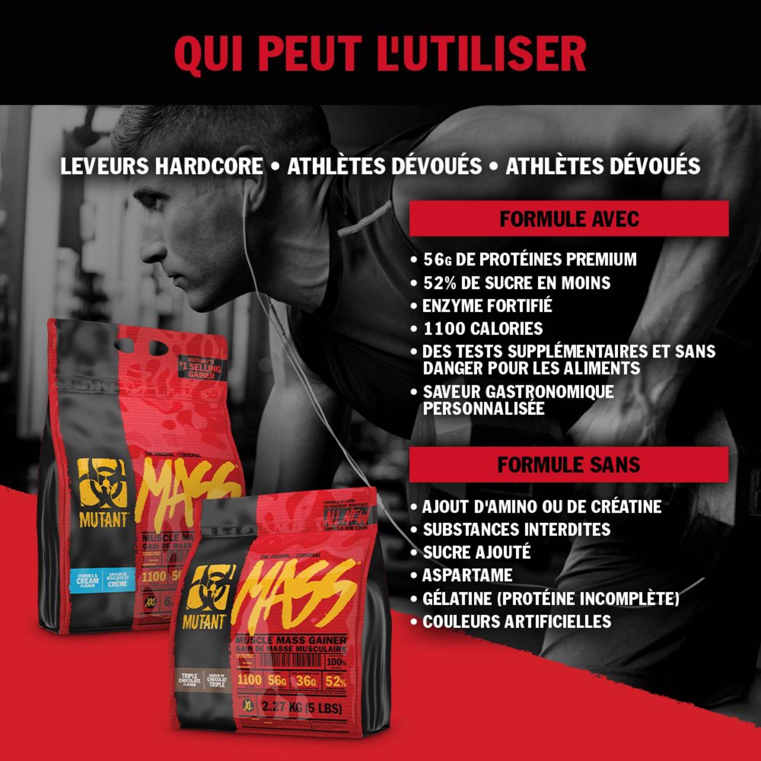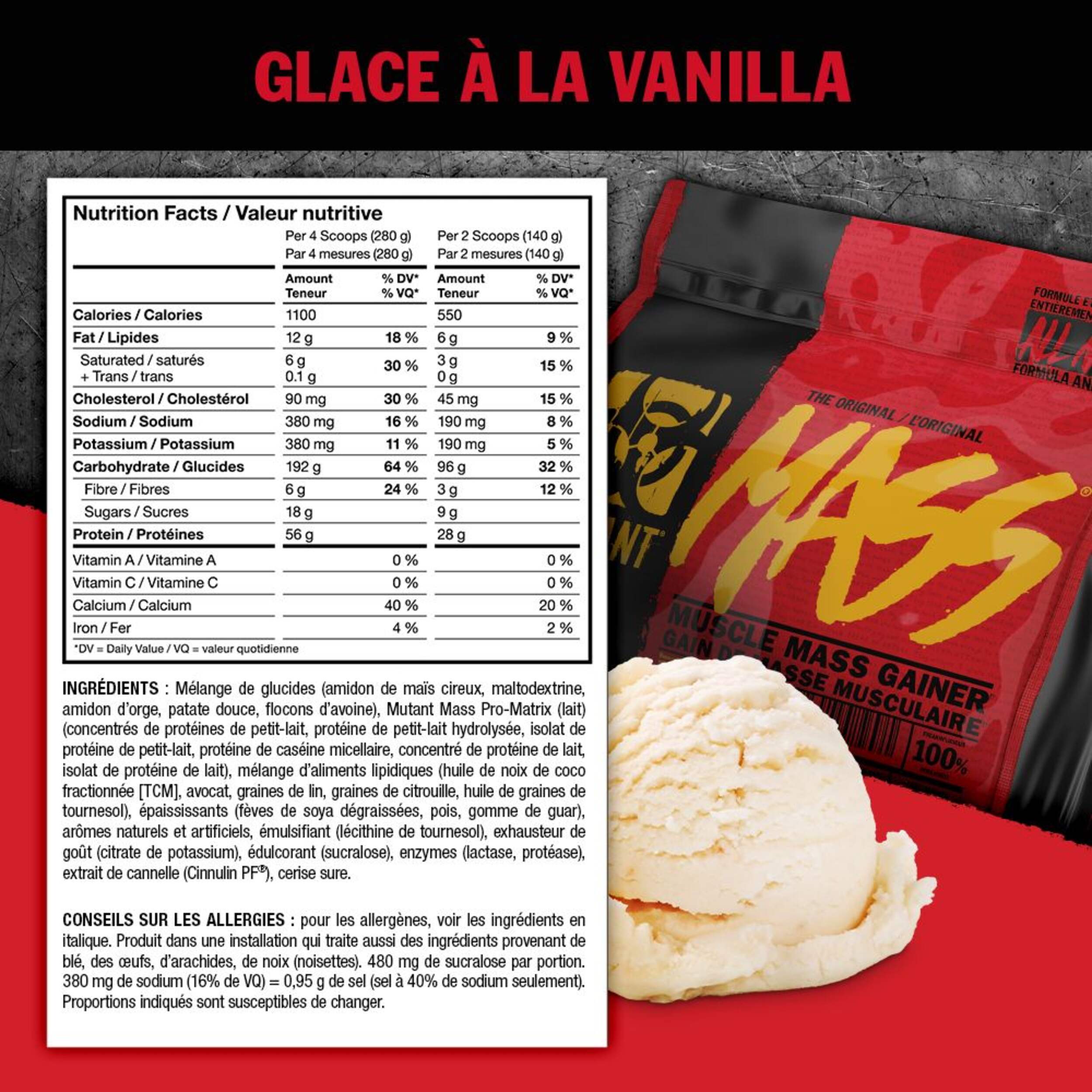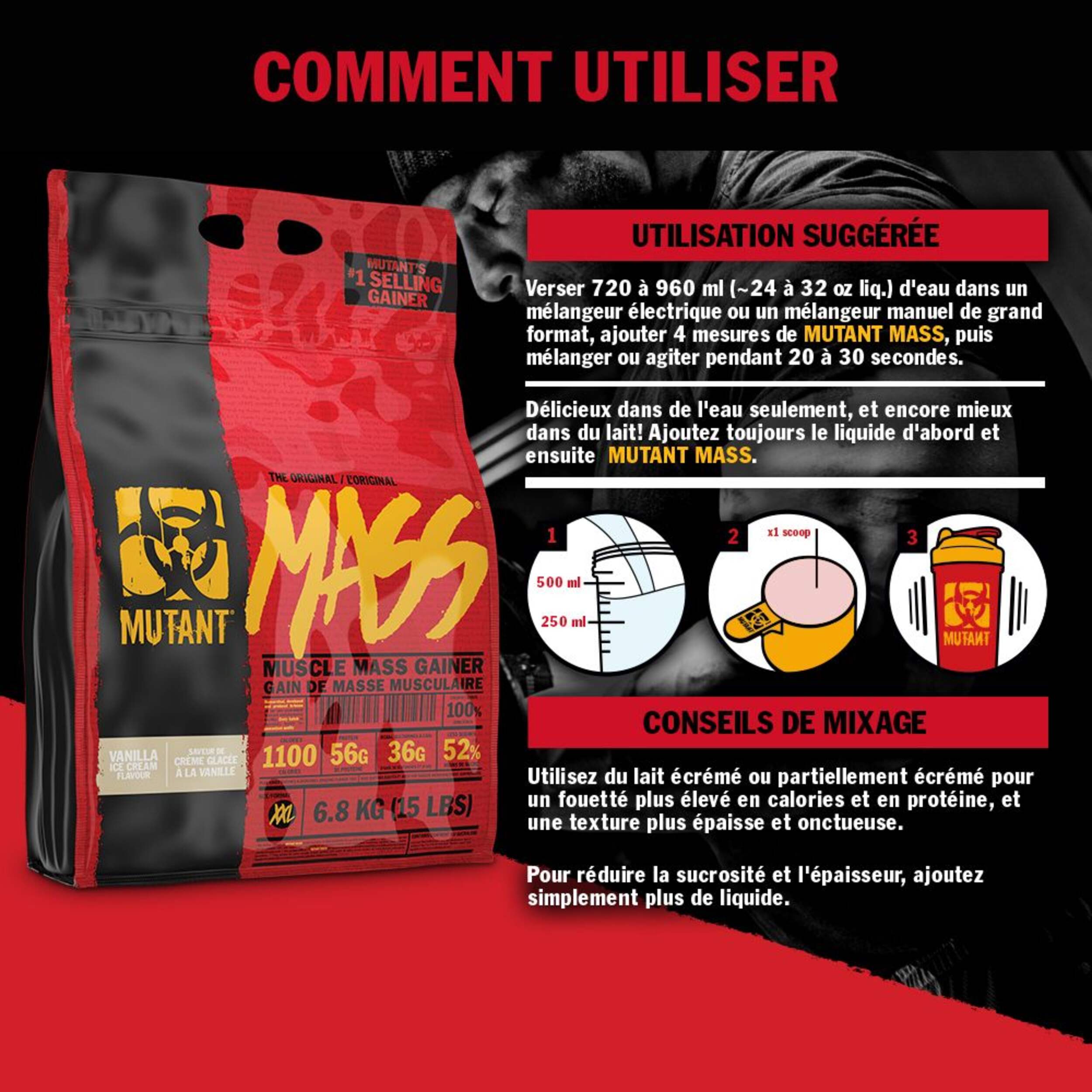 Le gain de masse musculaire Mutant Mass riche en protéines vous aidera à gagner de la masse rapidement et efficacement. Avec 56 g de protéines et 32 g d'acides aminés dans chaque portion, ainsi que 6 types de protéines différentes, vous aurez les bases nécessaires à la croissance musculaire. La formule unique fournit les bons nutriments directement à vos cellules, ce qui facilite la récupération après l'entraînement et permet à votre corps de développer rapidement ses muscles. Que vous soyez un athlète ou simplement que vous vouliez prendre du poids rapidement, ce supplément réapprovisionne les éléments dont votre corps a besoin tout en favorisant le gain de poids.