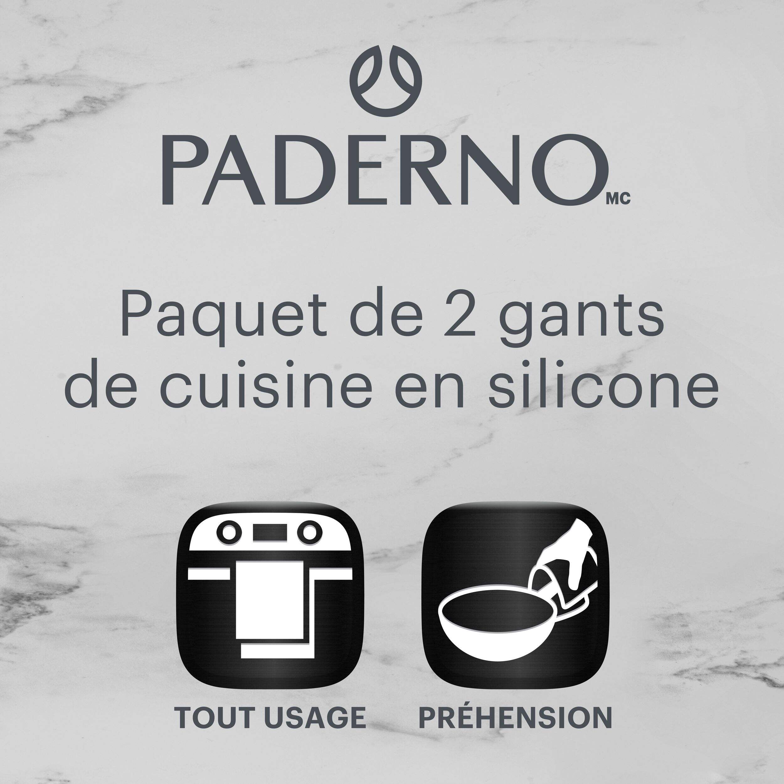Les gants de cuisine en silicone lavables PADERNO sont prêts à affronter toutes les aventures de cuisine. Fabriqués en silicone résistant à la chaleur, ces gants de cuisine sont parfaitement conçus pour manipuler des casseroles chaudes, des plaques à biscuit et plus encore. La poignée antidérapante permet de les maintenir fermement en main même lorsque les choses chauffent dans la cuisine, tandis que la boucle de suspension pratique facilite le rangement. Mieux encore, ils sont lavables à la machine pour un nettoyage facile.