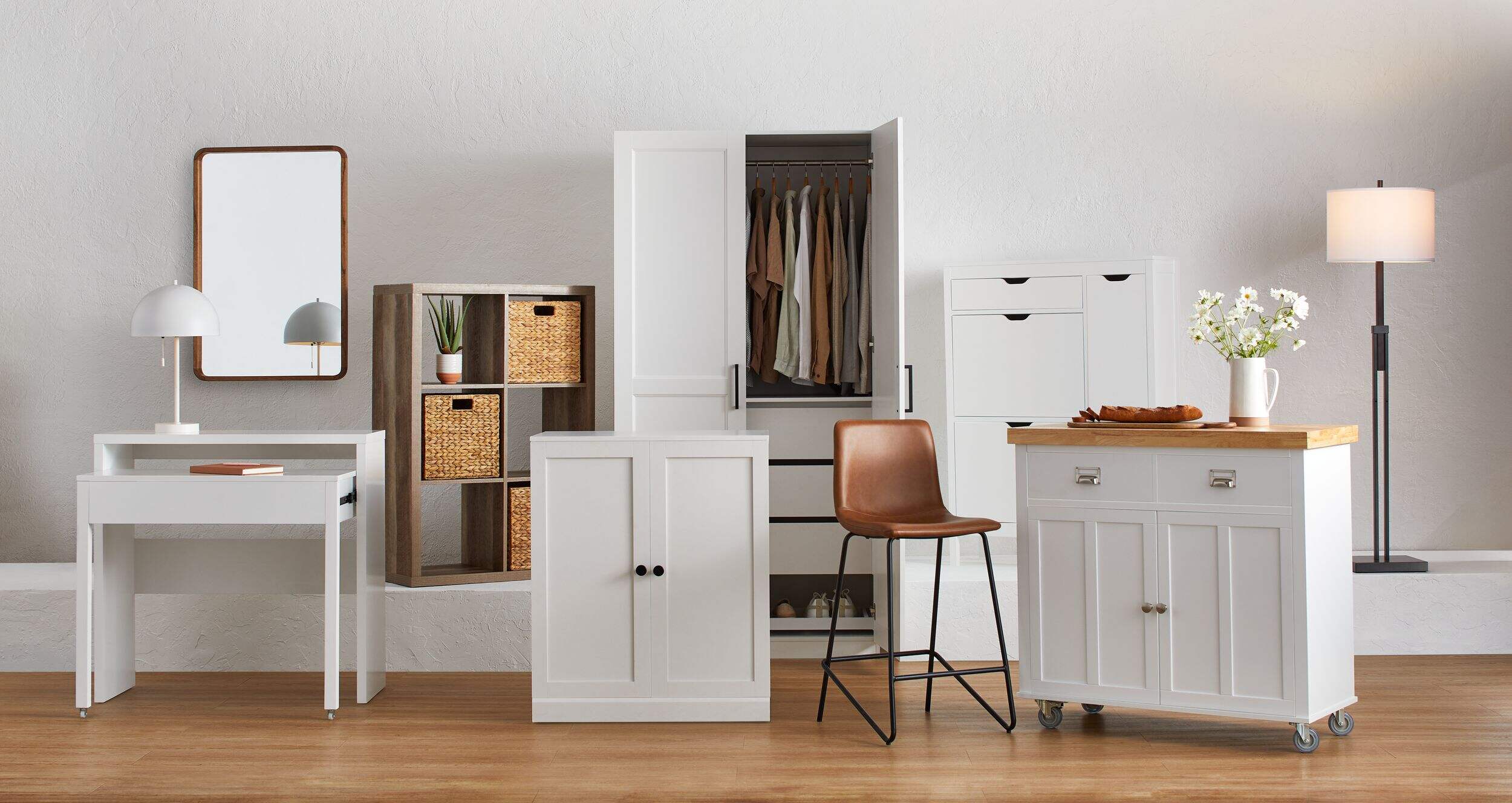Garde-robe Canvas Kelsey construit en bois d'ingénierie au fini blanc