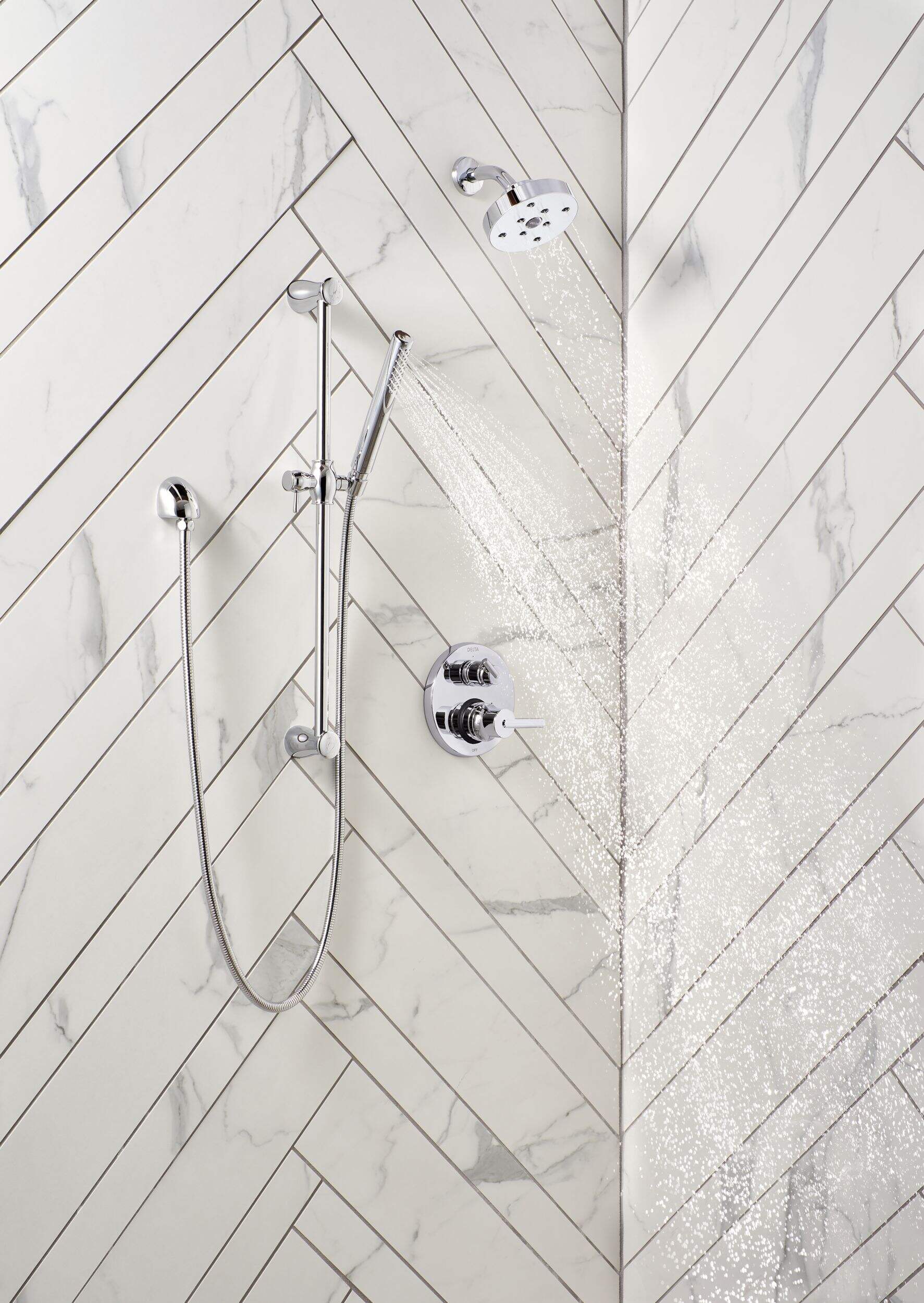 Inverseur pour douchette DeltaMD MultiChoiceMD au style adoré de la clientèle améliorant une salle de bain sur mesure en éliminant le besoin d'un inverseur supplémentaire