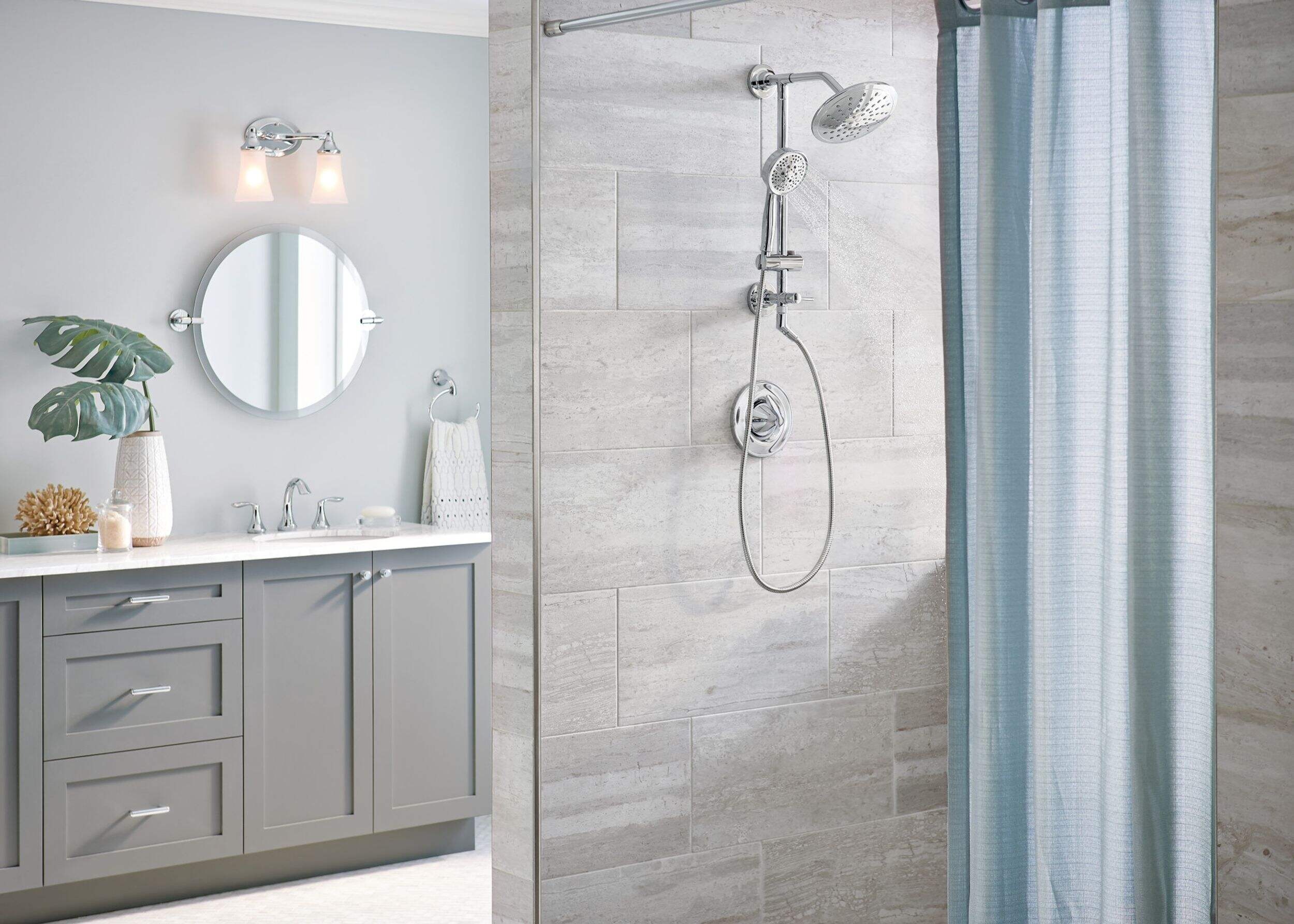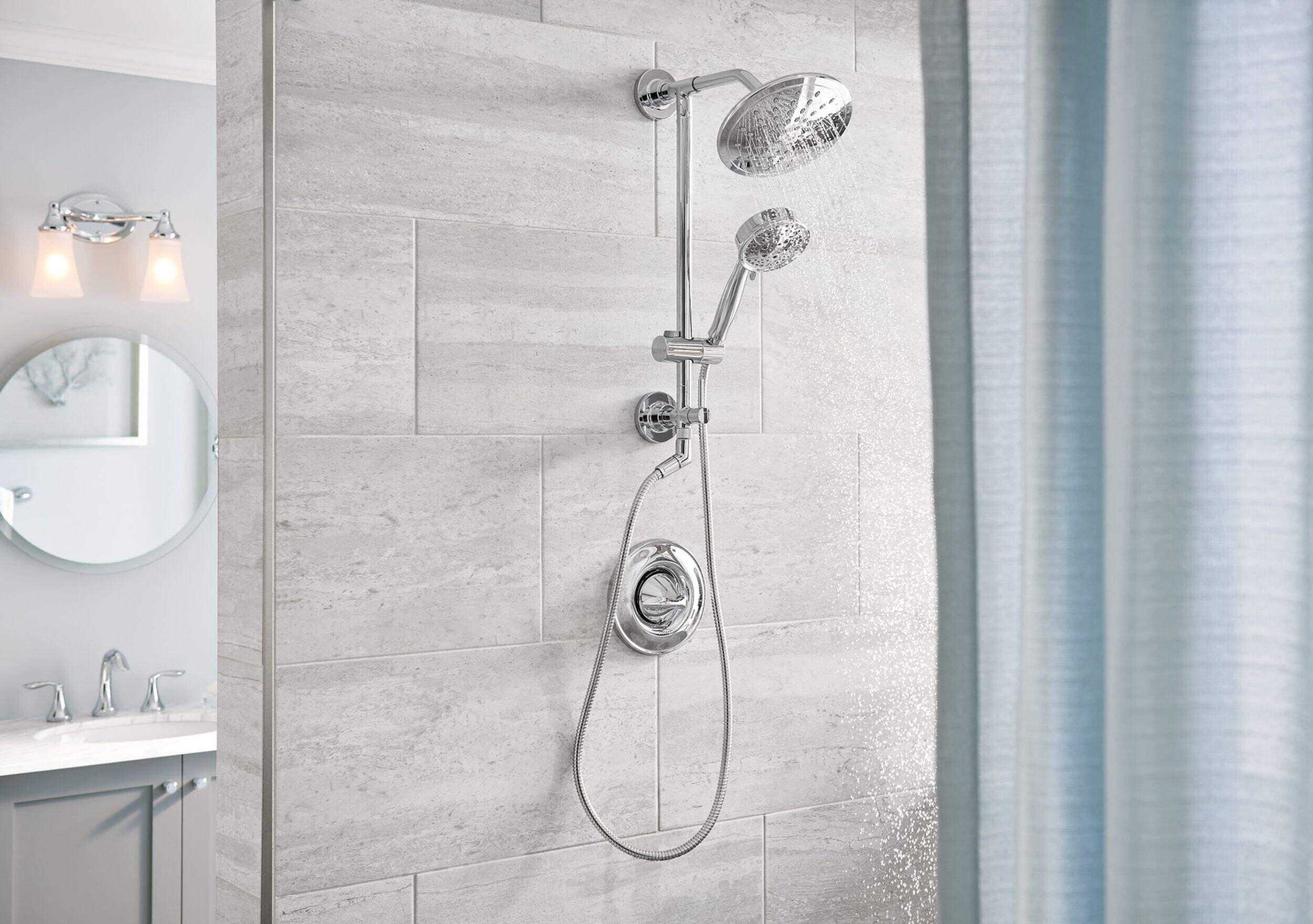 Conçu pour aller avec la valve de régulation de pression PosiTemp de Moen pour aider à maintenir la température de l’eau dans la douche