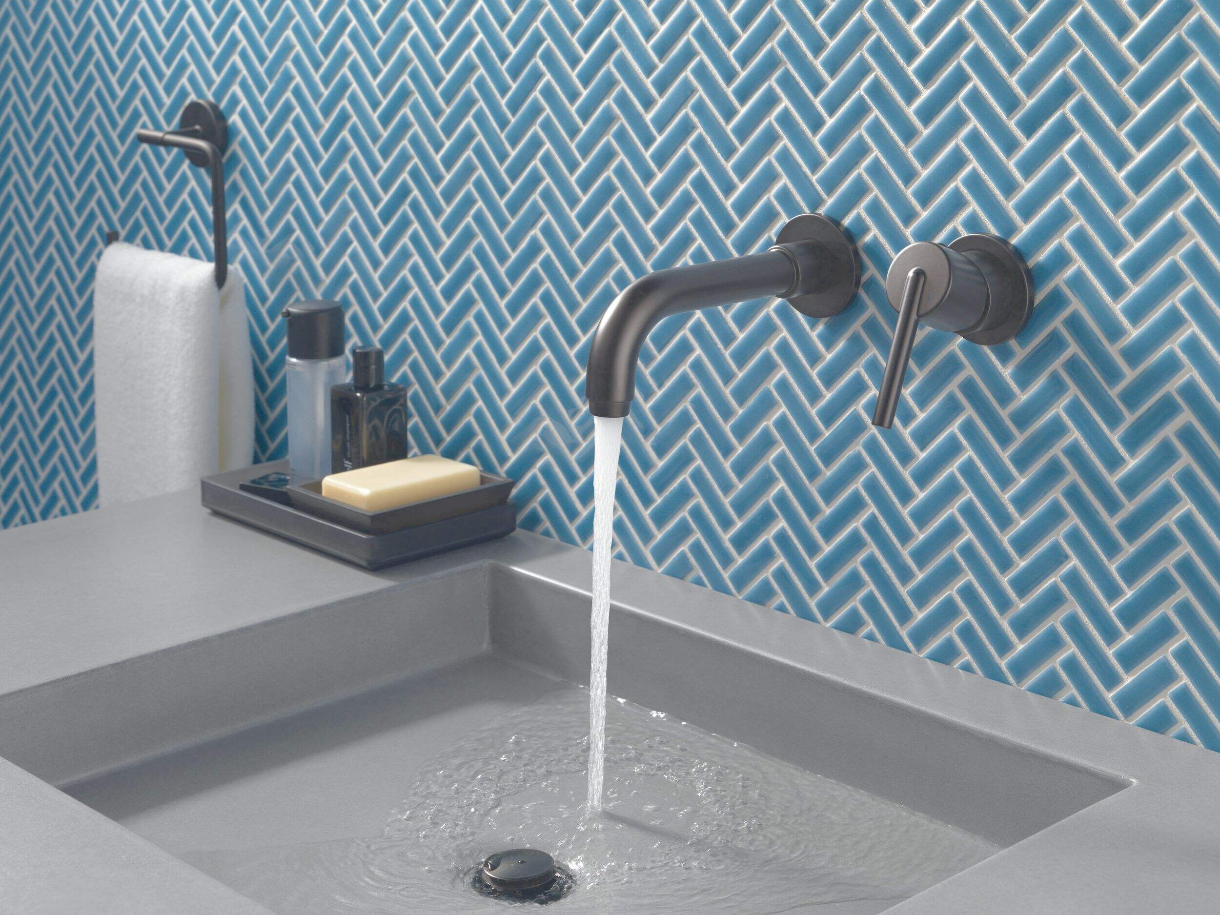 Garniture de robinet de lavabo mural à 1 poignée Delta offrant une installation à 2 trous