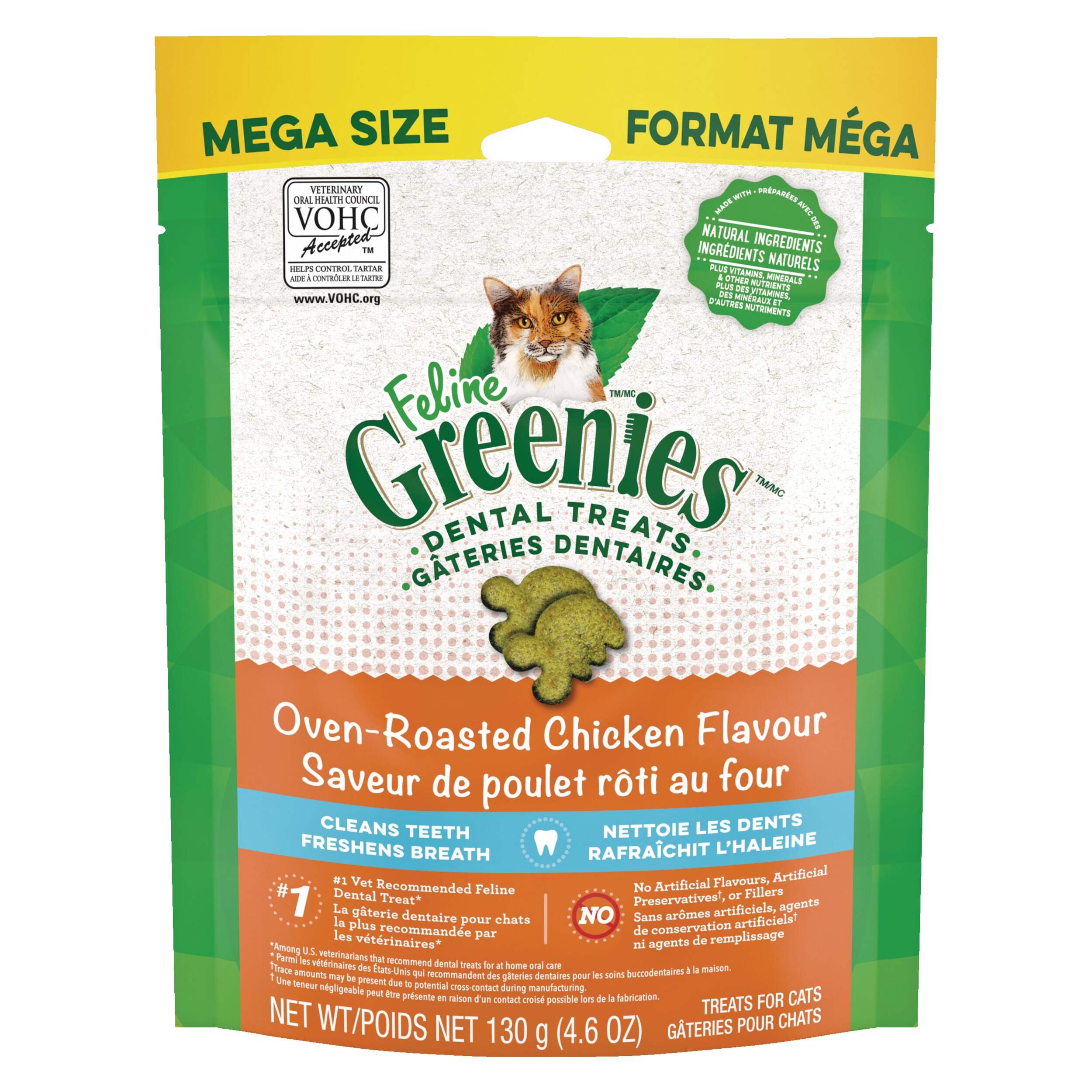 Faites ronronner votre chat de plaisir en lui offrant une gâterie dentaire pour chats à saveur de poulet grillé au four Greenies